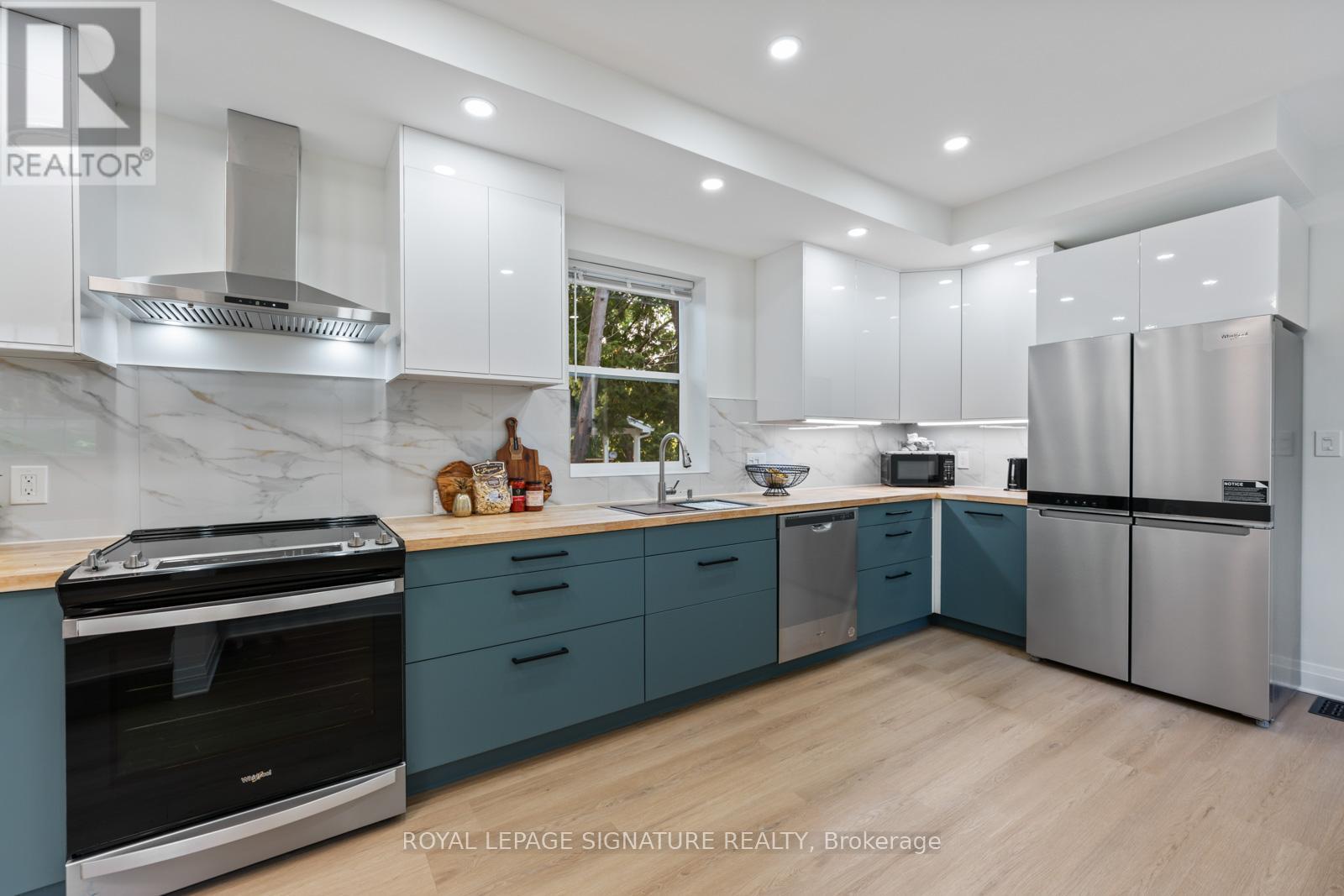 Location, Location, Location! This fully renovated modern 2-storey century home in the charming village of Gores Landing blends timeless character with contemporary style - inside and out. Featuring a sleek white glossy kitchen with stone backsplash,wooden countertops, and Whirlpool stainless steel appliances, this home offers a bright and open main floor with 9' ceilings,top-quality 9mm vinyl flooring, 5.5" baseboards, pot lights, and modern doors, hardware, and closets.Enjoy contemporary bathrooms, a cozy covered front porch, and an entertainer's dream 20' x 22' wooden deck plus 20' x 14' cement patio. Major upgrades include a metal roof, reinforced foundation with steel posts,all new siding and skirting (2025), 50"blown-in attic insulation, updated plumbing, custom-built blue shed 10 FT x 16 FT, Armour stone retaining wall supporting driveway (2025-$30K)7-car driveway, high-speed LTE internet & more(See List Of Upgrades Attached.)Set on a large, private, fully fenced treed lot with seasonal lake, marina & islands views, this property fronts on both Plank Rd and Kelly Rd with a park zone on one side. Just a short stroll to the water's edge of Rice Lake, Gores Landing boat launch, and the marina. Incredible value in a sought-after lakeside community!*****Take advantage of a buyer incentive: 1% mortgage rate buy-down for the first year (based on 20% down payment) 25 y Amortization, helping reduce your initial carrying costs and making homeownership more accessible***** (id:4555)