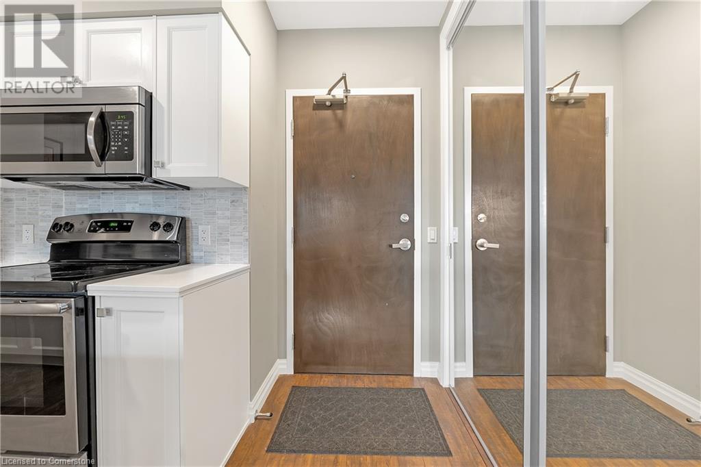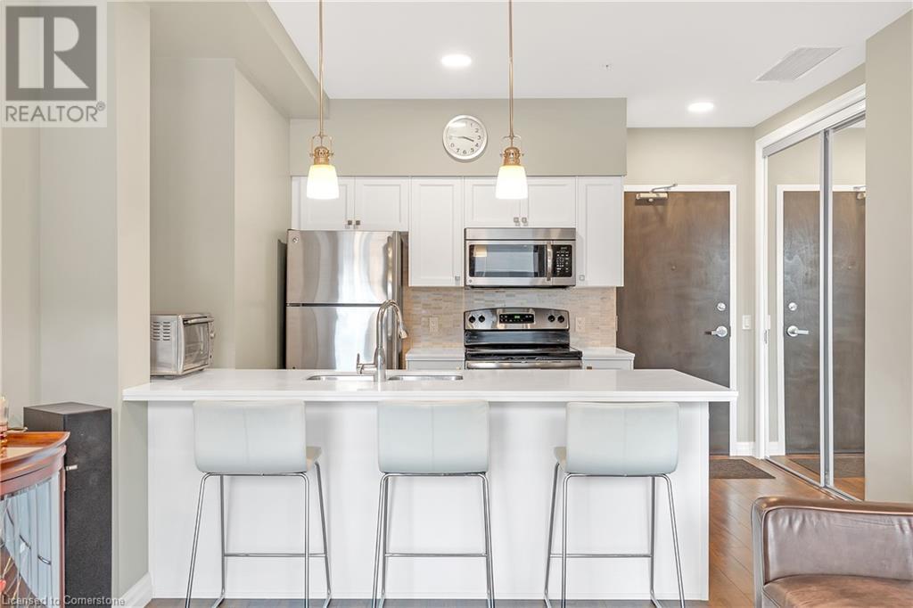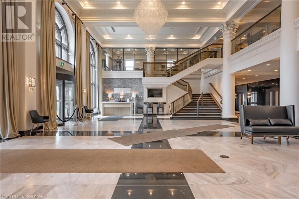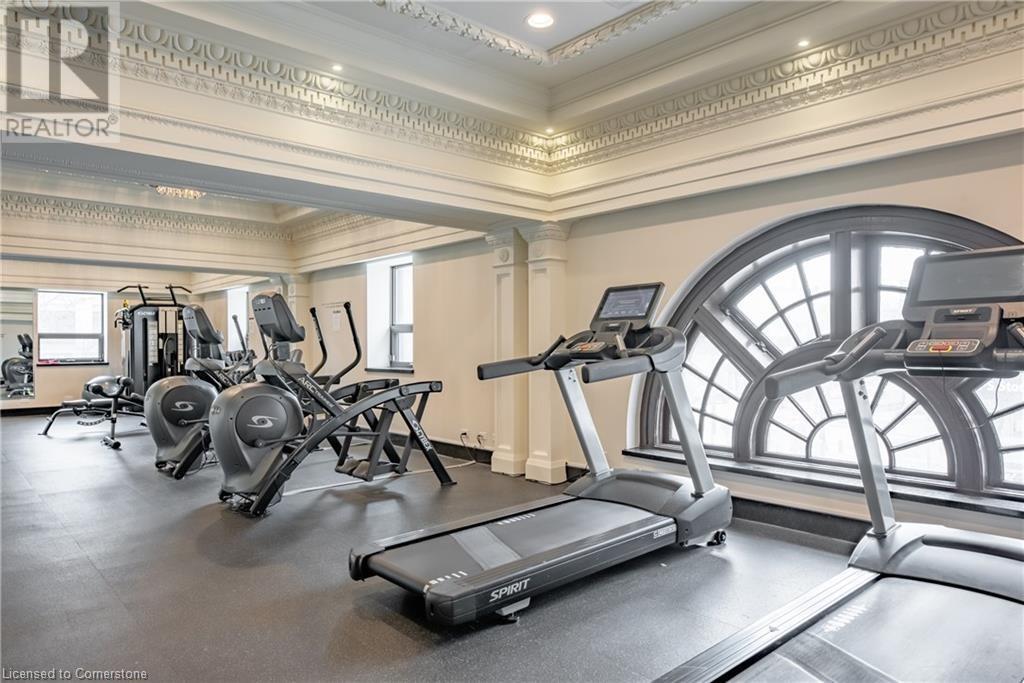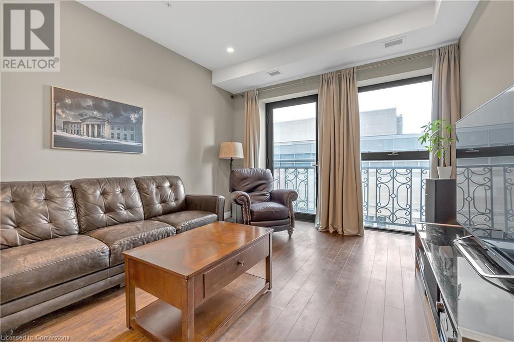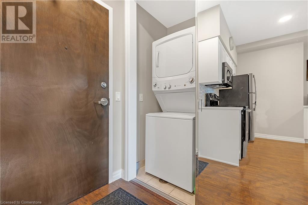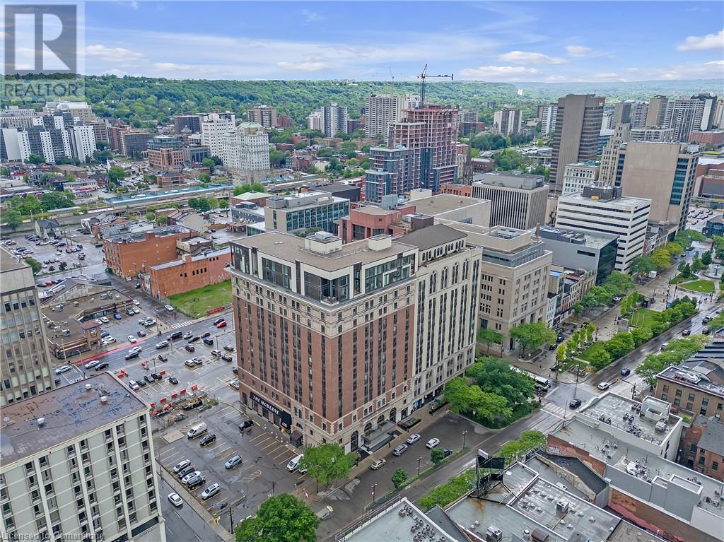 Welcome to 112 King St. E, Hamilton, Unit 1006 - a stunning 2-bedroom, 2-bathroom condo that offers modern urban living at its finest. Situated on the 10th floor, this unit boasts breathtaking views of downtown Hamilton. Enjoy the convenience of in-suite laundry and an ensuite bathroom, along with one underground parking spot and a locker on the same floor. Perfectly located, you're just steps away from two GO stations, public transportation, schools, and shopping. This well-appointed building includes amenities such as a concierge, exercise room, games room, media room, party room, rooftop deck/garden, security guard, and security system. BBQs are permitted, making it ideal for entertaining. All appliances are included in the sale, making this move-in ready home an exceptional value. (id:4555)