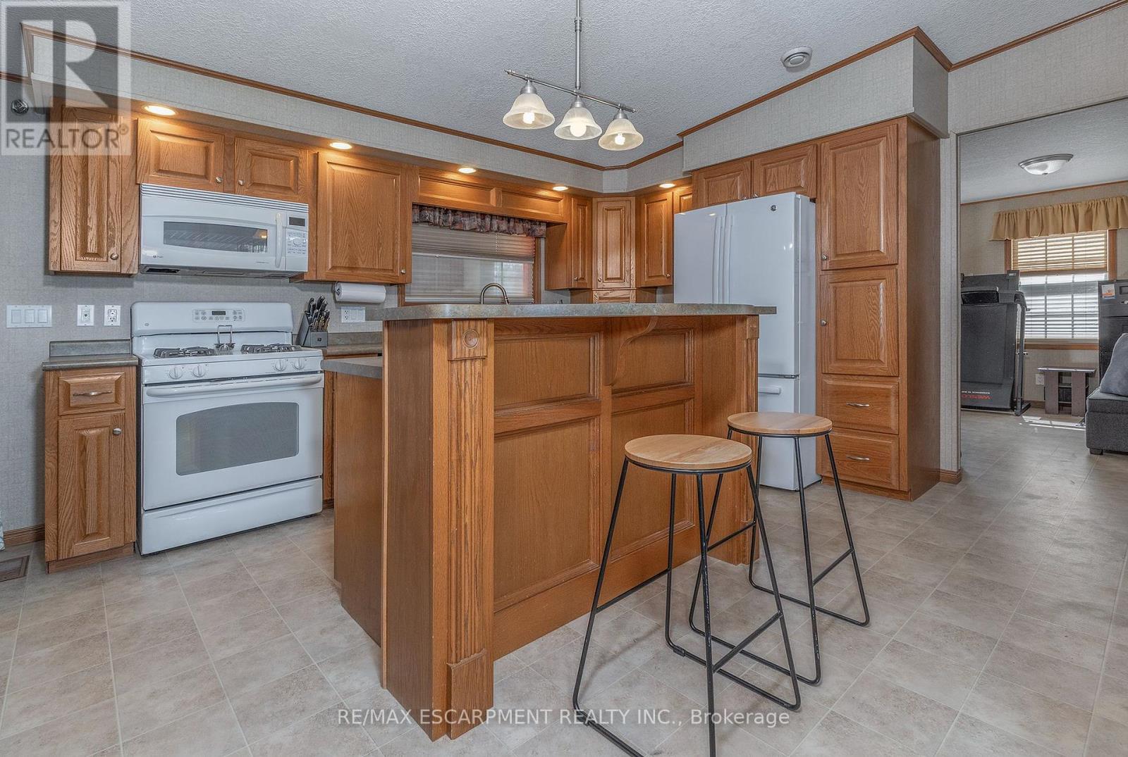 UNIQUE YEAR ROUND PROPERTY!!! Check out this spacious 50' x 26' Northlander on a large lot. This great property offers two great sized bedrooms & the convenience of two baths. The spacious Liv Rm offers a double sided See-Through Napoleon fireplace & plenty of windows to enjoy nature, Din Rm is open to the Kitch giving ample space for family & friends and the lg Kitch offers two tiered island/breakfast bar with seating and plenty of solid wood cabinets and walk-out to the lg 10 x 20 deck with hard roof, extending your entertaining space. There is also a bonus office space and your own private laundry in suite. The property is complete with the master retreat which includes a walk-in closet & 4 pce spa like Ensuite with Jacuzzi tub and separate shower. There is also an additional spacious bedroom and 3 pce bath. Prepare to be wowed by the wrap around deck, amazing Sun Rm/Solarium 3 season additional living space which also offers a bonus pellet stove to extend the season. BONUSES: Washer/Dryer & Hot Water Heater only 5 years old, Easy Maintenance eavestroughs with Leaf filters installed. (id:4555)