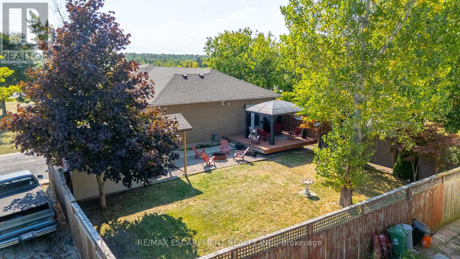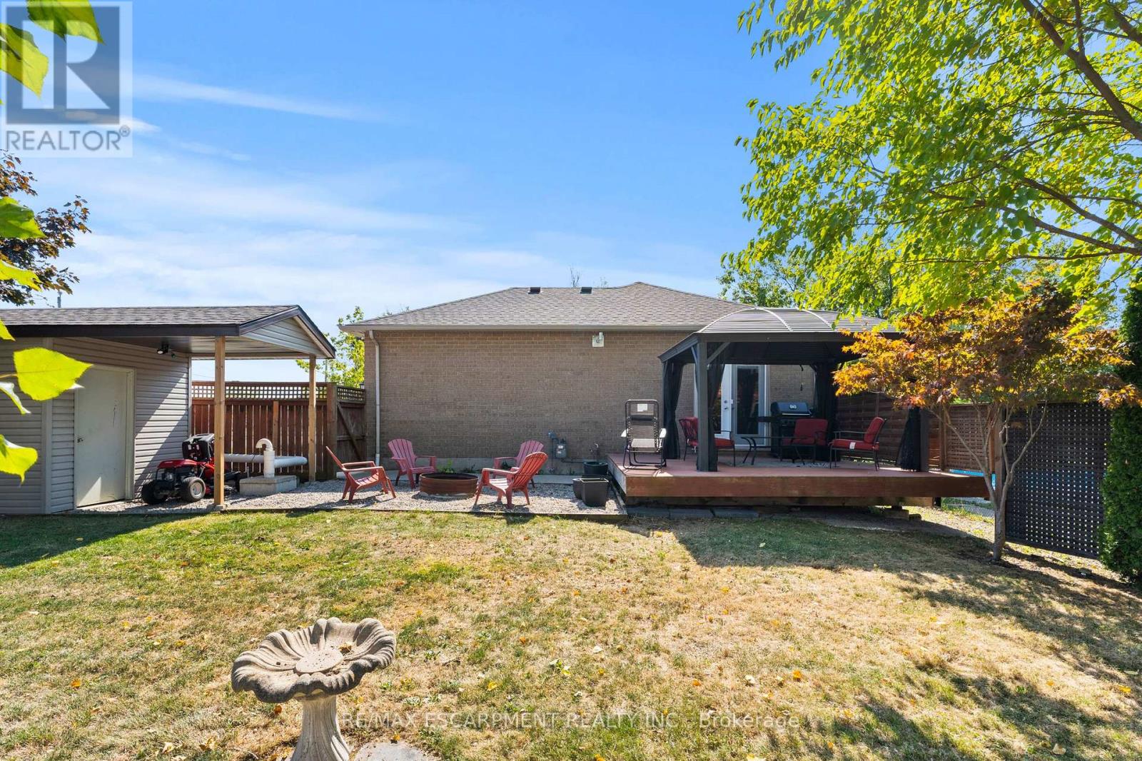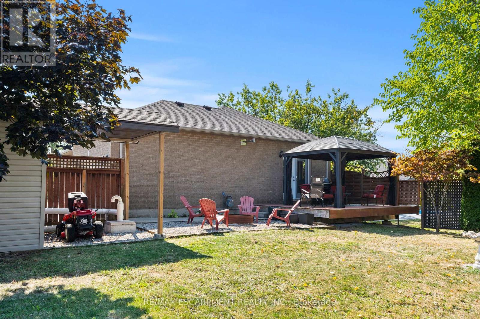LOOKING FOR THAT LARGE BUNGALOW?? OVER 1600 SQ FT OF MODERN DESIGN, BUILT 2002 ON THE QUIET SIDE OF STONEY CREEK MOUNTAIN, NEAR 3RD ROAD E. OFFERING A BEAUTIFUL CORNER LOT WITH ALL BRICK EXTERIOR, 1 FLOOR WITH ATTACHED DOUBLE CAR GARAGE WITH HEATER (FOR THE CAR GUY), PRIVATE FULLY FENCED IN REAR YARD TO THE NORTH. 2000 GALLON CISTERN, SHINGLES REPLACED IN 2019. WASHER DRYER 3 YEARS +/- NEW, NO RENTAL ITEMS. THIS HOME IS FULL OF STYLE AND CHARM, UPON ENTRY THE GREAT ROOM SHOWS WHY THIS ONE IS "GREAT" ** HUGE 29 FOOT EATIN KITCHEN WITH TONS OF CABINETRY, SPACIOUS EATING AREA, PATIO DOORS TO THE REAR DECK AND COVERED GAZEBO INCLUDED, ENJOY THE PRIVACY OF THE YARD AT YOUR LEISURE. THERE ARE 3 VERY GOOD SIZED BEDROOMS, AND A BEAUTIFUL FULL 3 PIECE ENSUITE BATHROOM WITH WALKIN CLOSET FOR THE PRIMARY. THE BASEMENT IS FULLY FINISHED WITH LARGE REALLY LARGE RECREATION ROOM, UTILITY AREA, STORAGE AND MORE. A MUST SEE. RSA (id:4555)