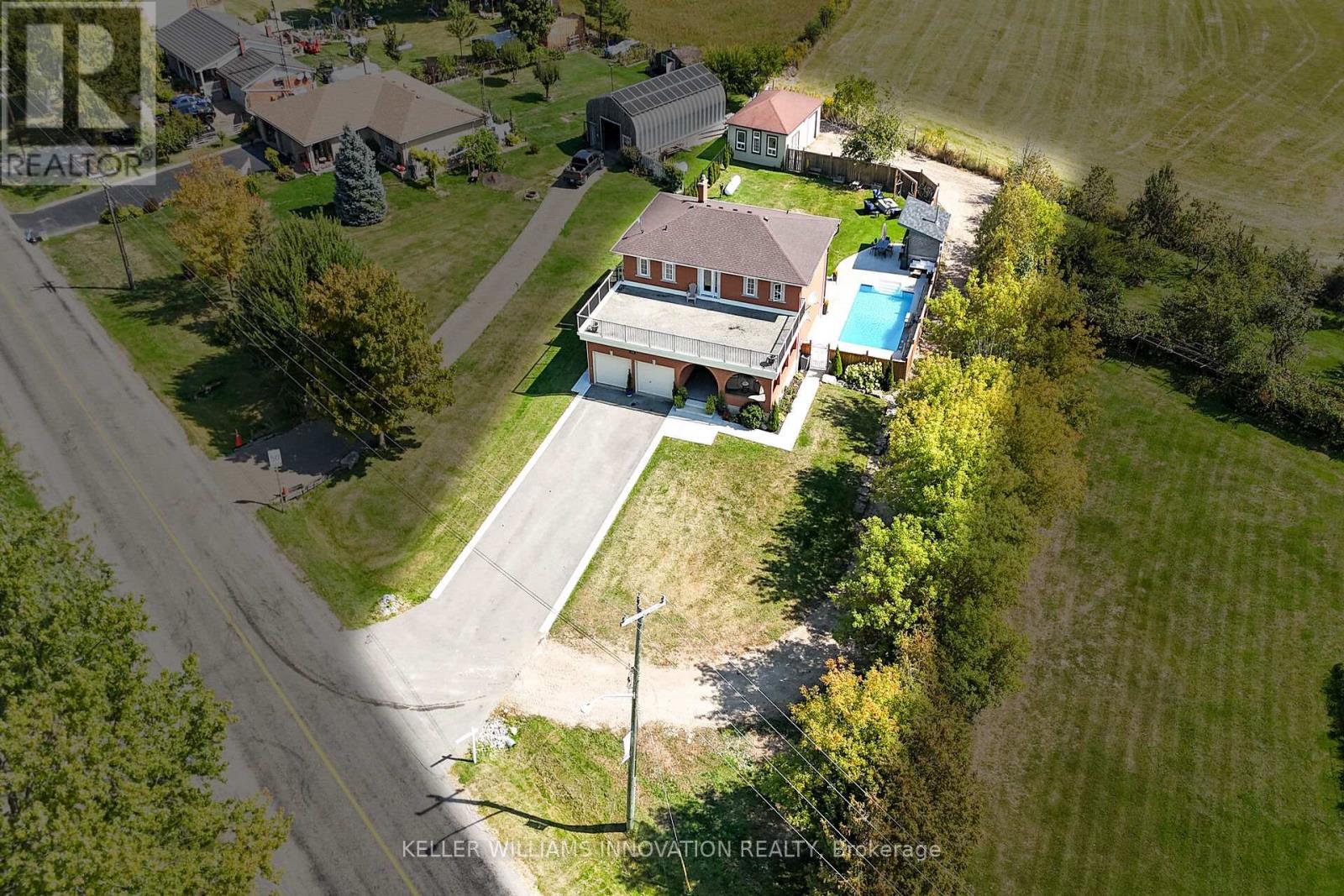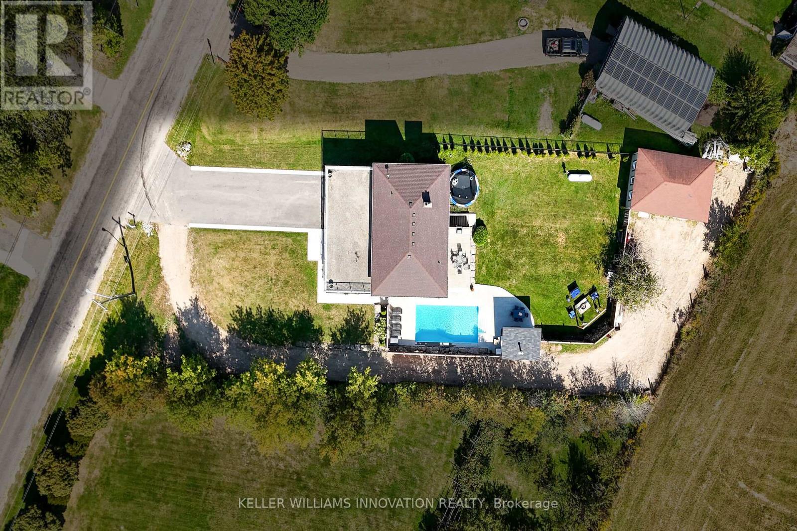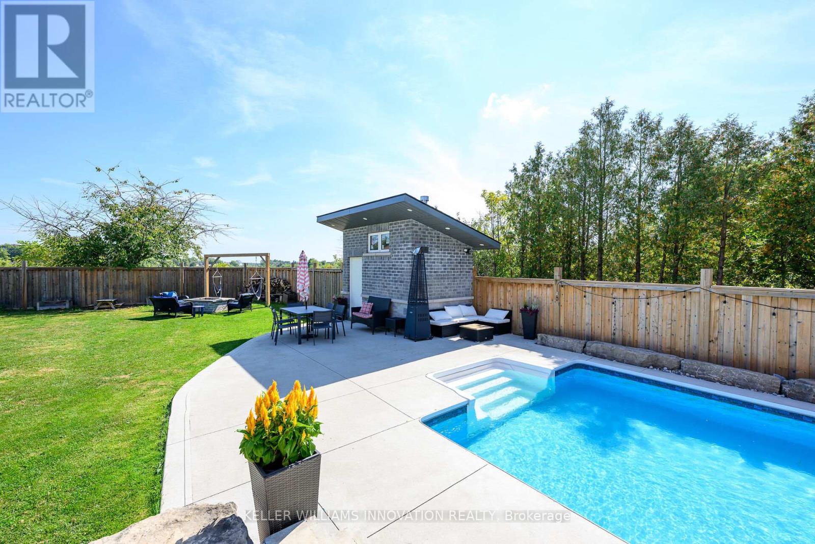 Stunning in Sheffield Country Retreat with Pool, In-Law Suite & Workshop. Welcome to your dream country retreat in the heart of Sheffield! This updated 4+1 bedroom, 4-bath home offers the perfect blend of space, style, and versatility-complete with a separate in-law apartment, Heated saltwater pool, and private workshop with hydro. Enter through a covered porch into a bright 2-storey foyer. The main level features a modern eat-in kitchen with quartz counter tops and a walkout to the patio and views of fields, a spacious living room, and a cozy den with gas fireplace, plus inside access to the garage. Upstairs, the primary suite includes a walk-in closet and ensuite. Three more bedrooms and an updated 4-piece bath provide room for family. Best of all - a 800 sq ft rooftop patio for unforgettable gatherings. The finished lower level offers a self-contained in-law suite with its own walkout, kitchen, bedroom + office, bathroom, and laundry. A custom Cantina/Wine Room adds a unique bonus. Enjoy your fenced backyard oasis with a heated saltwater pool (2020), pool shed with water and hydro, and green space. New pump for 100ft well. The detached workshop with hydro and private laneway is perfect for hobbies, storage, or a home business. All this just 13 minutes to Cambridge and 25 minutes to Hamilton, combining country calm with city convenience. With its in-law suite, rooftop patio, pool, and workshop, this Sheffield property is more than a home - its a lifestyle! (id:4555)