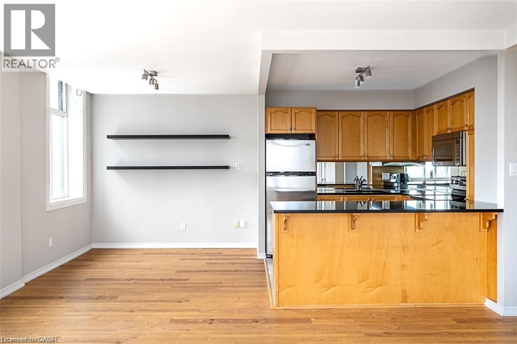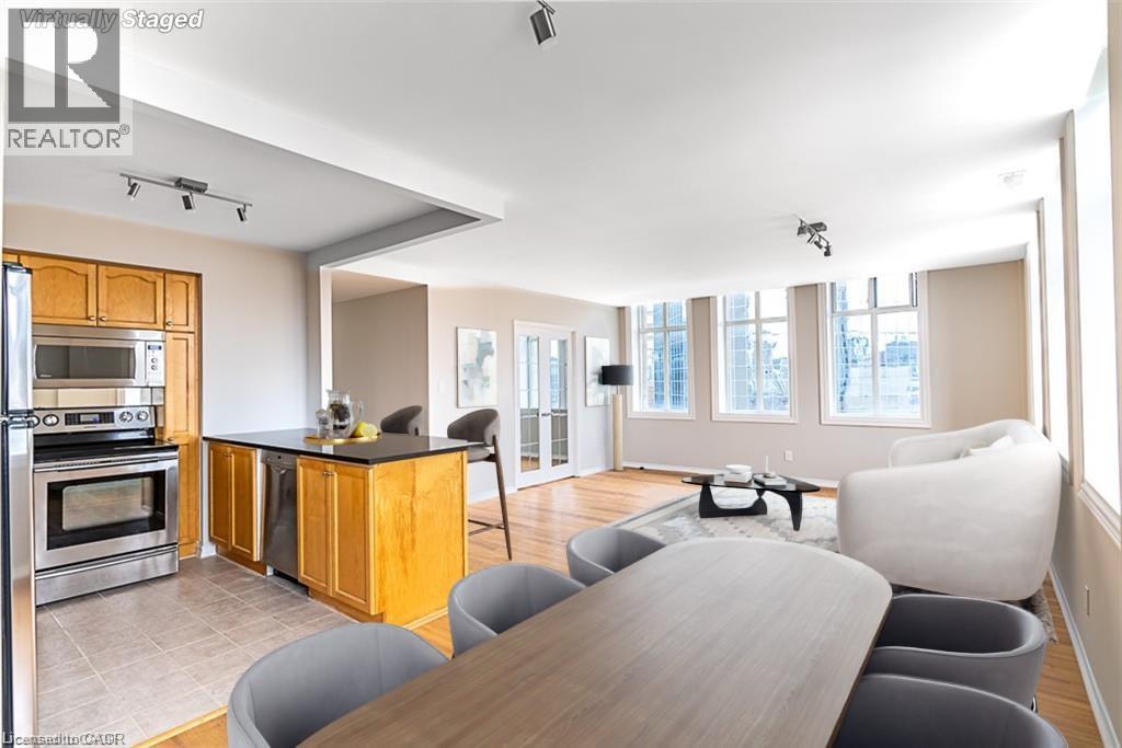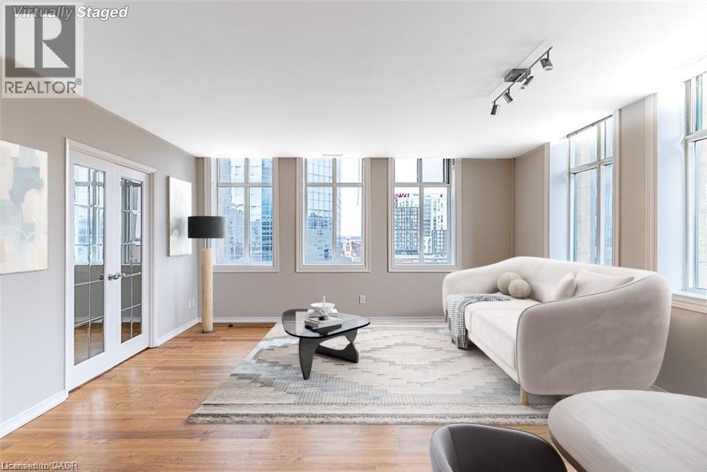 Welcome to the iconic Pigott Building, ideally situated in the heart of downtown Hamilton. This prime location offers a fully walkable lifestyle, just steps from some of the city’s best restaurants, entertainment, and cultural attractions. Step inside this spacious unit and you’ll immediately appreciate the newer wide-plank flooring, filling the home with a bright, modern feel. The primary bedroom features a generous layout with a large walk-in closet, while the second bedroom—complete with French doors—makes an ideal home office or guest room. The open-concept living and dining area is perfect for entertaining, with expansive windows that bathe the space in natural light and provide breathtaking panoramic views of the lake, city, and escarpment. The updated kitchen and bathroom add both style and function, making this home move-in ready. Additional features include in-suite laundry, one locker, access to a fitness room, and one parking space (additional $200/month). Enjoy unparalleled convenience with HSR and GO Transit hubs, the public library, Jackson Square, the Farmers’ Market, beautiful parks, McMaster University, and local hospitals all within walking distance. (id:4555)