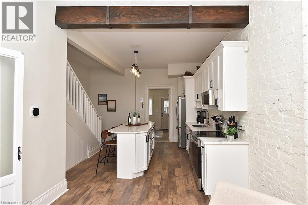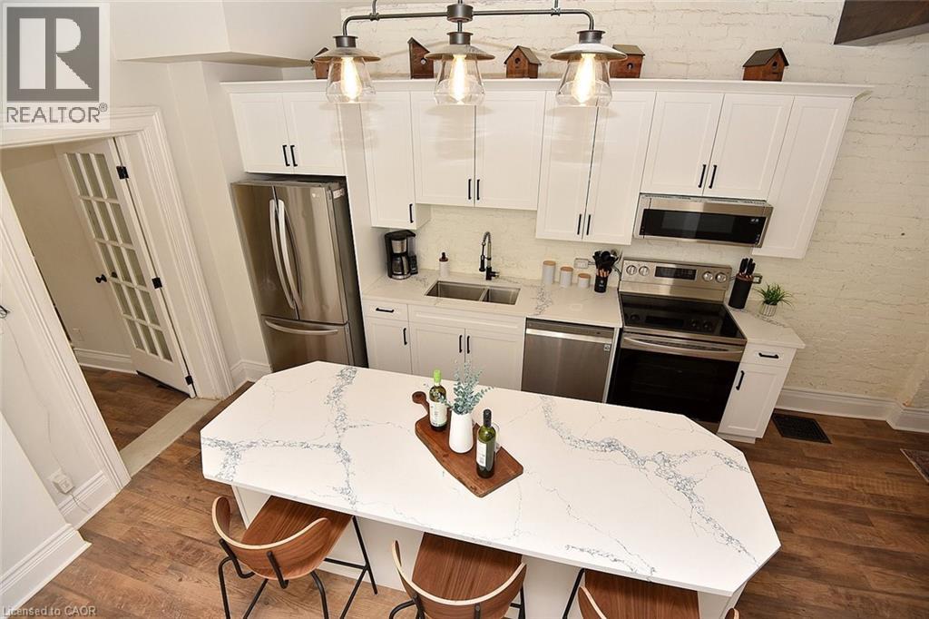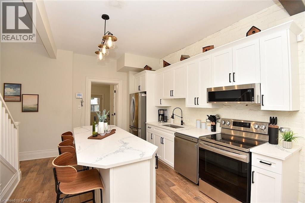 Welcome to this beautifully updated freehold semi, perfectly situated between Locke Street and trendy Hess Village. Why pay condo fees when you can own a stylish, move-in ready home in one of Hamilton’s most walkable neighbourhoods? The main level features a chef-inspired kitchen complete with a large island and stainless steel appliances, ideal for both cooking and entertaining. Two living areas provide flexible space for relaxing and hosting, while the walkout to a private deck and courtyard creates the perfect outdoor retreat. Upstairs, you’ll find two bedrooms with unique “magic” windows that include built-in screens and blinds, along with a wall-to-wall closet in the primary for ample storage. The spa-style bathroom features a charming clawfoot tub, and the convenience of upstairs laundry. The lower level offers generous storage space and a workshop, ideal for hobbies or projects. This home is walkable, stylish, and ready to move in-truly checking all the boxes. Ample street parking and permit parking are available, and the location provides quick access for commuters. (id:4555)