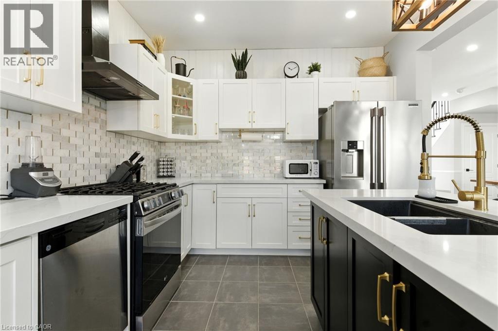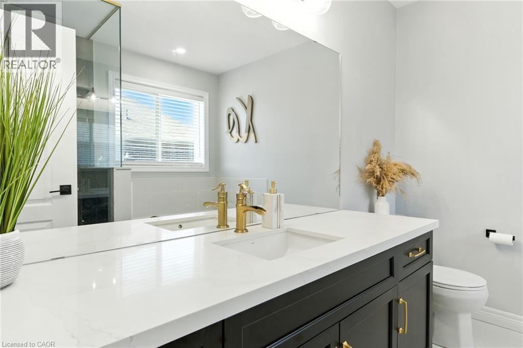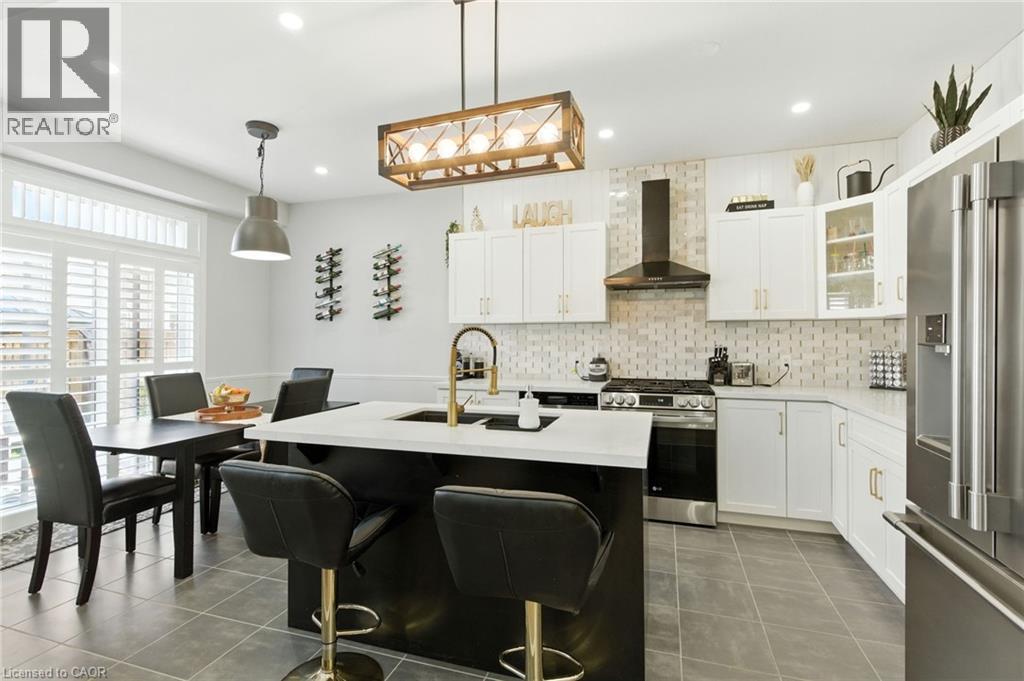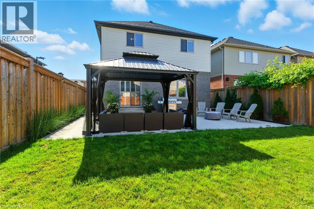 ENTIRE HOME--- Welcome to this stunning detached two-storey home, complete with a two-car garage and excellent curb appeal highlighted by stamped concrete and no neighbour to the right, offering added privacy. Step inside to soaring ceilings, elegant large-format porcelain tiles, and a striking staircase with wrought-iron spindles. The main level features neutral flooring that flows seamlessly throughout, a spacious dining room perfect for entertaining, and a bright kitchenette with California shutters. The chef’s kitchen impresses with white cabinetry, quartz countertops, stainless steel appliances including a gas range, stylish gold accents, and pot lighting. The adjoining living space is warm and inviting, showcasing an accent wall and electric fireplace. A tasteful powder room with wainscoting completes this floor. Upstairs, you’ll find four generously sized bedrooms, including a massive primary retreat with a statement accent wall and a beautiful ensuite. Both the ensuite and main bath feature quartz countertops, offering timeless quality and style. For added convenience, the laundry is also located on the second level. The backyard is designed for relaxation and entertaining, complete with a gazebo. Located in a highly desirable neighbourhood, this home combines thoughtful upgrades, modern finishes, and a prime setting—perfect for family living. (id:4555)