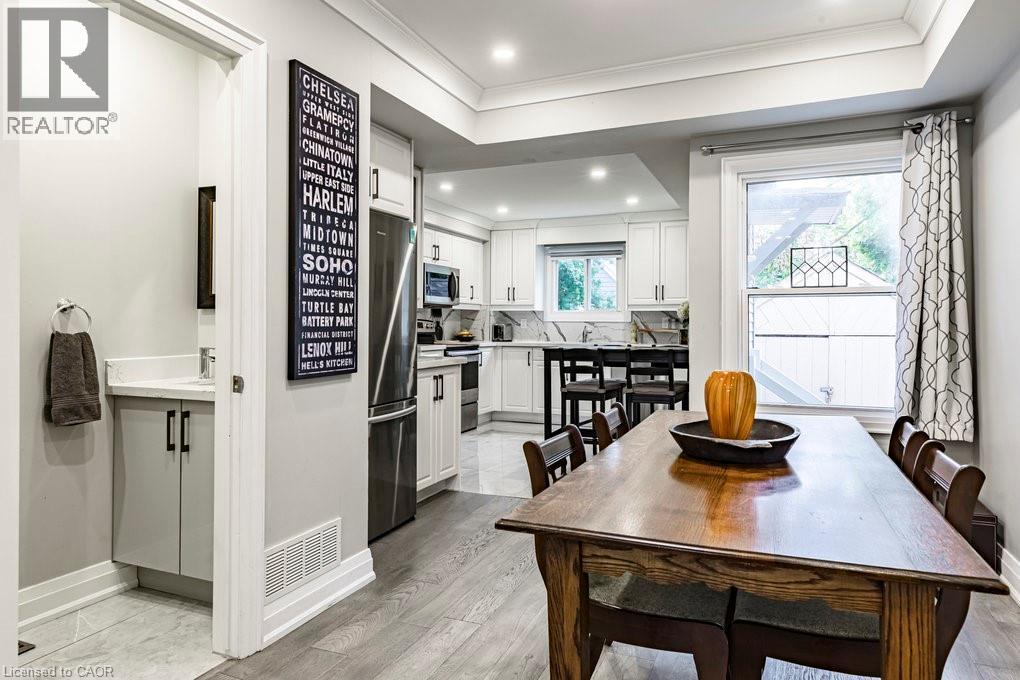 Welcome to 67 Gage Ave North. This beautifully and extensively renovated home combines modern upgrades with timeless charm. Step inside to an open-concept main floor featuring engineered wood flooring, crown moulding, pot lights throughout, a cozy electric fireplace and convenient powder room. The stunning eat-in kitchen is complete with quartz countertops, stylish backsplash, and stainless steel appliances — perfect for both entertaining and everyday living. Upstairs you'll find your spacious primary bedroom that boasts a large walk-in closet and 3 piece ensuite bathroom with high-quality finishes. 2 additional bedrooms and another updated 3 piece bathroom complete your 2nd story. The lower level offers a 4th bedroom, spacious living room, 3 piece bathroom and kitchenette which offers in-law suite potential, ideal for extended family or guests. Outside, enjoy a private, low-maintenance yard with room for relaxing or entertaining. Located in a vibrant, family-friendly neighbourhood just steps from Gage Park, trendy Ottawa St, Hamilton Stadium, Bernie Morelli Recreation Centre and future LRT — this move-in ready home is a true gem in the heart of Hamilton. (id:4555)