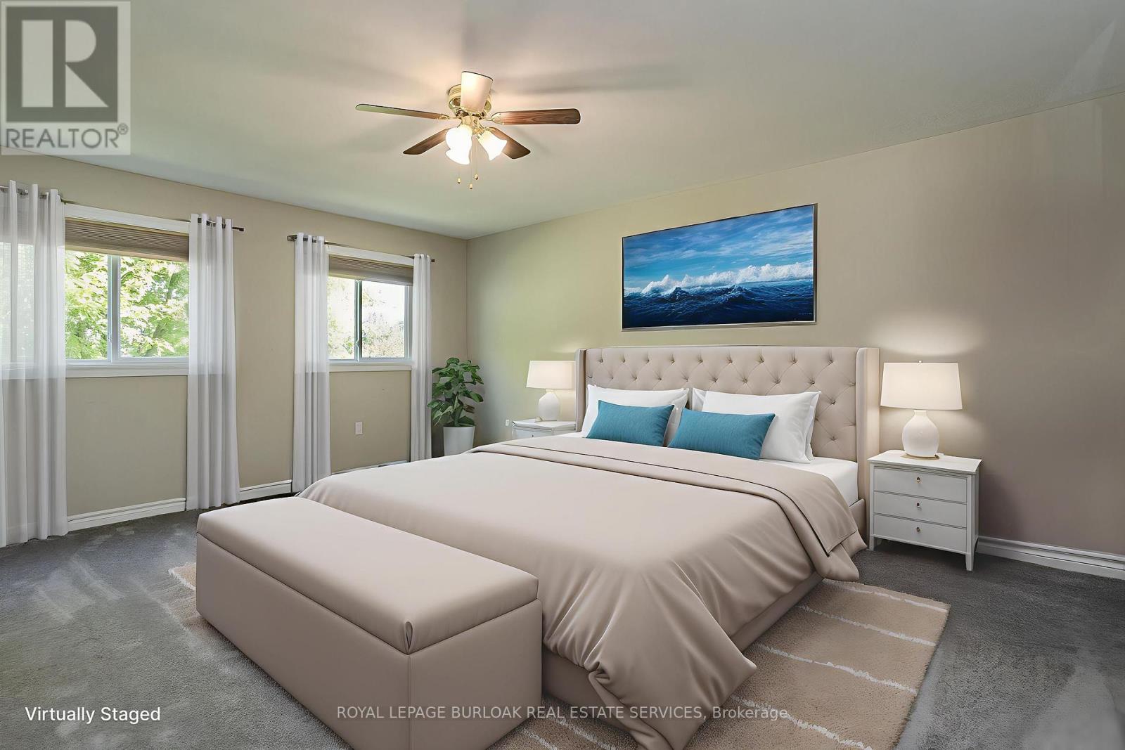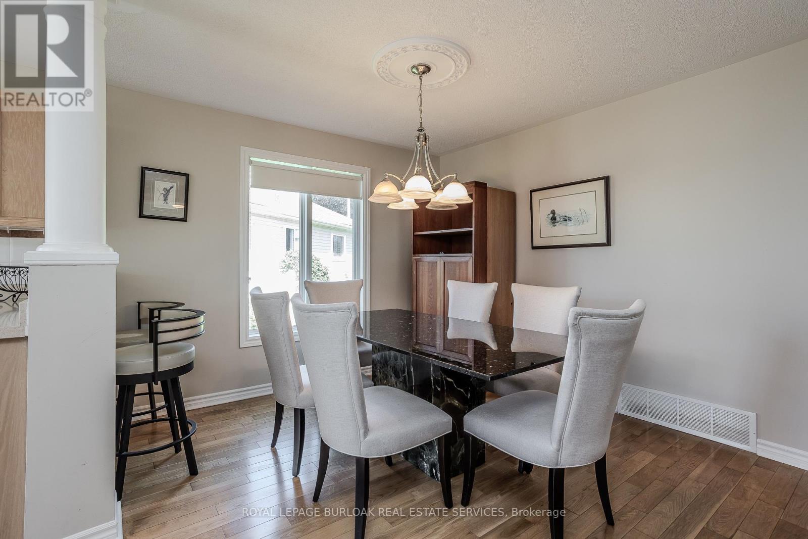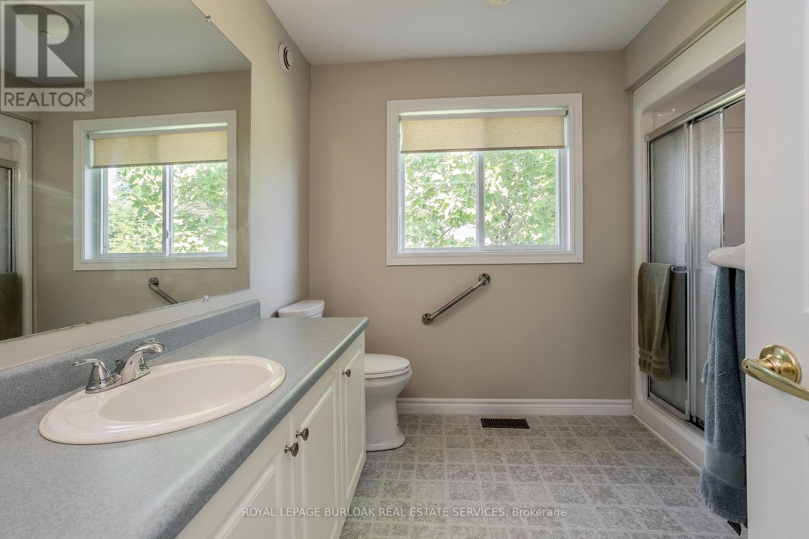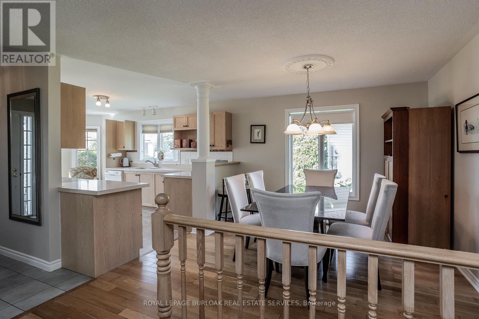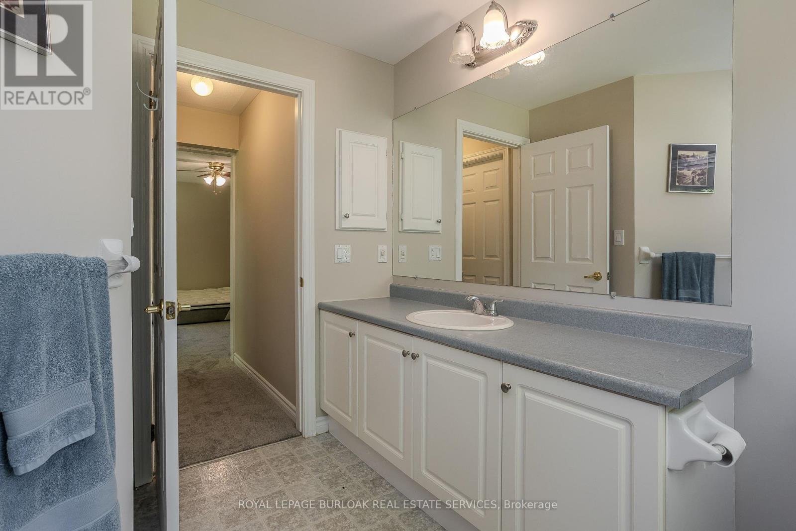 Welcome to this impeccably maintained bungalow nestled in the vibrant Antrim Glen 55+community. Ideally situated on a quiet court with picturesque curb appeal. Featuring 2+1 beds 2baths & a rare double car garage this true ground floor level bungalow is ideal for downsizers. Ideal open concept layout is flooded with natural light from the abundance of windows. The living room, adorned with a cozy fireplace (propane), invites relaxation with a versatile den/sitting area with walkout to the backyard patio. The open concept dining room is adjacent to the eat-in kitchen with ample counter and cabinet space. Main floor primary suite includes a3pc ensuite & walk-in closet. Additional bedroom offers easy access to the 4pc bath with modified tub entry & convenient laundry on the main. Finished lower level boasts a recreation room, bedroom, workshop, and additional storage/utility spaces awaiting your personal touch. Embrace this opportunity for refined living in a supportive community with an inground pool, clubhouse, community events & more. Very reasonable Land Lease of $975 + taxes of $230.80 (estimated). Don't delay on this turnkey gem! (id:4555)