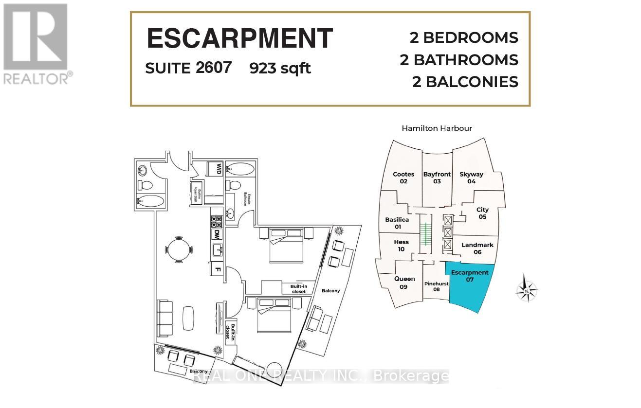 !!! Promotion: Enjoy one month of free net rent (applied to the second month) and three months of free parking when you sign a one-year lease!!! Marquee Residence Is One Of The Most Sought-After Luxury Condo Buildings In The Heart Of Downtown Hamilton A Modern, 5-Year-New Landmark And The Second-Tallest Building In The City. This 923 sqft Spacious Two-Bedroom Corner Unit On The 26th Floor Offers Two Oversized Balconies With Unobstructed South And East Views Overlooking The Escarpment, The Lake and The City. A Sleek Kitchen Featuring Quartz Countertops, Backsplash, European-designed Custom Cabinetry And Stainless-Steel Appliances. Vinyl Flooring Throughout. Two Bright Bedrooms With Built-In Closet Organizers, And Large Windows That Fill The Home With Abundant Natural Light. In-Suite Laundry Included. Residents Enjoy Top-Notch Amenities, Including A Gym, Yoga Studio, Two Party Rooms,Complete With Kitchenette, Lounge Chairs, Fireplace And Billiards Table, And An 8th-Floor Outdoor Terrace Ideally Located Just One Block From Hess Village, Nations Supermarket, Samir Supermarket, Jackson Square, And The New McMaster Family Practice. HSR And GO Bus Stops Are Right At Your Doorstep. Close To McMaster Children's Hospital, St. Joseph's Healthcare Centre, And Hamilton General Hospital. No Smoking Building. Other Units With Various Sizes And Layouts Are Also Available, Offering Sweeping Views Of The Waterfront, Escarpment, And Downtown Skyline. Indoor Parking Available at Extra $150/Month. Available Immediately. Flexible Possession. (id:4555)