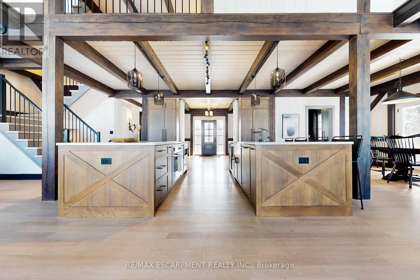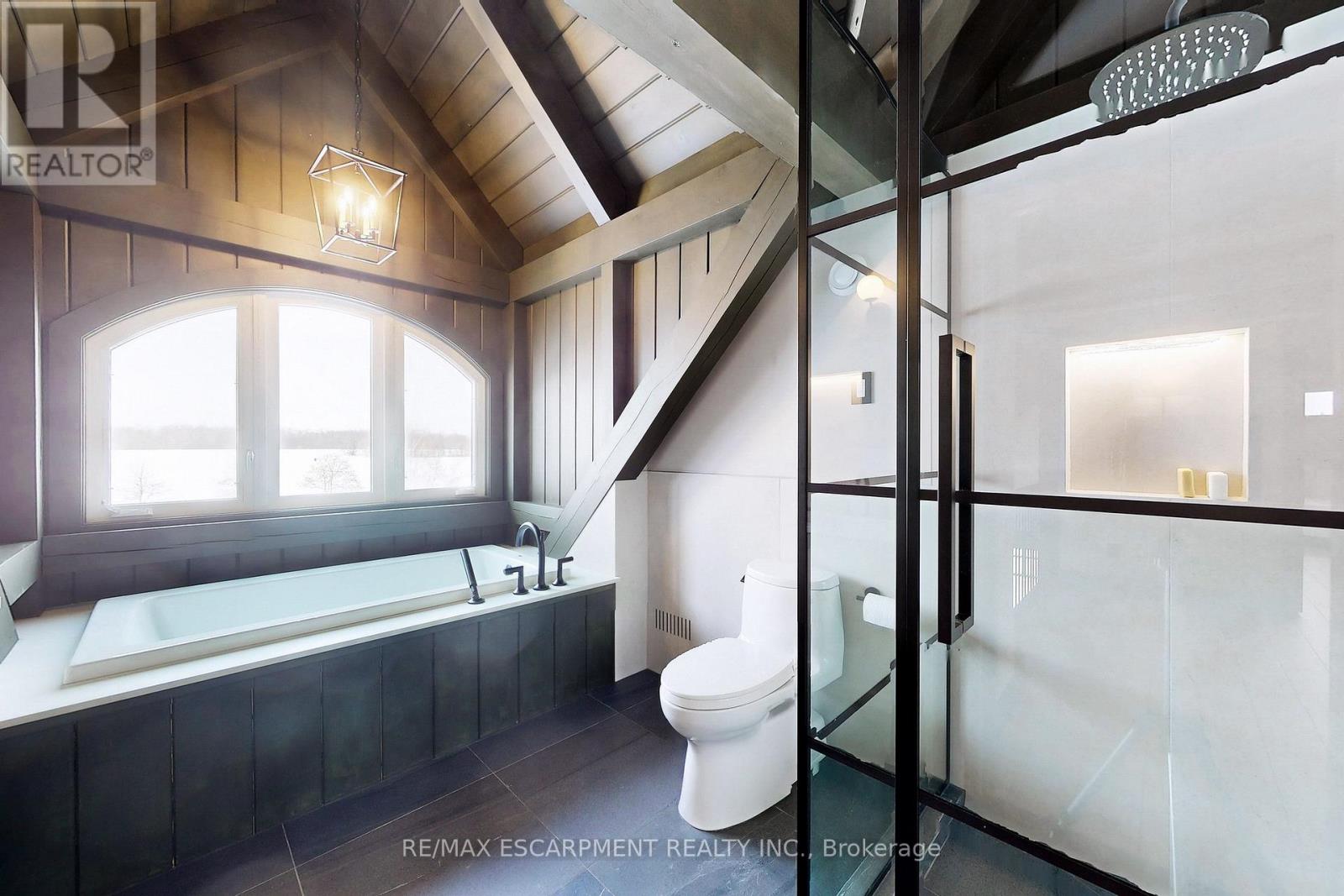 Experience the ultimate country living dream home at 485 Concession 5 Rd E-where refined luxury, beauty, and everyday ease come together, just a 4-minute drive to downtown Waterdown. Set on a breathtaking 91.6-acres of rolling farmland, mature woodlands, and a serene spring-fed pond, this property offers exceptional privacy, calm and a restorative lifestyle. The land has been organically farmed, blending sustainability with long-term peace of mind. The property includes 63 acres of actively farmed/leased farmland with Farm Property Class tax status, offering substantially reduced prop. taxes (approx. 25% of the residential rate on eligible farmland). The current farmer pays approx. $12,000 /yr to lease, helping offset ownership costs while preserving the landscape. The fully renovated 2.5-storey, 6-bed, 6-bath main residence with attached 2-bed, 2-bath guest house was exquisitely remodelled by Neven Custom Homes (2022/23) with $2M+ in premium renovations. Exceptional craftsmanship throughout, including a DaVinci composite shake roof, Gentek siding, custom windows and doors, and beautifully curated finishes. A wrap-around veranda and glass-railed deck create effortless indoor-outdoor living. The heart of the home is the stunning, highly functional chef's kitchen with two expansive islands, luxury appliances, abundant storage, and a separate prep kitchen, ideal for daily living and entertaining. Spa-inspired bathrooms, 20'8"ceilings in the great room, and a stone fireplace elevate comfort and elegance. The primary suite features timber accents and a luxurious 5-piece ensuite. The lower level is ideal for extended family, while the guest house offers privacy, high-end finishes, and panoramic views. Additional features incl a 30'x90' Quonset hut, 800+ evergreen trees, two septic systems, and two geothermal systems. Close to amenities yet worlds away, this is a rare, thoughtfully designed country estate built for living well. LUXURY CERTIFIED. (id:4555)