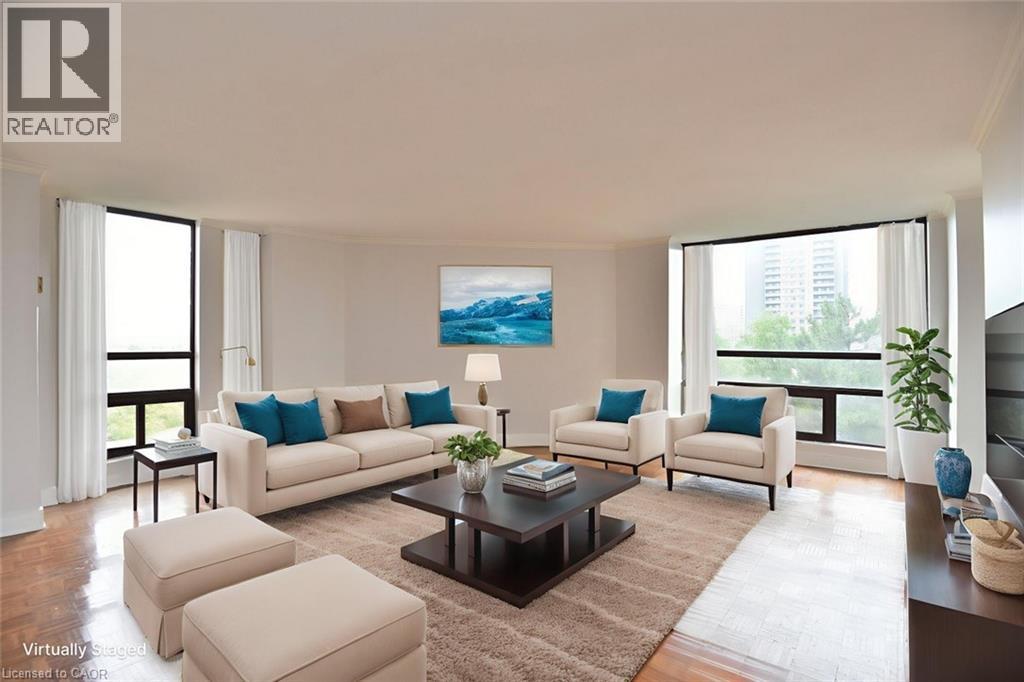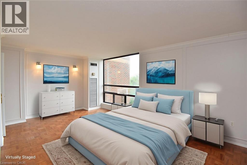 This condo has spacious rooms, providing an open feeling as you walk in the door. Beautiful views from the large windows throughout. The living room has a walkout to a private balcony, with views over the city to the waterfront. Great for relaxing! The large dining room, opening from the living room is ideal for entertaining. The primary bedroom has ample closet space and a 4 piece ensuite bath. The second bedroom also offers ample closet space. Both bedrooms have views of the water. There is also a convenient in suite laundry. Ample hall closets provide space for your storage needs. Village Hill is a well maintained building, and offers amenities such as a party room, sauna, and exercise room. The building is conveniently located in a quiet neighbourhood, with easy access to downtown. (id:4555)