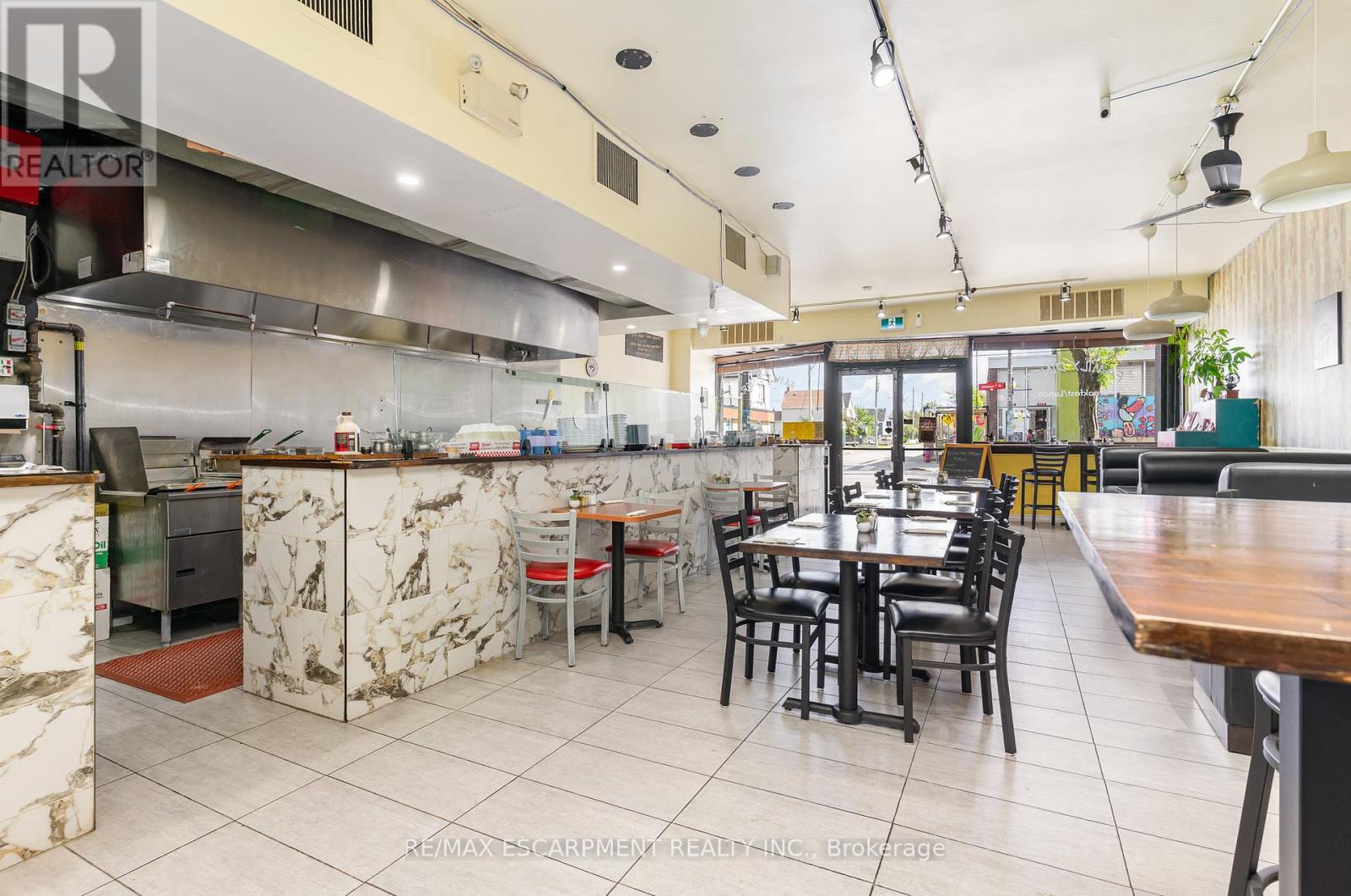 Prime Ottawa St North Building with vacant restaurant space and vacant bachelor apartment above. Flexible C5a zoning allows for a variety of uses. Former home of Beach Road and Dunav Meats, and seen in season 2 of the Umbrella Academy! The 3000ft2 main level features an open kitchen and dining area, 2 accessible washrooms, large storage and prep space and direct access to the rear parking. Additional income potential or live work with the 2nd level bachelor apartment. Full height 1223ft2 basement offers opportunities for commissary kitchen and additional storage/prep space. New flat roof with transferable warranty installed Dec 2024,. New electrical, plumbing, fire suppression, ventilation, hood, all 2015-2016. 2 car parking at rear. Do not miss out, book your showing today! (id:4555)