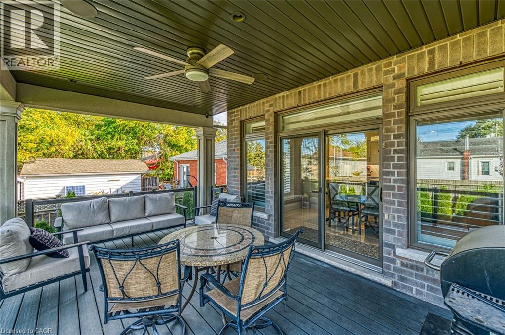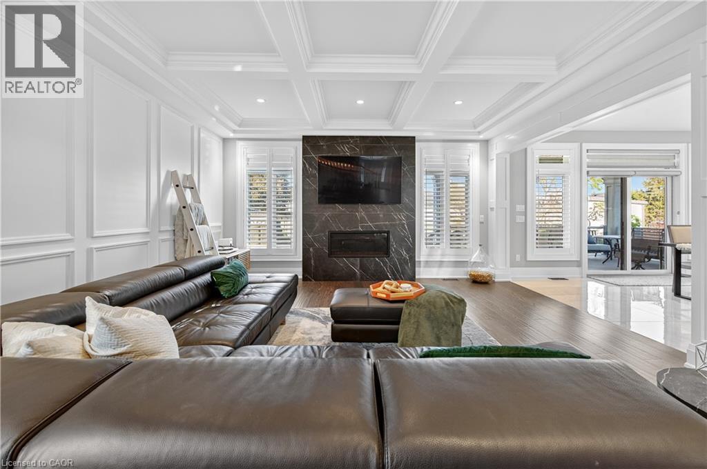 Prepare to be impressed by this meticulously crafted, fully custom 3-bedroom, 2.5-bathroom residence offering 2,531 sq ft of luxurious living on a generous 50x108 ft lot. From the moment you arrive, the home’s full brick and stone façade, arched windows, and covered porch speak to the quality and pride of ownership throughout. Inside, every detail is elevated — engineered hardwood and porcelain tile span the entire home. Solid wood interior doors, coffered ceilings, pot lights (including on all 4 sides of the home’s exterior), and crown moulding define each space with sophistication. The kitchen is an entertainer’s dream, complete with custom cabinetry, quartz countertops, high-end appliances, in-ceiling speakers, and a spacious island. It opens effortlessly to a dining area and large living room anchored by a floor-to-ceiling stone gas fireplace and built-in wet bar. The primary suite is a sanctuary, offering a large walk-in closet with custom cabinetry and a dedicated makeup station. The ensuite bath includes a double vanity, and a private water closet. Upstairs bathrooms also feature quartz surfaces and private toilet rooms for added convenience. A wide staircase enhances flow, and thoughtful extras include central vac with in-wall hose systems on every level, closet lighting throughout, and California shutters. Step outside to a covered back porch and fully fenced backyard where freshly planted cedars promise enhanced privacy in the seasons to come. The unfinished basement — with its own private side entrance and insulated subfloor — offers endless possibilities. With a double-car garage and four-car driveway, this property checks every box for luxury, comfort, and long-term livability. (id:4555)