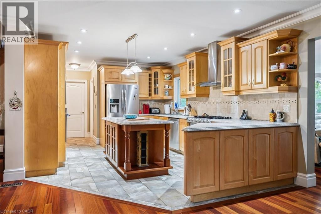 Come to a Muskoka setting property to view this custom re-built beautiful home with an open in concept main floor living area with wood cabinet chefs kitchen perfect for entertaining . Sit in the brightly windowed family room with views to a spacious treed back yard and over looking pond with water spout & falls. This home is carpet free with Brazilian hardwood flooring & with copper staircase. The house features black granite walk ways & a cedar shake & copper roof eaves through. Enjoy your summers on a 20x25 cedar deck adjacent to your massive back fire pit & bunky. The lower level is completely finished with an inside walk up to the garage featuring a potential in law suite. Country living at its best but a close commute to schools, shopping, places of worship, parks, Hwys & most other amenities. Viewing is essential to appreciate this beautiful family home. (id:4555)