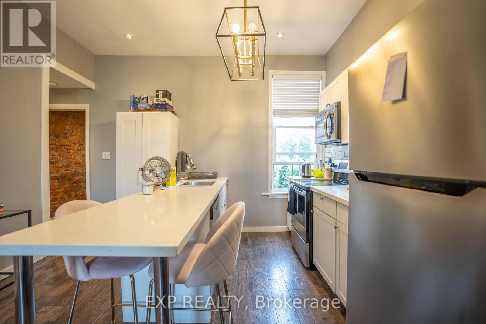 TURNKEY & CASH FLOW POSITIVE - Investor's Dream at a 7.43% CAP RATE! This legal duplex plus bonus unit offers a true turnkey investment opportunity generating over $4,775 in monthly income. Fully renovated in 2018, the property features high-end finishes throughout - including stainless steel appliances, quartz countertops, new windows and doors, modern trim, fresh paint, and in-suite laundry in every unit. Each suite is tenanted at market rent, with tenants paying their own hydro. The property includes four hydro meters for easy utility management and rear alley parking for two vehicles, with room to explore additional income potential. Don't miss this low-maintenance, high-return investment - financials available upon request! (id:4555)