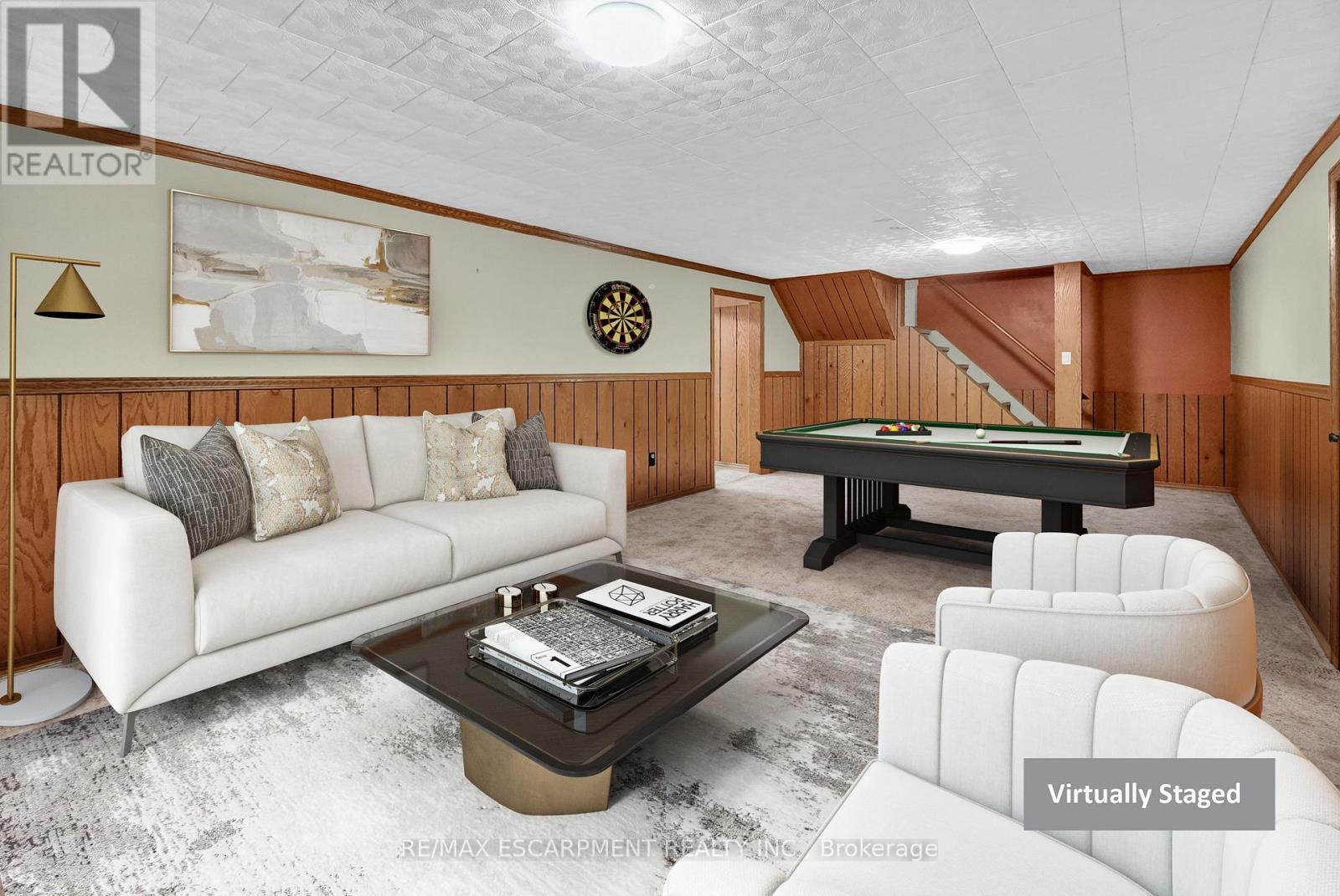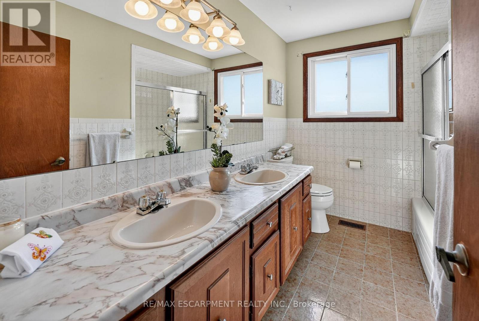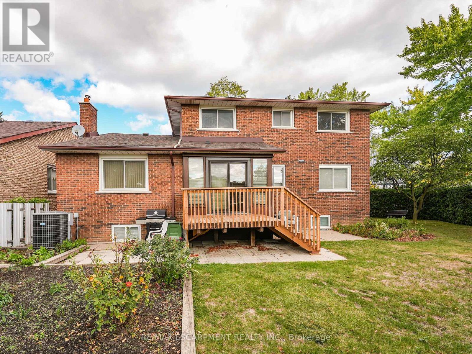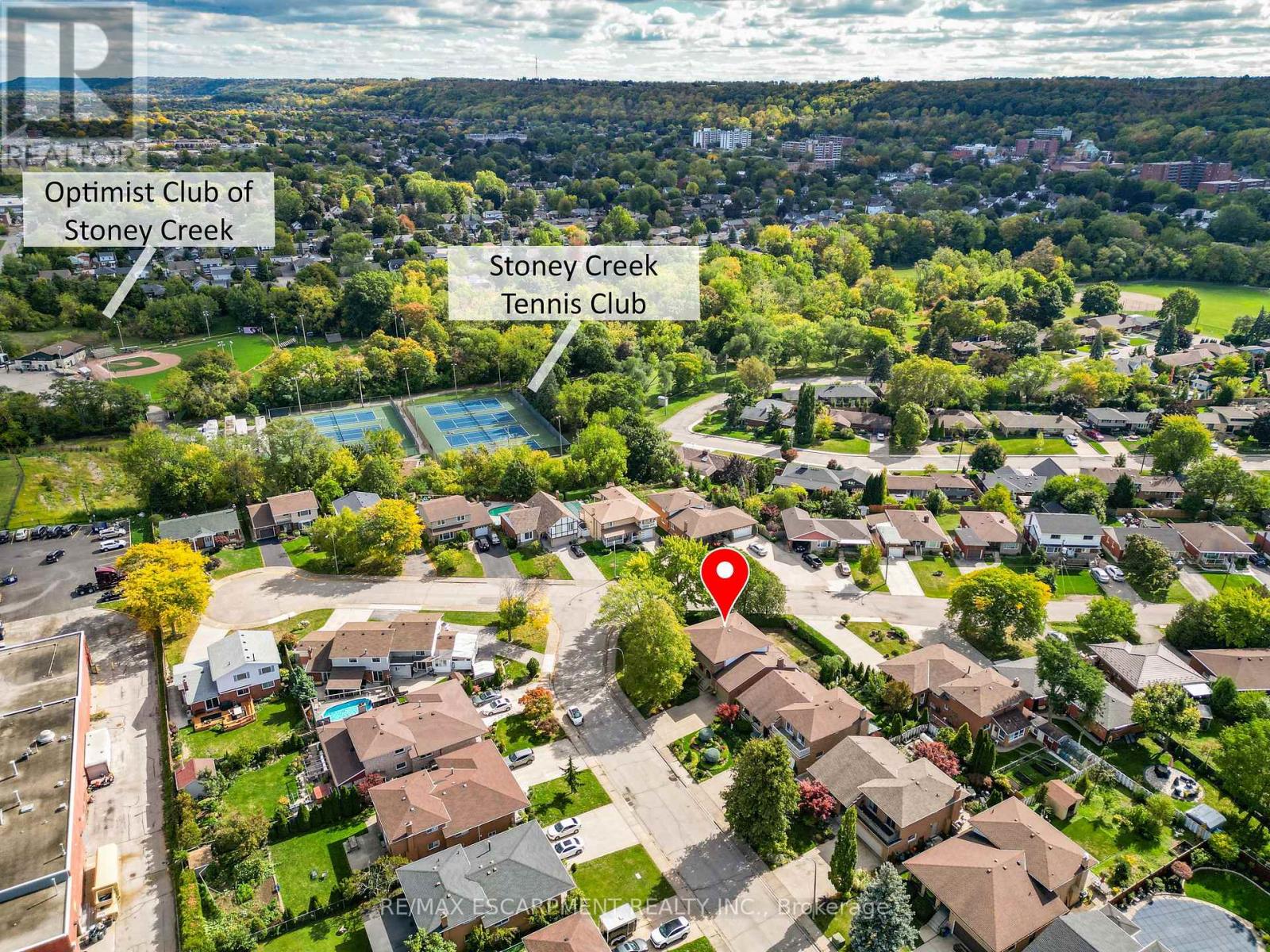 PERFECT FIT FOR FAMILY LIFE....A wonderful blend of warmth & functionality, this brick 2-storey is nestled in a quiet Stoney Creek neighbourhood w/stunning ESCARPMENT VIEWS. Proudly set on a CORNER LOT, the well-maintained property exudes charm inside & out. From the moment you arrive, the covered front porch invites you to sit back & relax. DBL CONCRETE DRIVEWAY provides parking for 4, complemented by an attached 1.5-car garage w/workbench & shelving - perfect for hobbyists or storage. Step inside a bright, welcoming foyer leading to a formal living room that flows seamlessly into the dining room - ideal spot for gatherings & entertaining. The kitchen connects to a SUN-FILLED DINETTE nook w/direct access to back deck & private yard, offering a perfect transition between indoor & outdoor living. The FAMILY ROOM featuring a cozy gas fireplace, and a 3-pc bath, completes the main floor. Upstairs, gleaming hardwood leads to four spacious bedrooms & 5-pc bath. Two bedrooms, incl. primary suite, feature WALKOUTS to a full-width front BALCONY, creating a peaceful retreat. A FULLY FINISHED BASEMENT adds versatility, with large recreation room, games room, cedar storage closet, big laundry/utility room, and spacious cantina w/plenty of shelving. Outside, unwind in the BEAUTIFULLY LANDSCAPED YARD, complete w/perennial gardens, privacy hedge & vegetable garden, all framed by picturesque escarpment views. Walk to charming downtown Stoney Creek w/cafes & restaurants, or Battlefield Park- a National Historical Site. Perfectly situated close to Eastgate Mall, Denningers, public transit, schools, shopping & QEW/Red Hill access PLUS just a 5 min drive to new Confederation GO station, 7 min drive to Confederation Park on Lake Ontario with its sandy beach, waterpark, restaurants & waterfront rec trail. This home offers a lifestyle of comfort and convenience in one of Stoney Creek's most desirable settings. CLICK ON MULTIMEDIA for virtual tour, drone photos, floor plans & more. (id:4555)