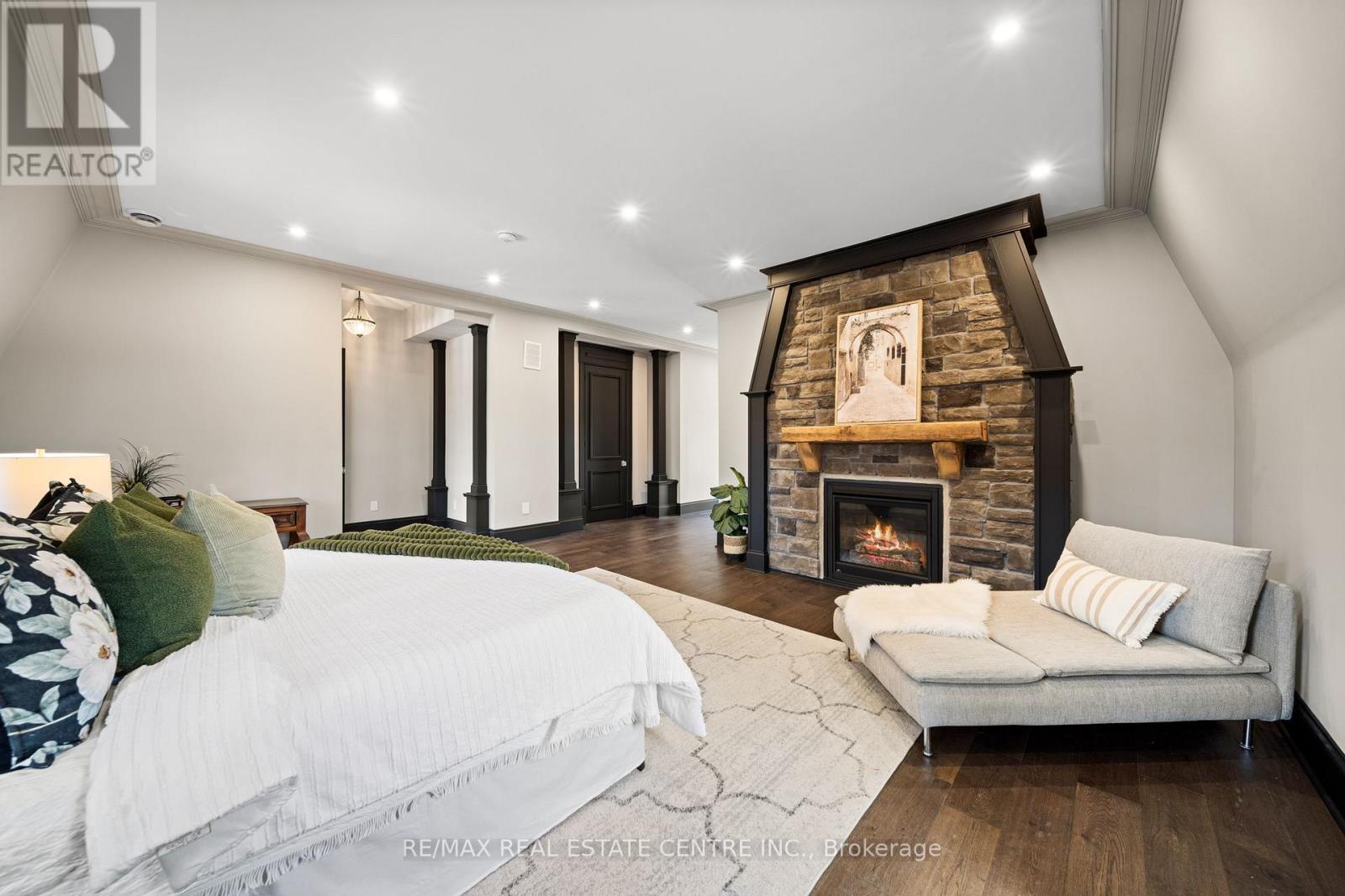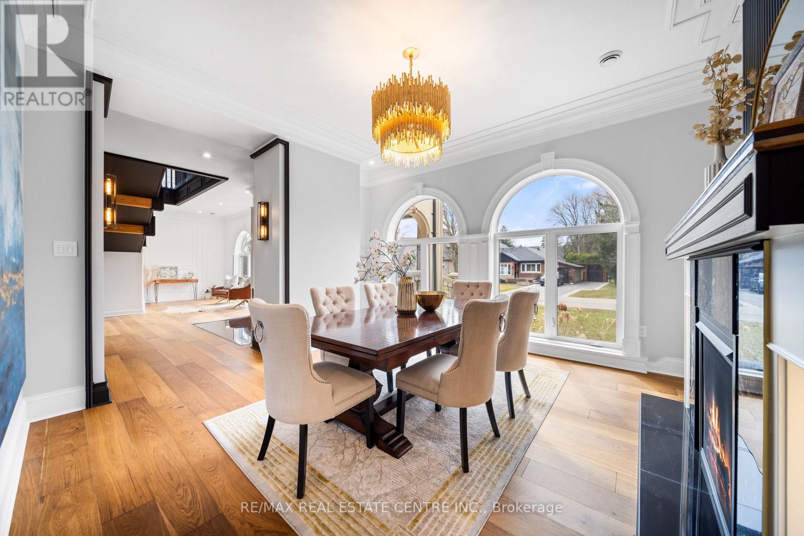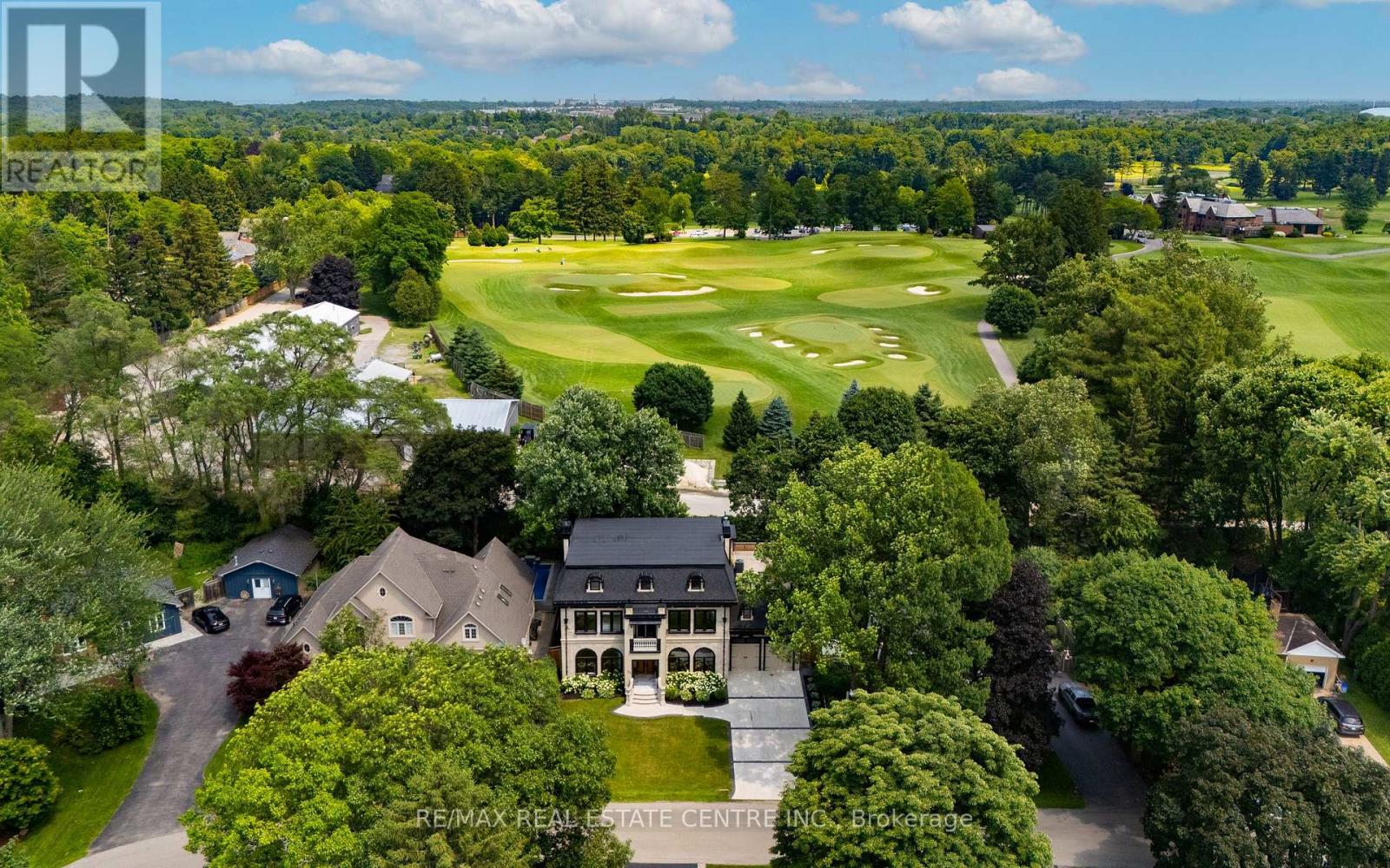 Nestled in scenic Ancaster Village, this French Chateau-inspired residence offers over 7,000 sqft of luxury backing onto the iconic Hamilton Golf Club, with sweeping views of one of Canada's premier courses. This 3-storey masterpiece features 4 beds, 7 baths, 10.5' soaring ceilings, custom millwork, and refined European design. The main floor is designed for entertaining, showcasing a gourmet kitchen with high-end appliances, quartz counters, custom cabinetry and a large island. Three sets of double doors open to a covered outdoor dining area. A formal dining room with chandelier, fireplace and wet bar adds elegance, while the family room with built-ins and fireplace connects seamlessly to the landscaped yard. Second level is dedicated to ultimate comfort, 3 spacious bedrooms each with private baths & walk-in closets. Primary suite boasts gorgeous stone fireplace, custom walk-in closet & spa-like ensuite with freestanding tub, rainfall shower, glass shower, and private terrace overlooking the golf course. Third level serves as a secluded refuge with spacious living room, large bedroom, full bath & kitchenette. A walk-out portico terrace offers panoramic views of the golf course. Lower level features 9' ceilings, a recroom, fitness room, family room with another fireplace, full bathroom, heated floors & a kitchenette. A wine cellar completes your chateau experience. The property boasts a cedar-ceiling covered deck, outdoor gas fireplace, mature trees for privacy, 5 fireplaces, 3 dishwashers, Terrazzo concrete driveway & large tandem garage with 4-post car lift for the car enthusiast. Crafted with an ICF foundation and whole-home hydronic in-floor heating across all four levels, the residence delivers year-round comfort, remarkably low operating costs, and a reduced carbon footprint-luxury that's as smart as it is beautiful. Close to fine dining, shopping, trails, and conservation areas, this property is a rare haven of sophistication, luxury, and timeless elegance. (id:4555)