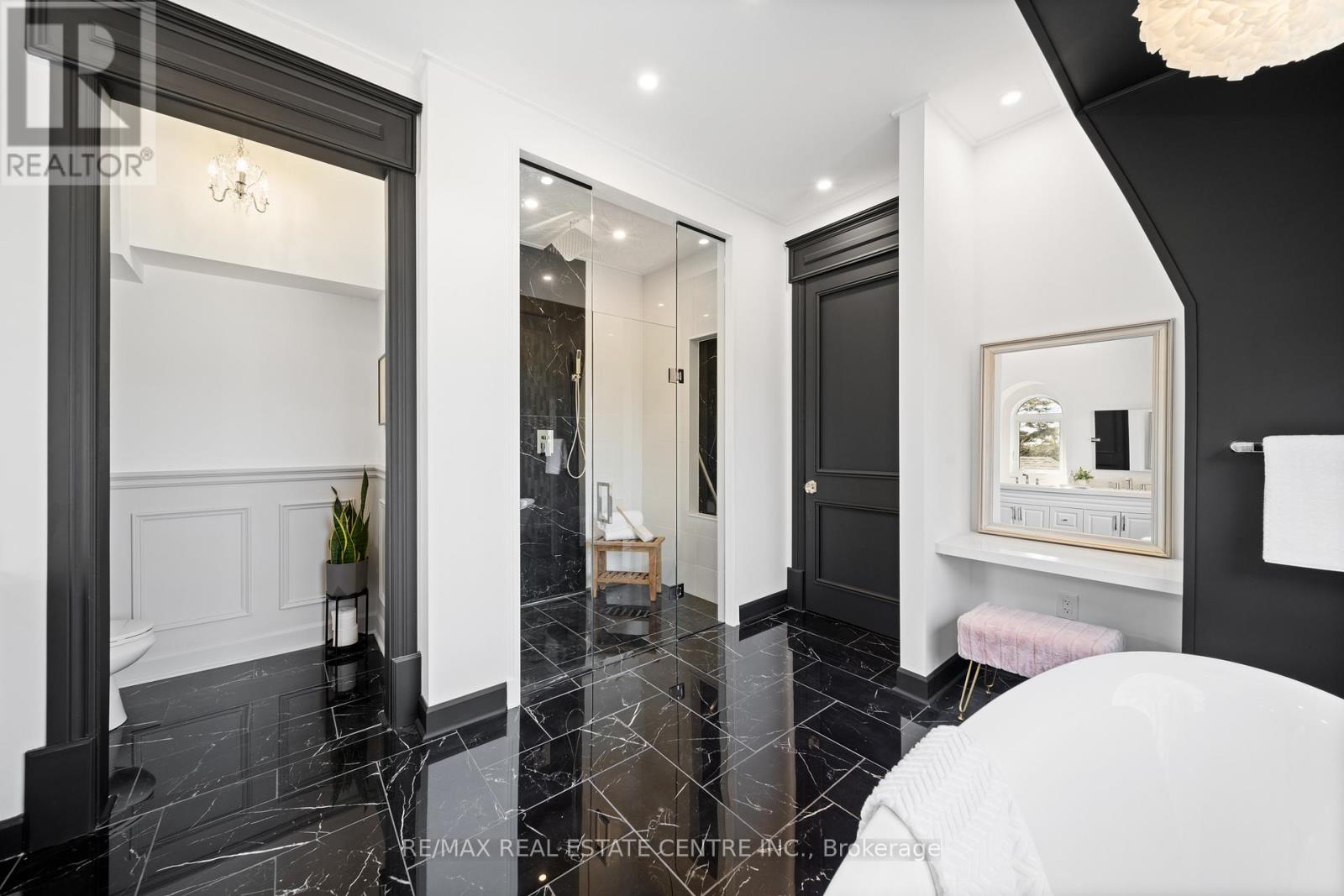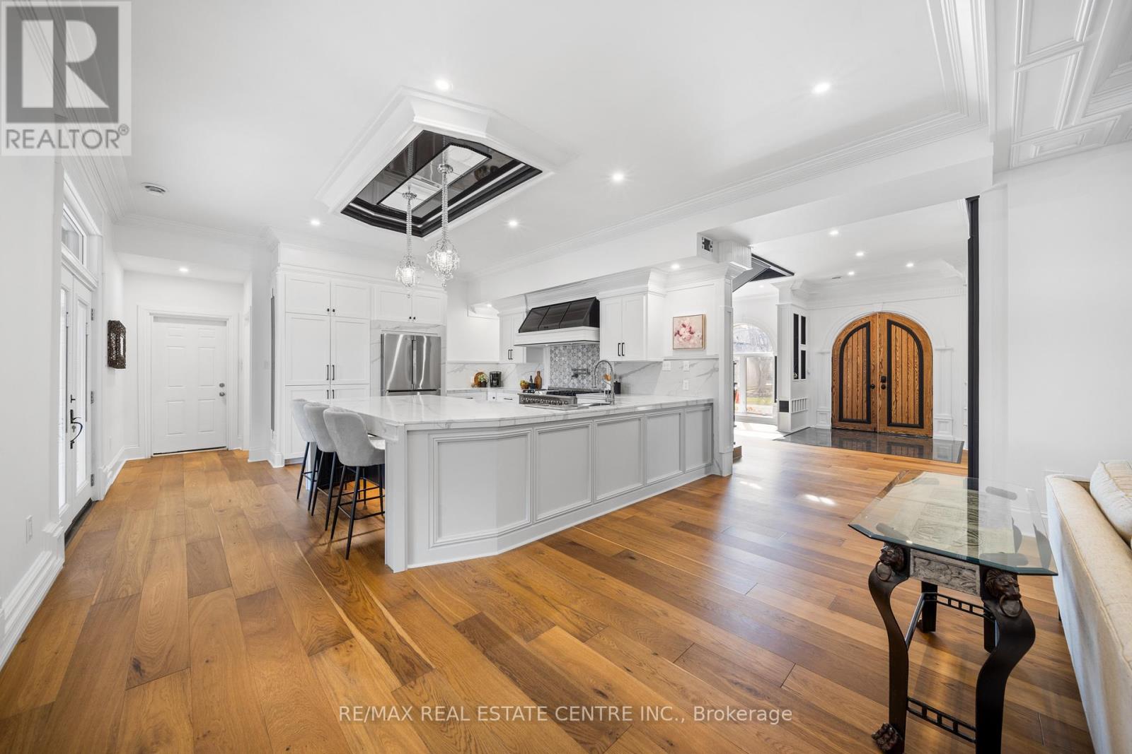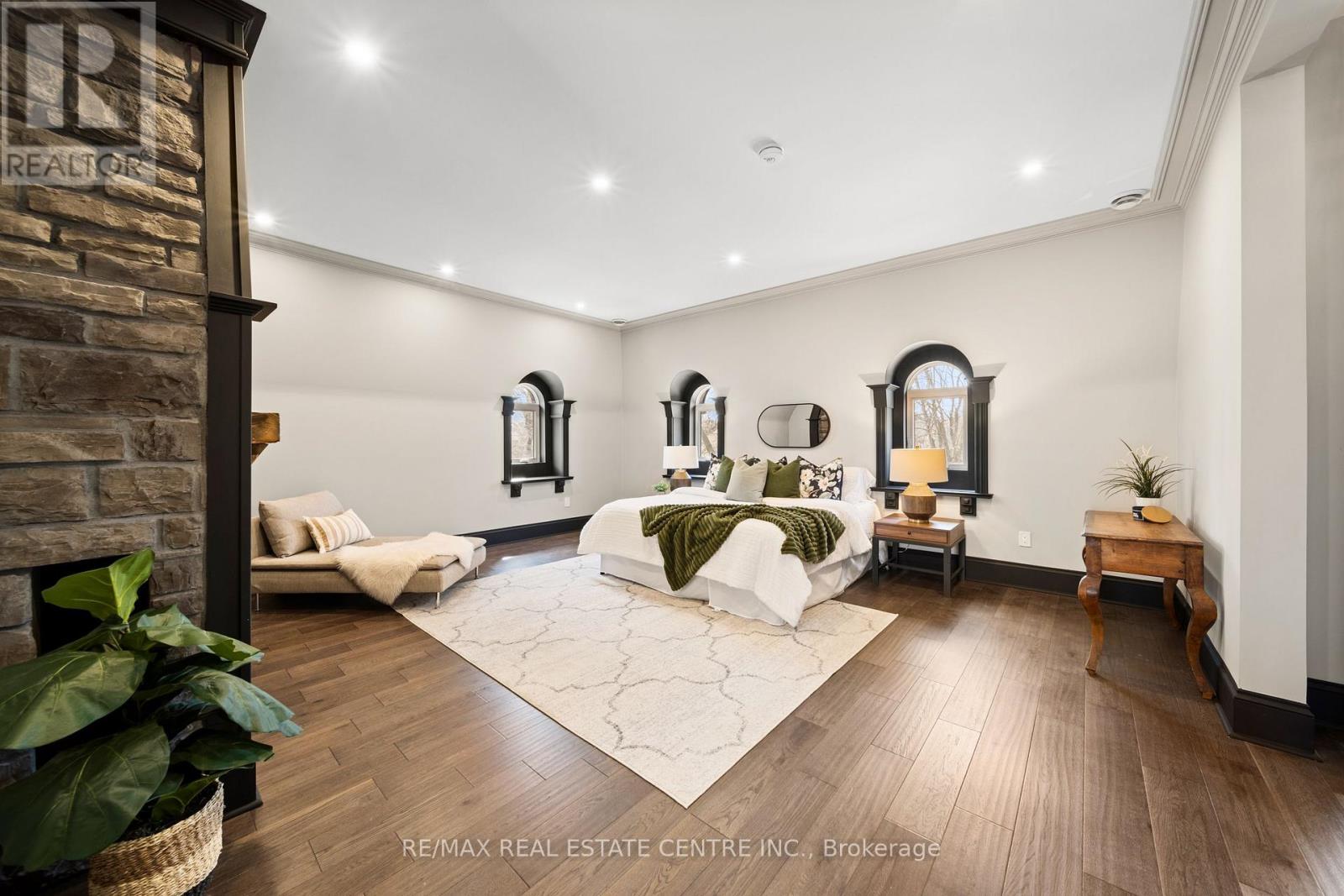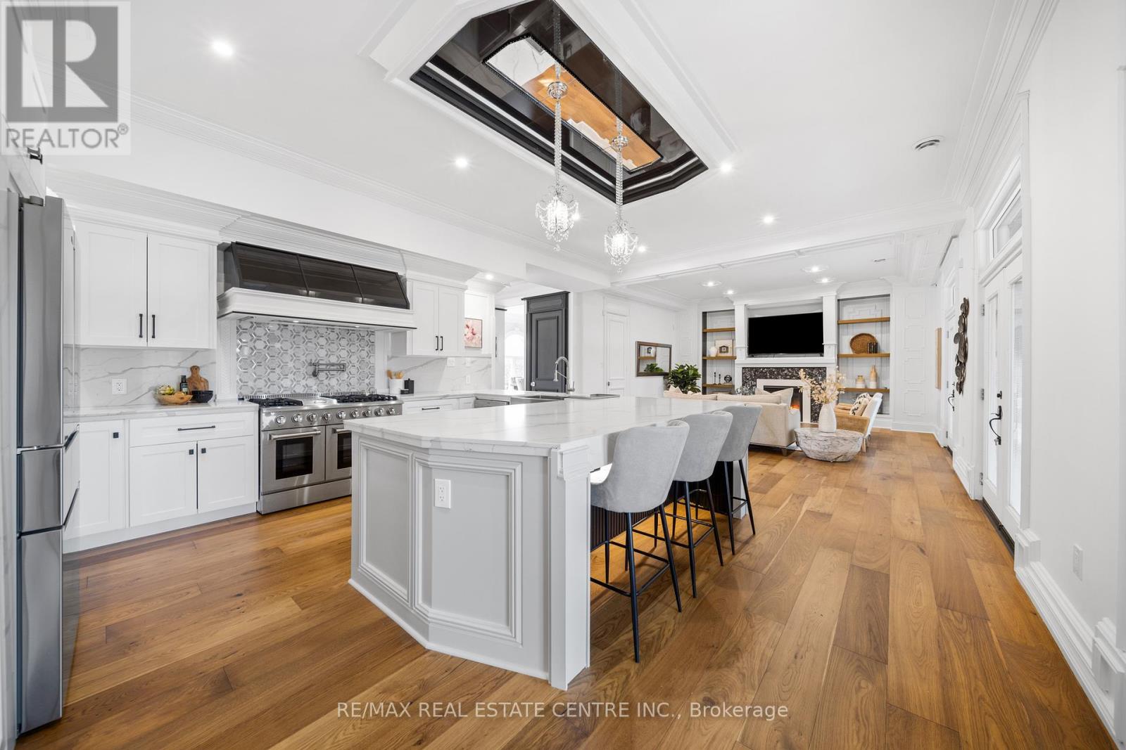 Nestled in scenic Ancaster Village, this French Chateau-inspired residence offers over 7,000 sqft of luxury backing onto the iconic Hamilton Golf Club, with sweeping views of one of Canada's premier courses. This 3-storey masterpiece features 4 beds, 7 baths, 10.5' soaring ceilings, custom millwork, and refined European design. The main floor is designed for entertaining, showcasing a gourmet kitchen with high-end appliances, quartz counters, custom cabinetry and a large island. Three sets of double doors open to a covered outdoor dining area. A formal dining room with chandelier, fireplace and wet bar adds elegance, while the family room with built-ins and fireplace connects seamlessly to the landscaped yard. Second level is dedicated to ultimate comfort, 3 spacious bedrooms each with private baths & walk-in closets. Primary suite boasts gorgeous stone fireplace, custom walk-in closet & spa-like ensuite with freestanding tub, rainfall shower, glass shower, and private terrace overlooking the golf course. Third level serves as a secluded refuge with spacious living room, large bedroom, full bath & kitchenette. A walk-out portico terrace offers panoramic views of the golf course. Lower level features 9' ceilings, a recroom, fitness room, family room with another fireplace, full bathroom, heated floors & a kitchenette. A wine cellar completes your chateau experience. The property boasts a cedar-ceiling covered deck, outdoor gas fireplace, mature trees for privacy, 5 fireplaces, 3 dishwashers, Terrazzo concrete driveway & large tandem garage with 4-post car lift for the car enthusiast. Crafted with an ICF foundation and whole-home hydronic in-floor heating across all four levels, the residence delivers year-round comfort, remarkably low operating costs, and a reduced carbon footprint-luxury that's as smart as it is beautiful. Close to fine dining, shopping, trails, and conservation areas, this property is a rare haven of sophistication, luxury, and timeless elegance. (id:4555)