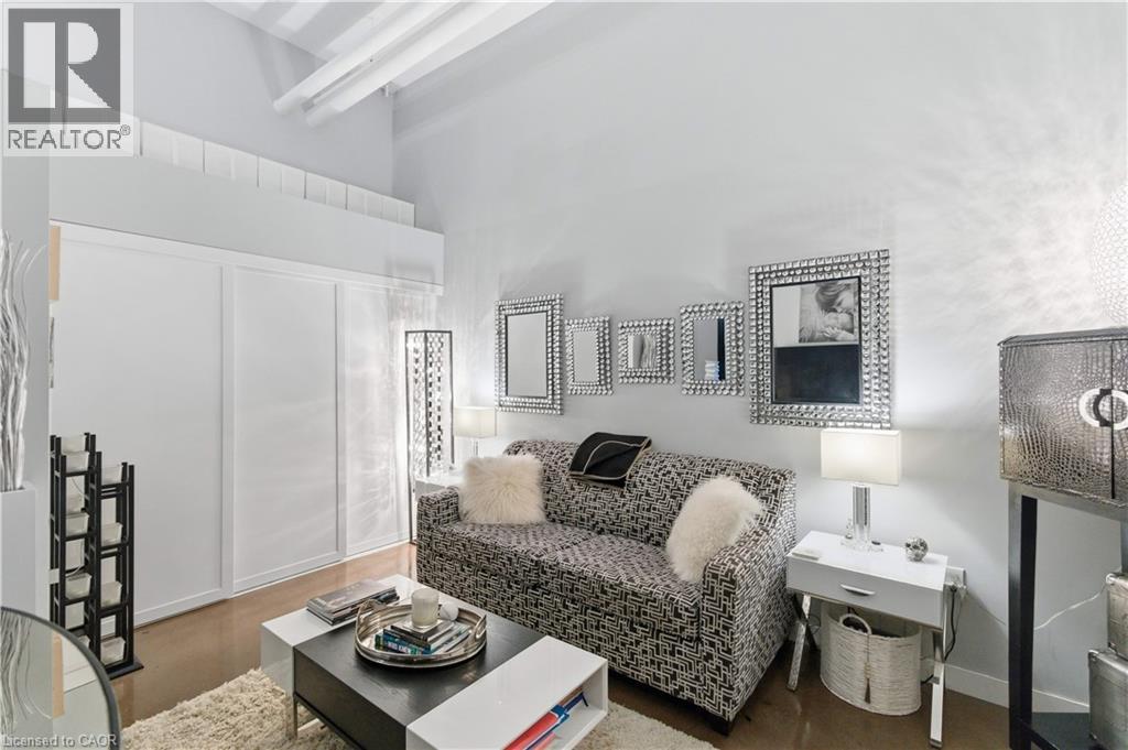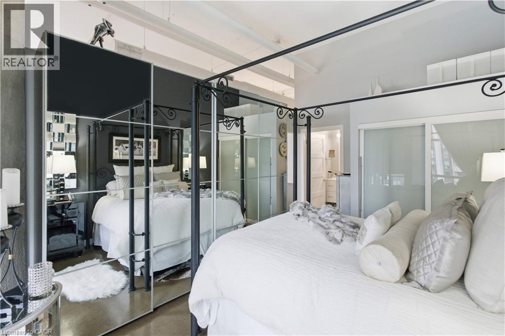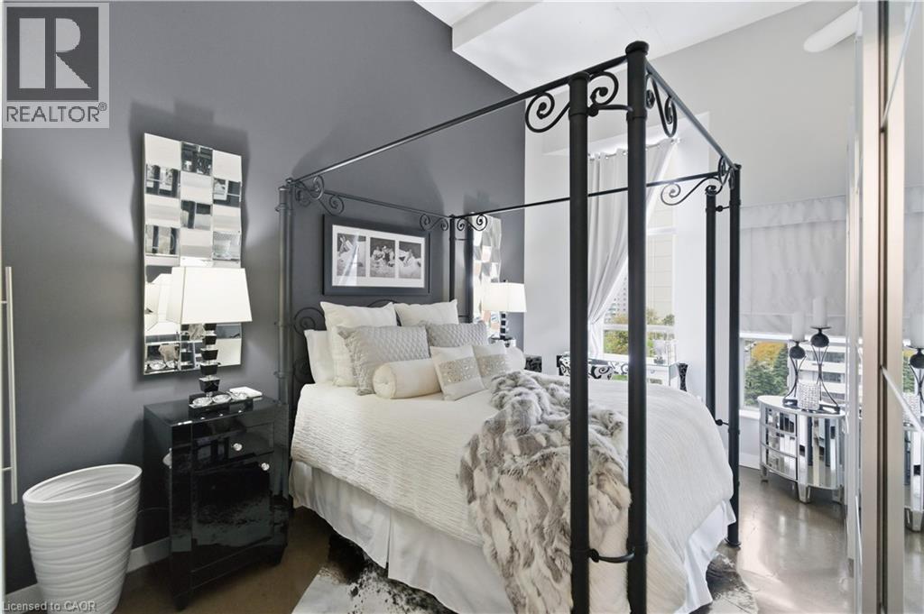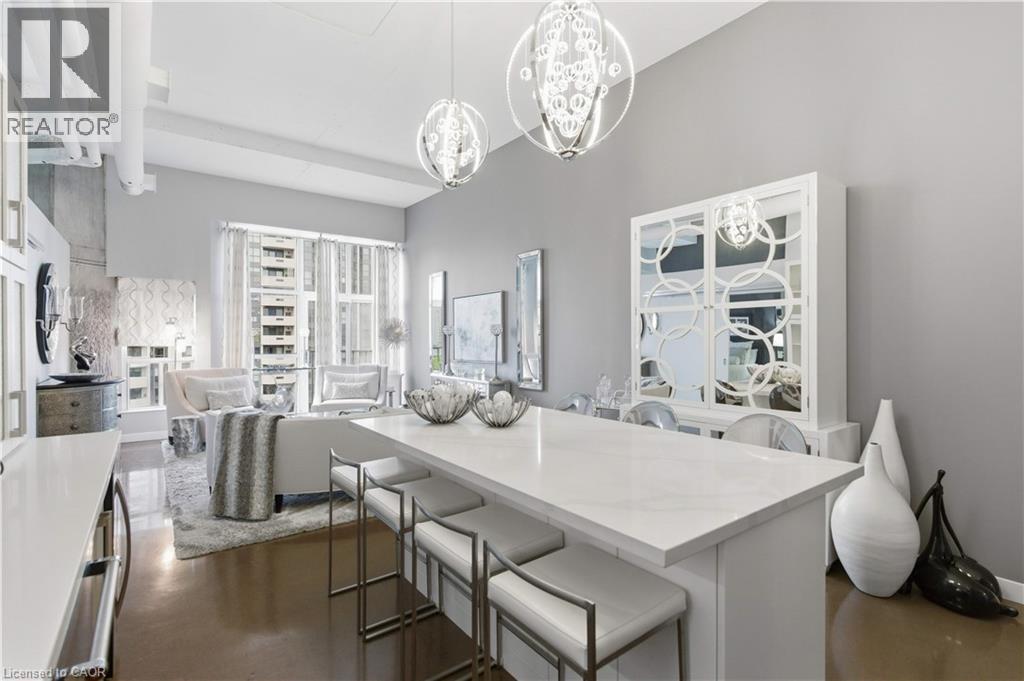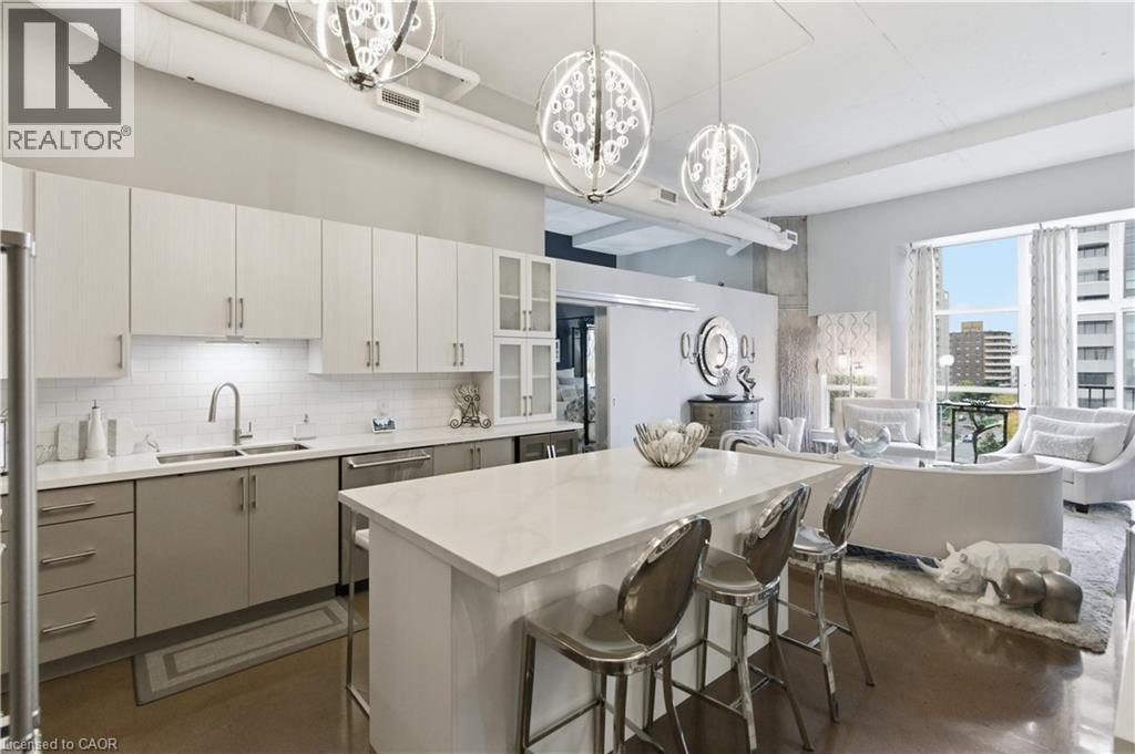 Welcome to Core Lofts - Hamilton’s premier loft condominium, ideally situated in the city's coveted Durand neighbourhood. Once a former Bell Canada office building, this landmark conversion seamlessly blends industrial character w/ sophisticated urban design. This exceptional 1143 sq ft, 2-bdrm, 2-bath penthouse offers an elevated living experience w/ western exposure. Polished concrete floors, soaring 12.5' ceil & expansive windows create a striking open-concept environment filled w/ natural light. The custom-reno'd kitch is a true showpiece, feat bespoke cabinetry, quartz counters, a stylish tiled backsplash, S/S app (incl a beverage fridge) & a large centre island w/ dual overhang seating for up to 8. The spacious liv rm opens to a Juliette balcony overlooking the city skyline, while the primary retreat feat an oversized closet, custom oversized wardrobe & a luxe upgraded 3-pc ensuite w/ an oversized glass shower & modern finishes. A 2nd bedroom, currently utilized as a den, provides flexibility for a home office or guest suite. The beautifully updated 4-pc main bath feat a tub/shower combo w/ a glass enclosure. Add highlights incl in-suite laundry, upgraded lighting, a tandem 2-car parking space (#59 PL-2 Lvl A), & an oversized storage locker (#23 on penthouse lvl). Steps away from access to a rooftop terrace w/ panoramic views of the city & topography, complete with BBQ areas & multiple seating zones. Add amenities incl a well-equipped gym, a stylish lobby, & a modern meeting room. Recent notable building improvements incl elevators, HVAC systems, & improved entry security. The location is second to none - steps to vibrant James St, the GO Station for easy commuting to Toronto, restaurants, shops, St. Joseph’s Hospital, & the Downtown Arts District. Walk to parks, trails, cafés, & everything downtown has to offer. This rare penthouse combines timeless industrial style, urban convenience, & luxe comfort - truly one of Hamilton’s most impressive loft residences. (id:4555)