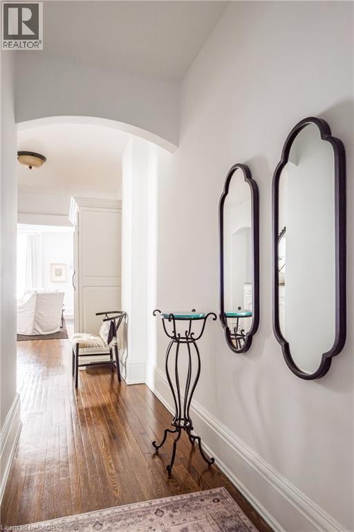 Welcome to the historic “Herkimer Apartments”, one of Hamilton’s most prestigious condo conversions, located in the heart of the Durand neighbourhood. Designed by renowned architect William Palmer Witton and built in 1915, this landmark was once the pinnacle of luxury living, featuring marble staircases, ornate moldings, steam heating, and Canada’s first elevator and central vac system. It remains Ontario’s last standing building with a terracotta portico. Today, Herkimer Apartments continues to captivate with 23 exquisite condo’s including this stunning 1,728 sq ft unit, which retains its original floorplan and offers two separate entrances. Inside, you'll find gleaming dark hardwood floors, soaring high ceilings, 10” baseboards, crown molding, and elegant finishes throughout. The original servant’s door, steps into a discreet back entry with storage, a stunning 2-piece bath, laundry, and utility room. The bright, spacious kitchen features granite countertops, stainless steel appliances, butler pantry station, and original swinging door leading to the formal dining room, ideal for hosting dinner parties and family gatherings. An adjacent sunroom features built-in bookcases and is the perfect space for a den or home office. The formal front entrance invites you into a spacious hallway and elegant living room featuring a fireplace with stunning Carrara marble surround and built-in bookshelves and the perfect place to relax or entertain. The bedroom wing boasts a newly renovated 4-piece bath with marble floors and two spacious bedrooms, including the primary with walk-in closet. Residents have access to a rooftop terrace with panoramic city views to enjoy. Updates incl furnace (2020) washer & dryer (2019) both bathrooms (2019). Just steps from St. Joseph’s Hospital, Locke Street S, parks, trails, GO Station and Hwy 403 access makes this is an extraordinary opportunity for the sophisticated buyer seeking a home with timeless elegance and historical significance. RSA. (id:4555)