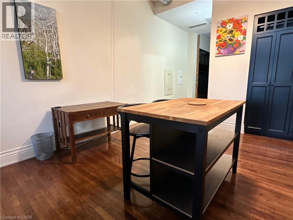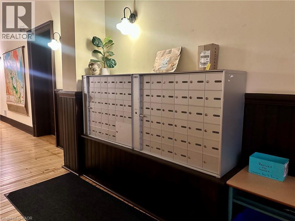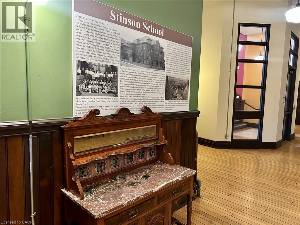 Welcome to this stunning, spacious open-concept suite in the Stinson School Lofts, offering escarpment vistas from the oversized windows! Enjoy seamless flow between the living, dining, and kitchen areas—perfect for entertaining or relaxing at home. Stainless steel kitchen appliances add a luxury touch. The large foyer features built-in shelves and a bench, offering both style and practicality. The primary bedroom boasts a huge walk-in closet, while the modern three-piece bath is equipped with a walk-in shower, and a bonus in-suite laundry for your convenience. Soaring 14’ ceilings, exposed brick and original maple hardwood floors add character and warmth throughout. Just steps from scenic trails, a dog park, golf courses, and local restaurants, this unique property offers the best of urban living. Stinson School Lofts won City of Hamilton urban design and architecture awards 2015 award of outstanding achievement and excellence in adaptive reuse. (id:4555)