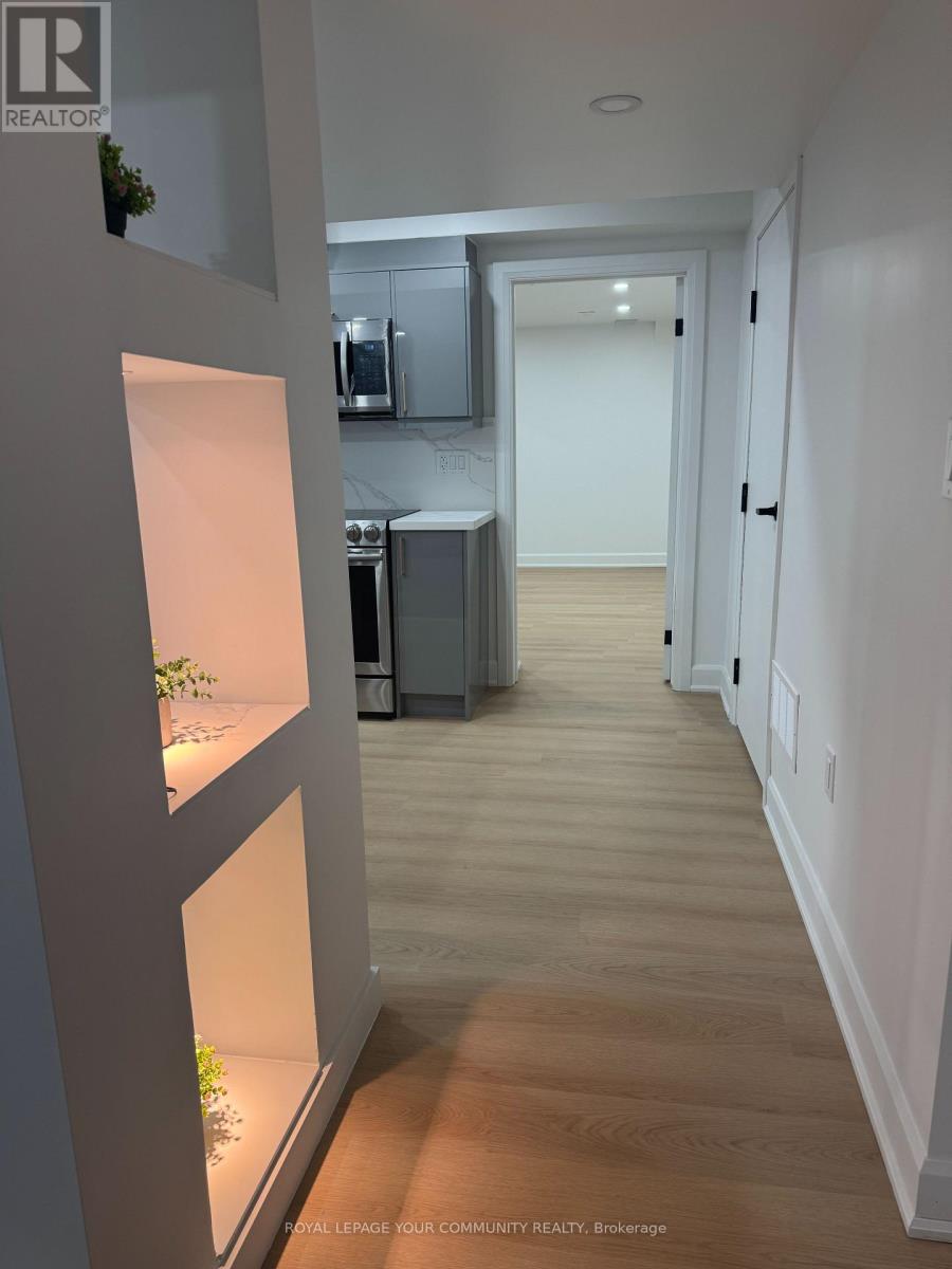 Fabulous! NEW BUILT, LEGAL BSMNT APT. Never lived in! Perfect Family Home, Generous Bedrooms TWO and a Large Kitchen with centre island, Corian Counters and Stainless Steel Appliances. Family room can accommodate large sofas and has a bracket for TV installed. Modern Bathroom with a spacious shower. Beautiful marble tile and fixtures throughout. Fully private side entry, and full size laundry with a furnace room. There is a double closet in the Primary Bedroom and also storage under the stairs. The Unit is well laid out and there is access to side entrance and a designated parking spot at front of property. The Entire Apt. is approximately 1100 sq ft. Enjoy the convenience of nearby scenic trails, GO Station, Highway 403 & 407, grocery stores, and everyday amenities. Don't miss this opportunity to live in a well-connected and charming community! Please review the attached plans for exact measurements. No Representations and warranties will be otherwise provided. (id:4555)
