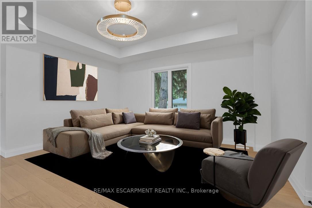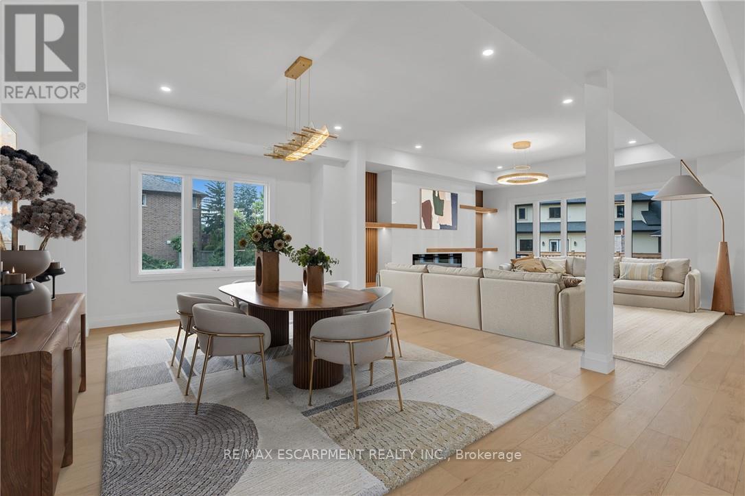 **MOVE-IN READY - Zeina Homes Modified Forestview Model** This beautiful custom home siting on 40 by 124 lot. Features 5 spacious bedrooms plus den and 5 bathrooms, basement with a side entrance, ideal for an in-law suite. The open-concept main floor boasts a welcoming double-door entrance, modern décor, and abundant natural light. The custom kitchen includes a center island, extensive cabinetry, and stylish light fixtures. Sliding doors lead to an oversized concrete porch in the backyard. Additional highlights include an elegant oak staircase, oversized windows, granite/quartz countertops, hardwood floors, a brick-to-roof exterior, and a 2-car garage. Located in a mature Ancaster neighborhood, this home is close to parks, schools, shopping, restaurants, Costco, and more. (id:4555)