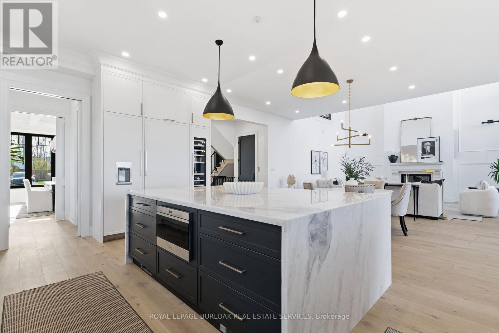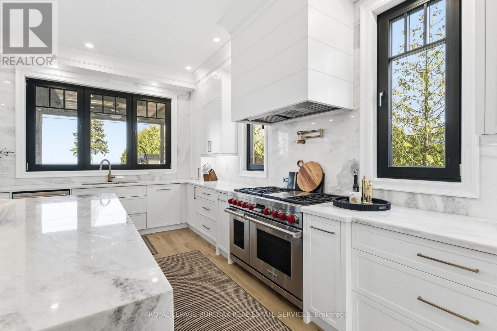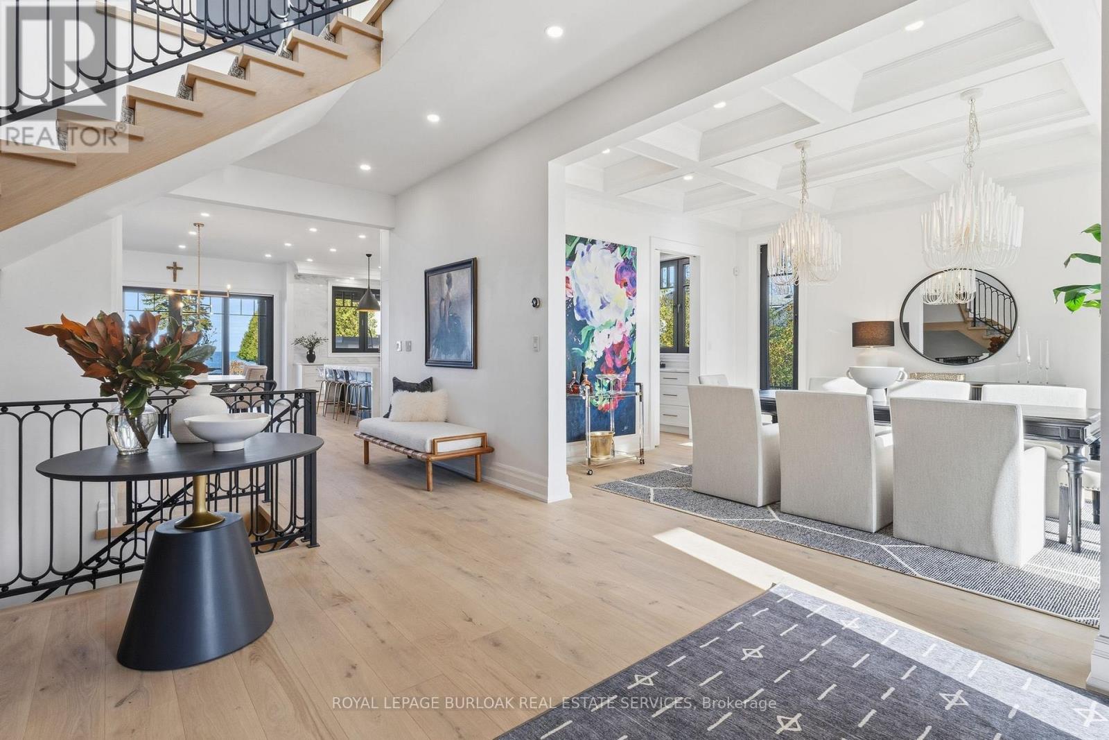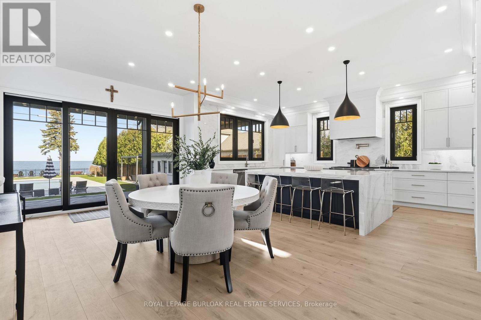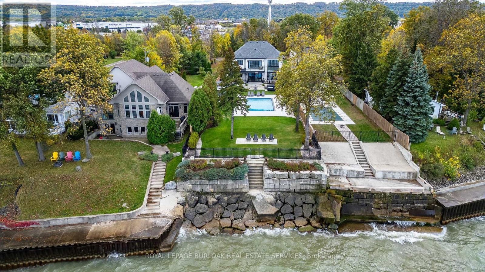 Welcome to an extraordinary custom-built waterfront residence offering luxury, craftsmanship, and breathtaking views at every turn. Designed with top-of-the-line finishes throughout, this home showcases soaring 20-foot ceilings in the great room, expansive windows that frame the water, and a seamless blend of elegance and comfort. The chef's kitchen is a true showpiece, featuring premium appliances, refined cabinetry, a service pantry -perfect for both everyday living and entertaining. The spa-like primary suite offers a serene retreat with stunning views, a beautifully appointed ensuite, and a spacious walk-in closet. Generously sized bedrooms provide comfort and privacy for family and guests. Step outside to your own resort-style oasis, complete with an inground saltwater heated pool overlooking the shoreline. Covered outdoor spaces and meticulously landscaped grounds create the ideal setting for relaxation or gatherings in every season. An elevator provides effortless access to all three levels, enhancing convenience and accessibility. The 3-car garage, spacious mudroom, and main-floor laundry add exceptional functionality, making daily living as comfortable and practical as it is luxurious. (id:4555)