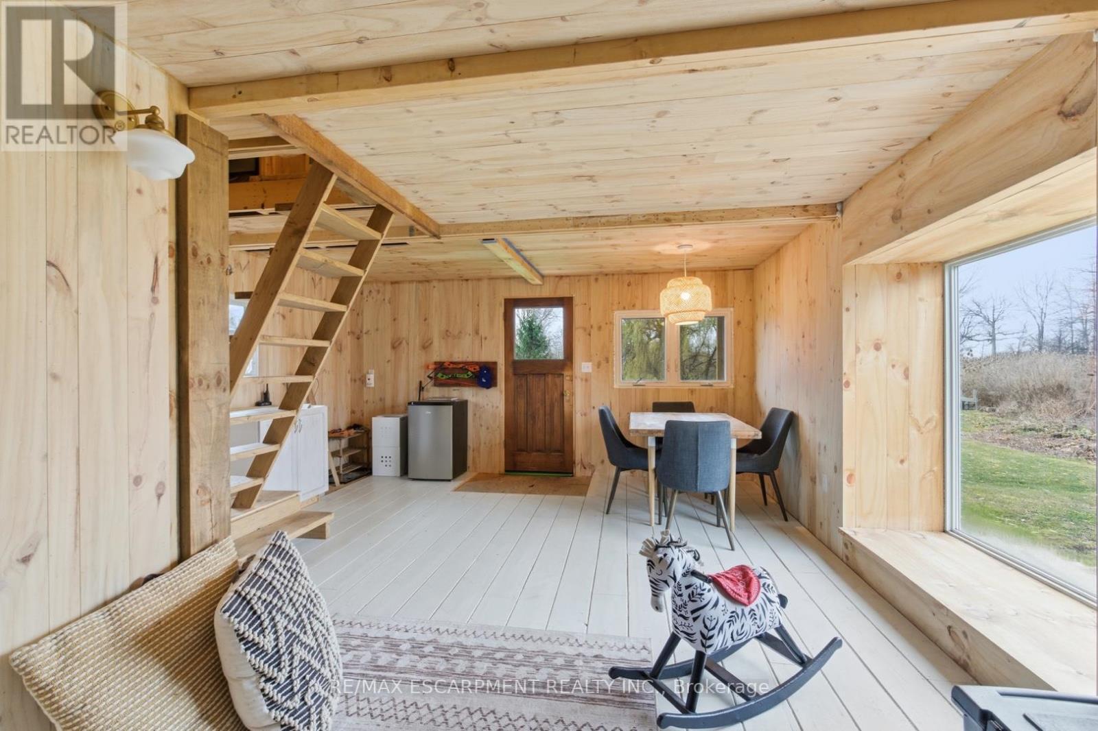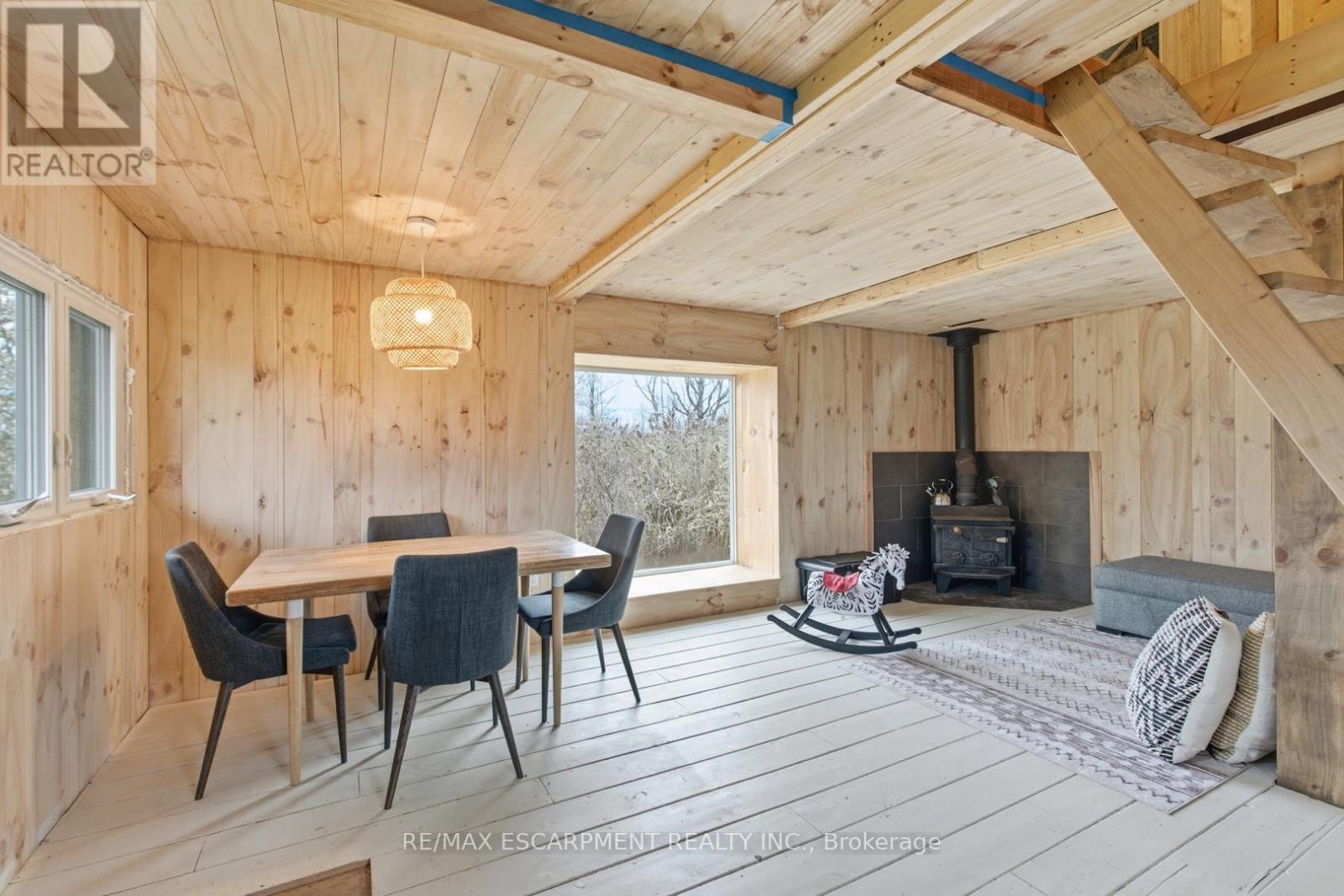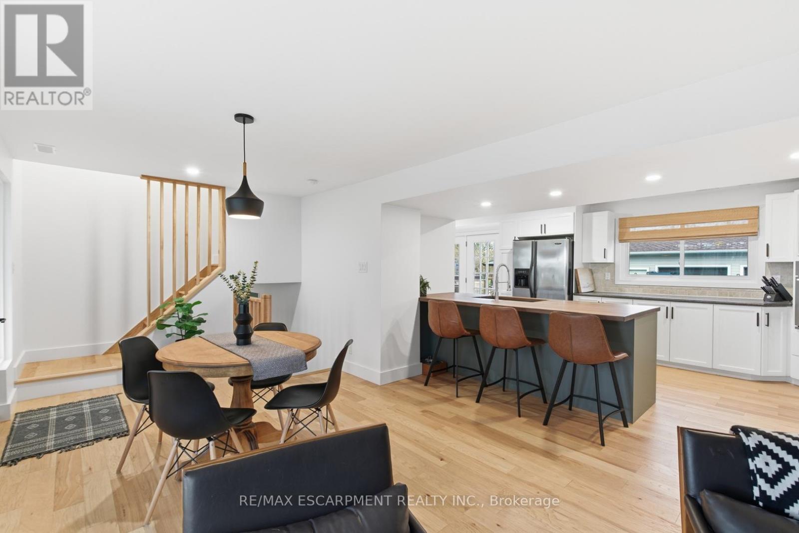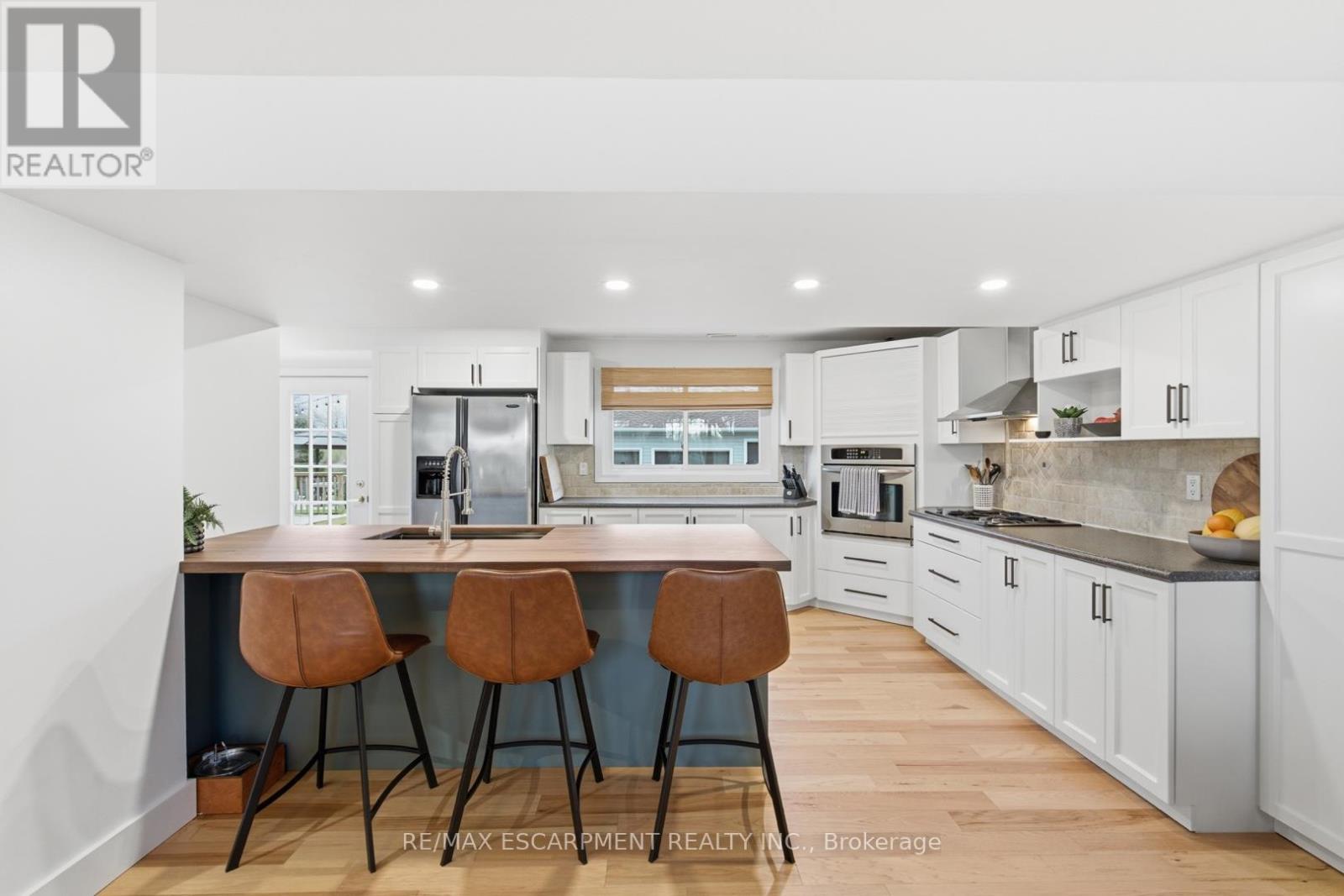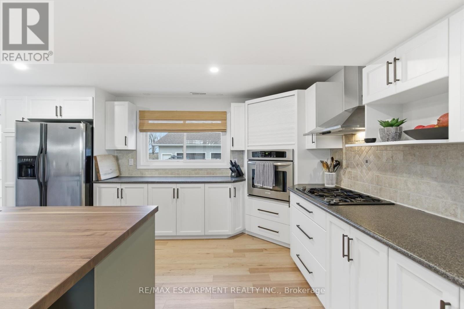 Incredible opportunity to own this rare two-family home set on a full one-acre property, just seconds from downtown Binbrook. Both units are fully above grade and feature completely separate front and rear entrances, offering versatility for multi-generational living or rental income. North Suite: Step inside to an updated kitchen equipped with built-in stainless-steel appliances, a butcher-block island, modern trim work and beautiful hickory engineered flooring. The bright living/dining area provides the perfect space for family gatherings and entertaining. The lower level features a renovated rec room with a cozy fireplace-ideal for movie nights. Upstairs are two bedrooms with excellent storage and an updated 5-piece bathroom. South Suite: The professionally designed kitchen showcases a warm, inviting aesthetic with a gas stove, stainless steel appliances and quartz countertops. Enjoy a spacious family room filled with natural light, two main-floor bedrooms and an updated full bathroom. A generous mudroom with separate laundry completes this level. A third bedroom is located in the finished basement. Outdoor Living: You'll love the stunning sunsets on summer nights. The expansive 1-acre yard offers everything you need-an on-ground pool, a 3-car garage/workshop, extensive vegetable gardens and a charming garden house with lots of potential. There is ample space for entertaining, relaxing and enjoying country living just moments from town. RSA. (id:4555)
