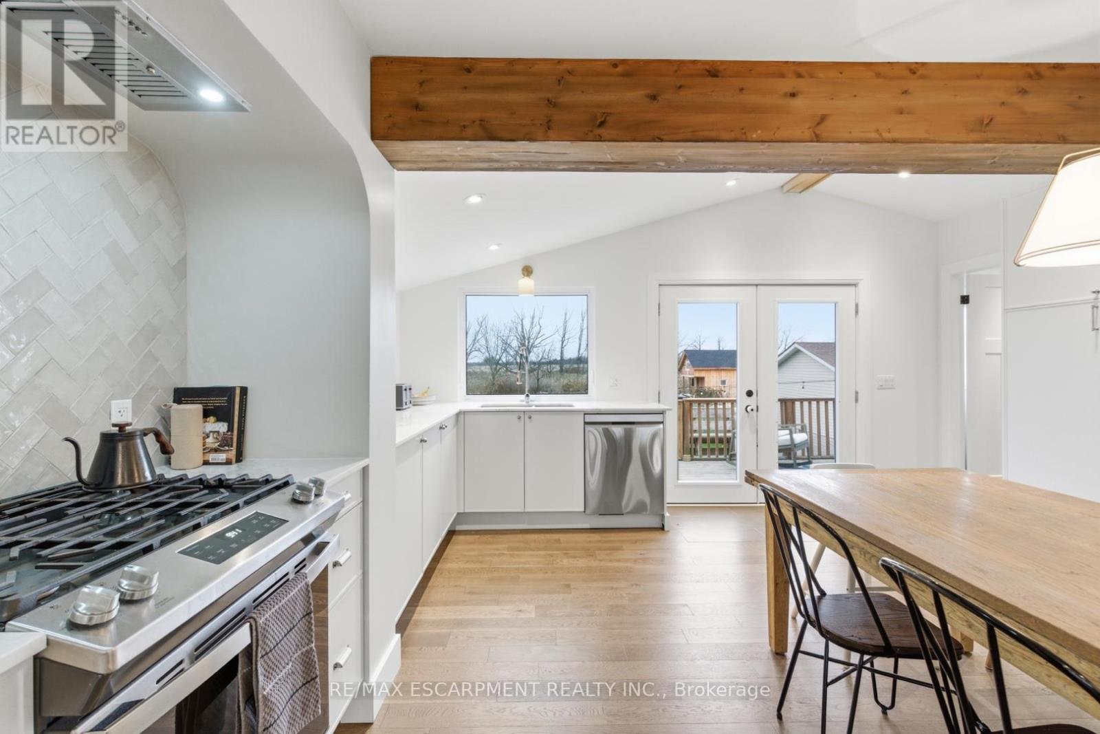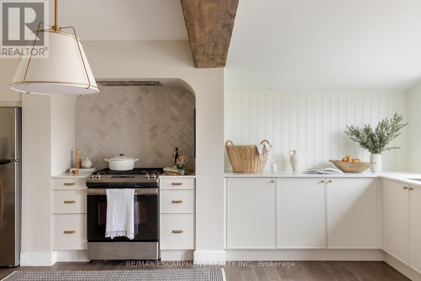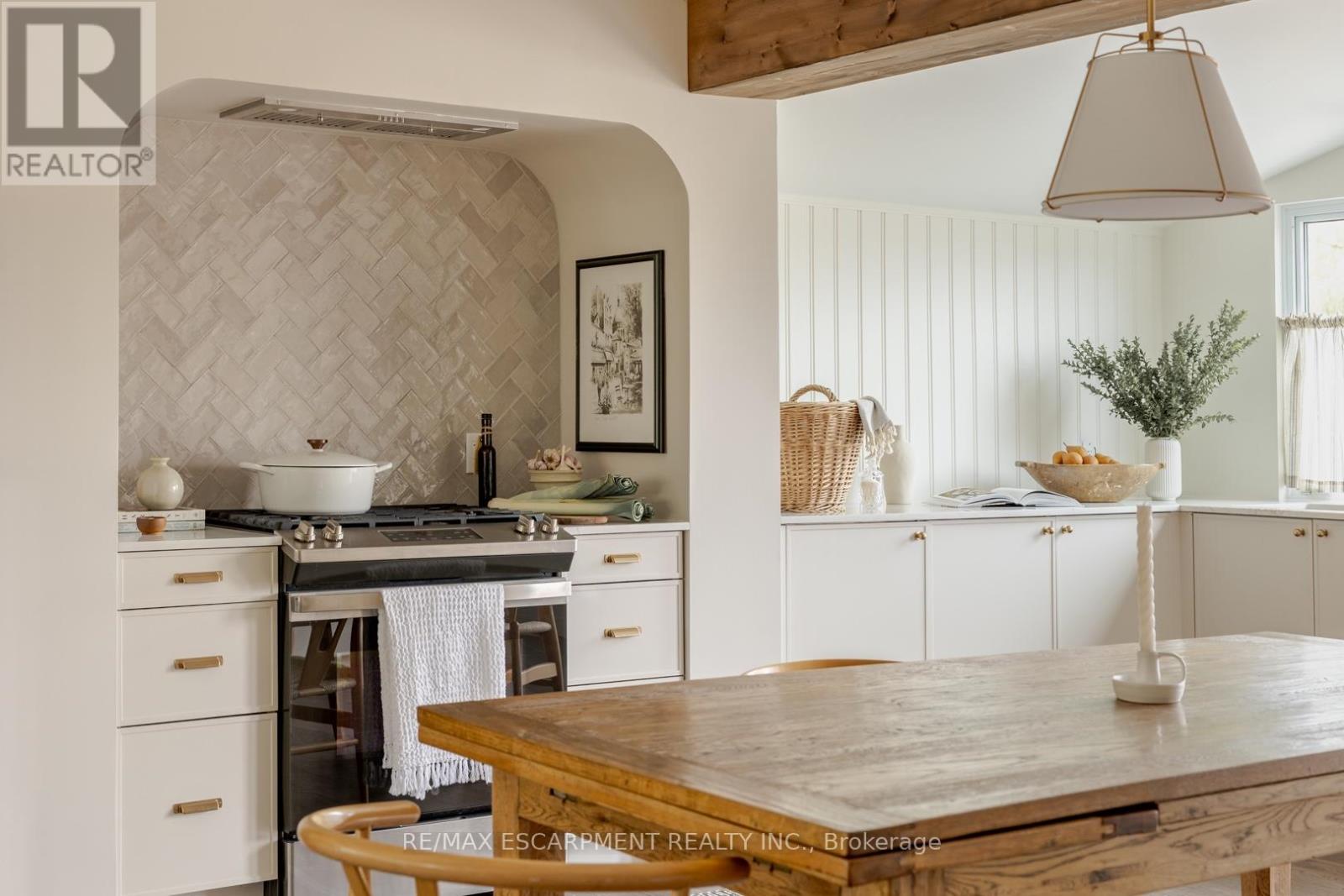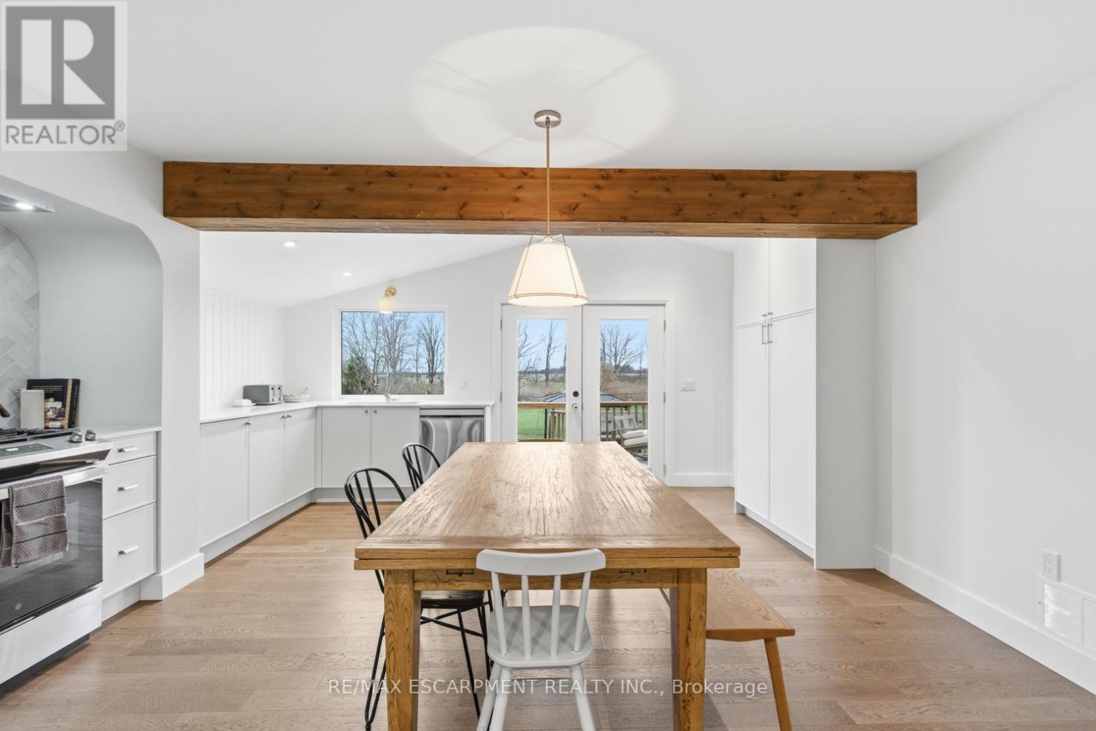 Incredible opportunity to own this rare two-family home set on a full one-acre property, just seconds from downtown Binbrook. Both units are fully above grade and feature completely separate front and rear entrances, offering versatility for multi-generational living or rental income. North Suite: Step inside to an updated kitchen equipped with built-in stainless-steel appliances, a butcher-block island, modern trim work and beautiful hickory engineered flooring. The bright living/dining area provides the perfect space for family gatherings and entertaining. The lower level features a renovated rec room with a cozy fireplace-ideal for movie nights. Upstairs are two bedrooms with excellent storage and an updated 5-piece bathroom. South Suite: The professionally designed kitchen showcases a warm, inviting aesthetic with a gas stove, stainless steel appliances and quartz countertops. Enjoy a spacious family room filled with natural light, two main-floor bedrooms and an updated full bathroom. A generous mudroom with separate laundry completes this level. A third bedroom is located in the finished basement. Outdoor Living: You'll love the stunning sunsets on summer nights. The expansive 1-acre yard offers everything you need-an on-ground pool, a 3-car garage/workshop, extensive vegetable gardens and a charming garden house with lots of potential. There is ample space for entertaining, relaxing and enjoying country living just moments from town. RSA. (id:4555)
