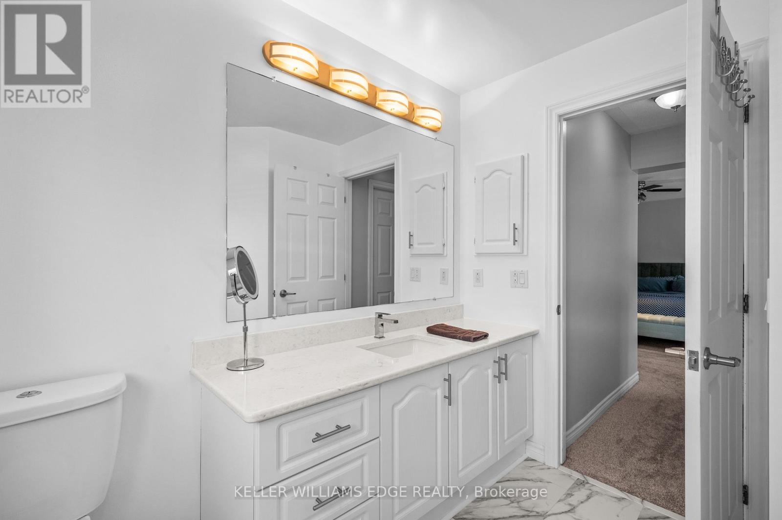 Welcome to this beautifully maintained 2 bed, 2.5 bath detached bungalow in a quiet rural 55+ community. Featuring brand new quartz countertops in the kitchen and upstairs bathrooms, new flooring in the kitchen and baths, new faucets, and newer appliances, hardwood flooring, this home is move-in ready. The functional layout includes a spacious living area, eat-in kitchen with plenty of cabinets, dining room, large primary bedroom with walk-in closet & 4pc ensuite and a fully finished basement with a large rec room, a den perfect for a workshop or hobby space, and ample storage. Recent upgrades include a newer furnace and a roof approx. 2 years old. The double car garage adds convenience and extra space. Enjoy a vibrant lifestyle with access to a community centre offering an in-ground pool, shuffleboard, billiards, craft room, library, and a full kitchen for events and gatherings. A perfect blend of comfort, updates, and community living awaits! Land lease: $950.00 Taxes: $224.09. Total due on the 1st of every month: $1174.09. (id:4555)
