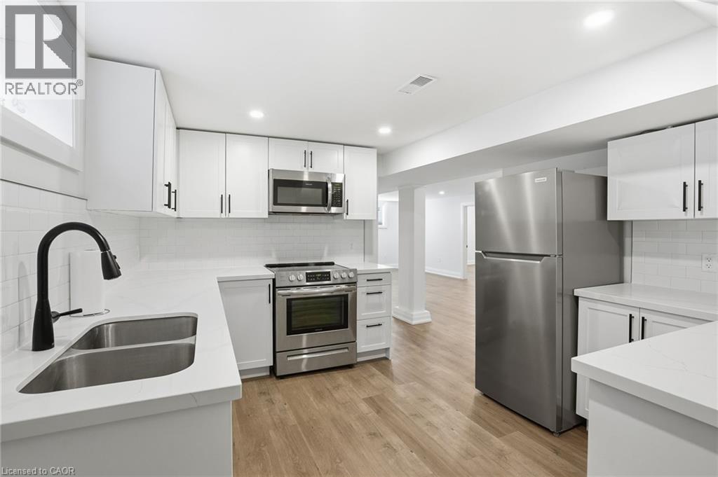 Welcome to this beautifully updated 2-bedroom, 1-bathroom lower-level unit, perfectly located on a large corner lot on the desirable West Hamilton Mountain! This spacious home offers a modern and inviting living space filled with natural light and stylish finishes throughout. Enjoy a thoughtfully designed layout featuring two generously sized bedrooms, ideal for small families, couples, or professionals seeking extra room to live and work comfortably. Step outside to your expansive private yard—perfect for entertaining, gardening, or simply relaxing in the fresh air. This move-in-ready home combines comfort, convenience and charm. Flat fee of $300/month covering all utilities Don’t miss this fantastic opportunity to make this your next home! February 1st possession available. (id:4555)