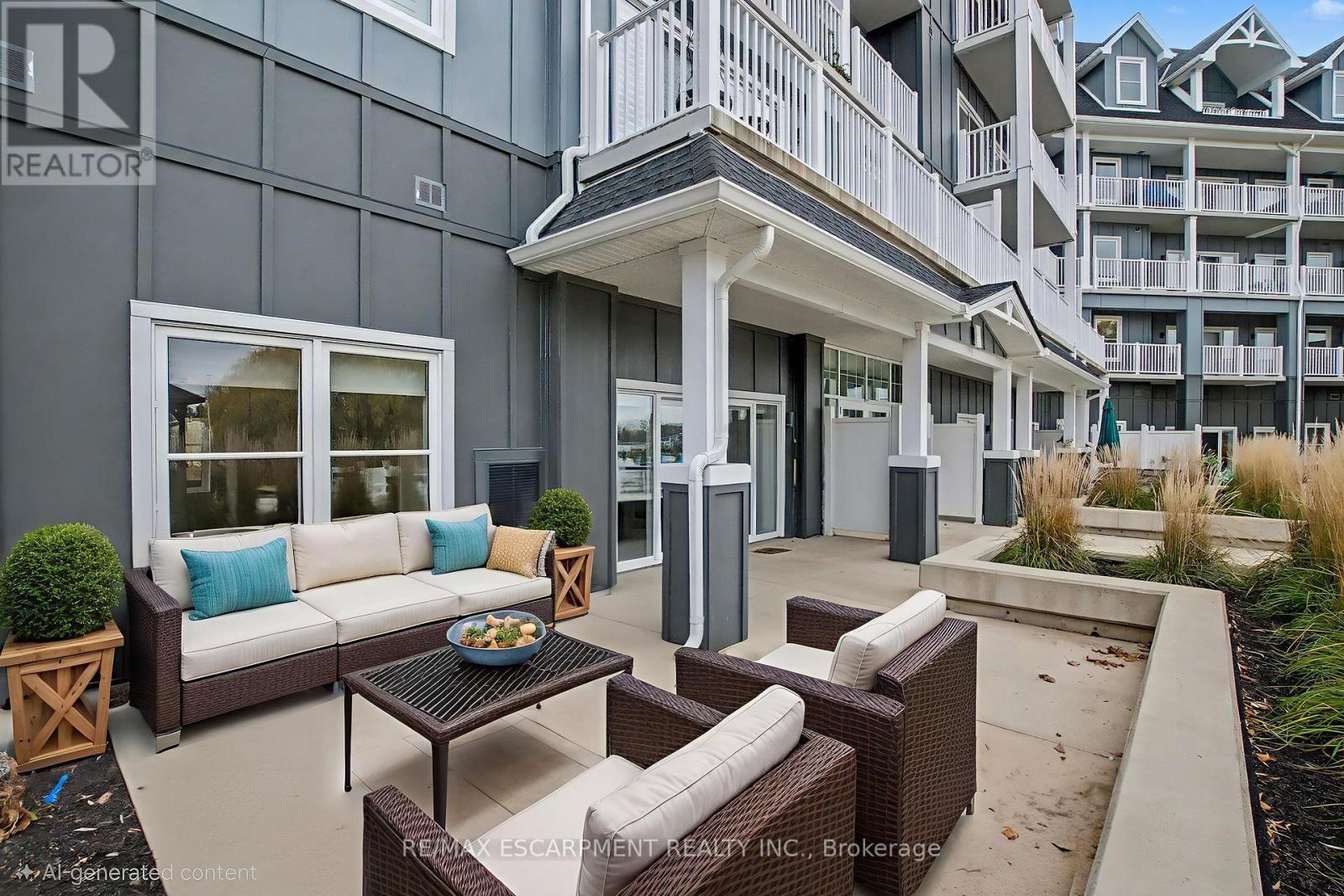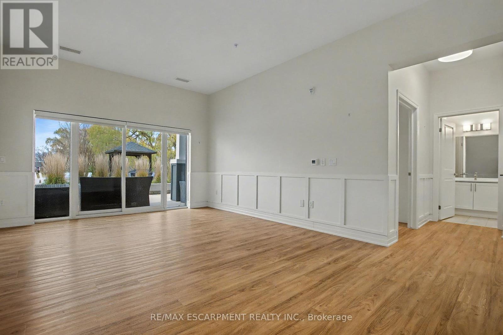 Welcome to the Upper Mill Pond apartments at St. Elizabeth Village, a gated 55+ community offering a vibrant lifestyle with modern conveniences. This home is one of the larger one bedroom layouts at 890 square feet and features open concept living with soaring 10 foot ceilings and luxury vinyl flooring throughout. The kitchen flows seamlessly into the spacious living and dining area and includes a peninsula with seating for casual meals or entertaining. The living space is bright and welcoming, with South-facing windows that fill the home with natural light all day. Step outside to the large 384 square foot private outdoor terrace, available exclusively to this unit, providing a rare opportunity for outdoor living and entertaining. The home has been tastefully updated with wainscoting throughout, a custom stone fireplace in the living room, and built-in cabinets in the bedroom for added storage. Additional conveniences include underground parking and a private storage locker. Residents of this building enjoy access to outstanding amenities including a heated indoor pool, gym, saunas, hot tub, and golf simulator. The Village also offers a wide range of services just steps away such as a doctors office, pharmacy, massage clinic, and public transportation. Within a five minute drive you will also find grocery stores, shopping, and restaurants. This home combines thoughtful updates, a unique outdoor terrace, and a welcoming community atmosphere, creating an exceptional opportunity to enjoy all that St. Elizabeth Village has to offer. (id:4555)