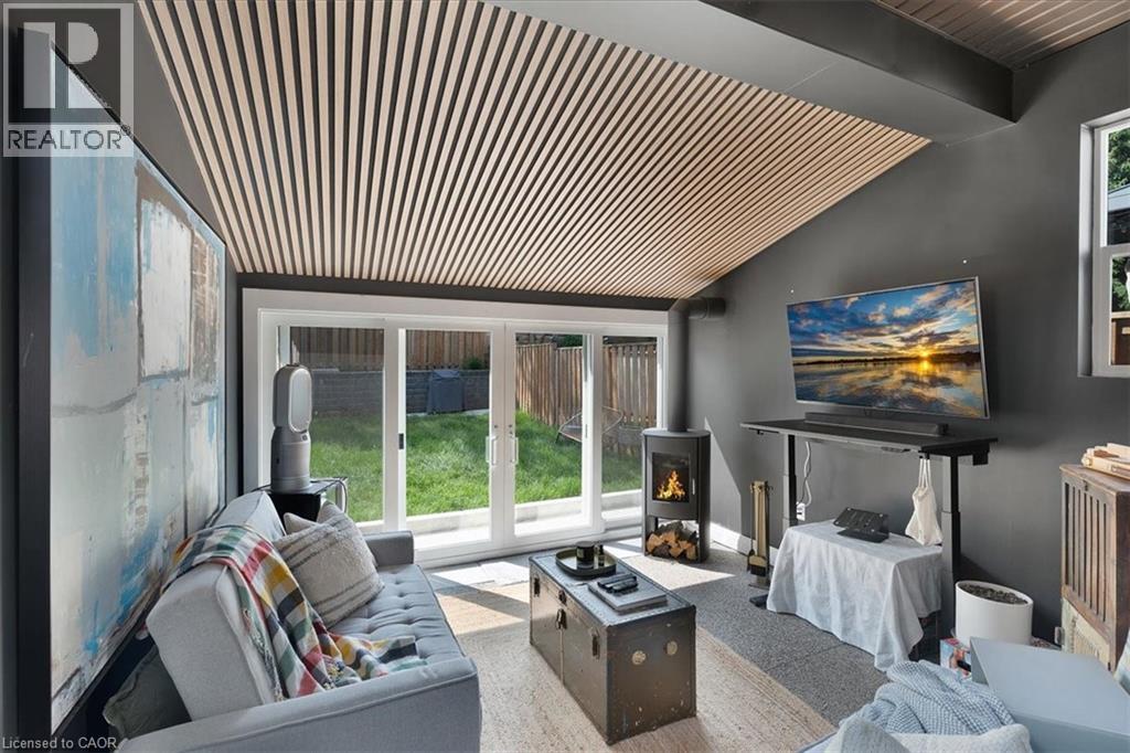 Welcome to 575 Mary Street, a stunningly unique property steps from the water’s edge in the north end of Hamilton, where a tight-knit family transformed a house into a home during the quiet of Covid lockdowns. Step inside this fully renovated gem, seamlessly blending modern comforts with warm, inviting spaces, all crafted by a talented Hamilton native and international artist. The artistic flair captivates, merging the natural light of the outdoors with glass, cement, and crisp whites throughout. At the heart of the home is a stunning kitchen featuring floor-to-ceiling cabinetry, a four-seater waterfall quartz island, and very likely the most interesting matching Italian porcelain flooring and backsplash combo you have ever seen. The front porch, drenched in light from two skylights, is perfect for sipping morning coffee while enjoying the sunrise. On the opposite side of the house, cozy evenings come alive by the newly installed wood-burning fireplace, which warms the all-season backyard patio designed for both entertaining and relaxing after a long day. This home also features an innovative and massive office space seamlessly integrated into the main bedroom, ideal for remote work or midnight inspiration. With HUE smart lights throughout, you can easily set the perfect mood for any occasion. In the last four years, recent upgrades include Neal installed roof coverings, a high-efficiency furnace, all new flooring, windows, all siding, main floor powder room, brand-new kitchen and laundry appliances. This means you can move in and enjoy modern living! With three spacious bedrooms plus an office, this home provides ample space for families, guests, or your creative pursuits. Plus, convenience is key with two included parking spaces and an upgraded fast-charging EV connection port already installed. Come fall in love with this art piece of a home. A space ready for some new dreamers and creative spirits! (id:4555)