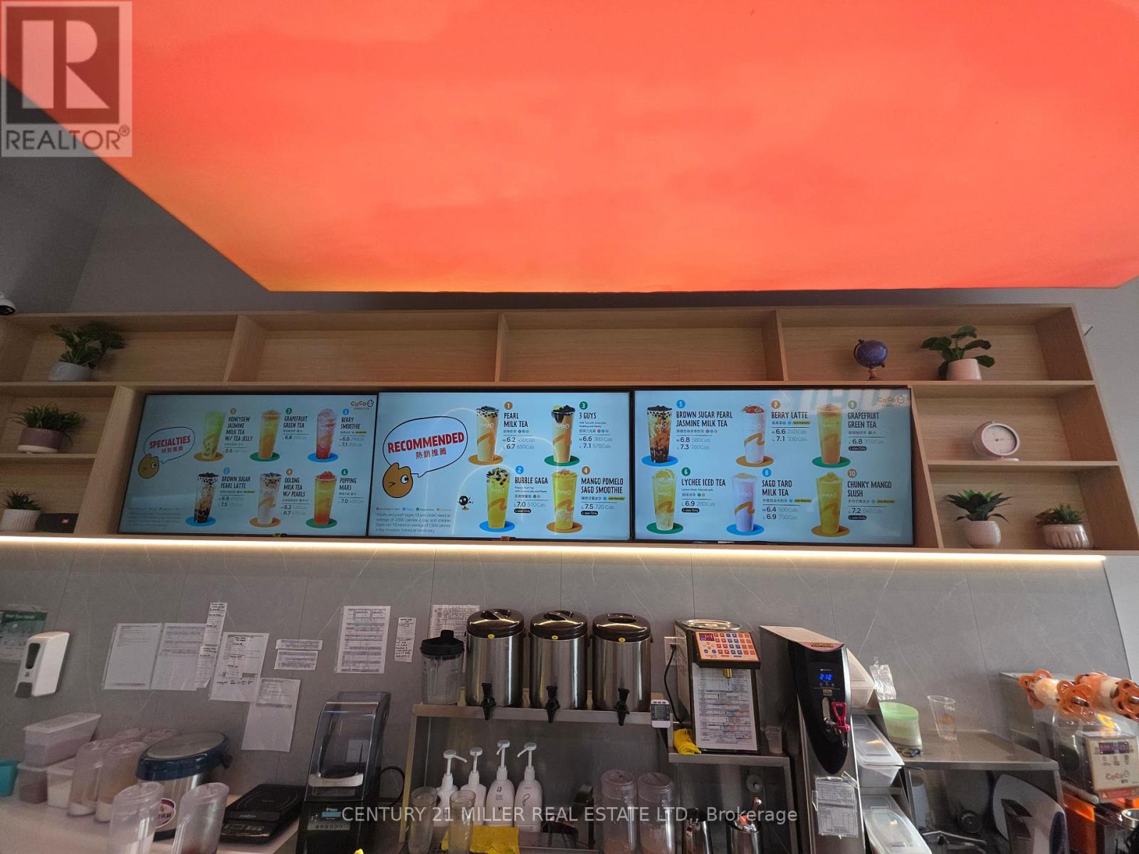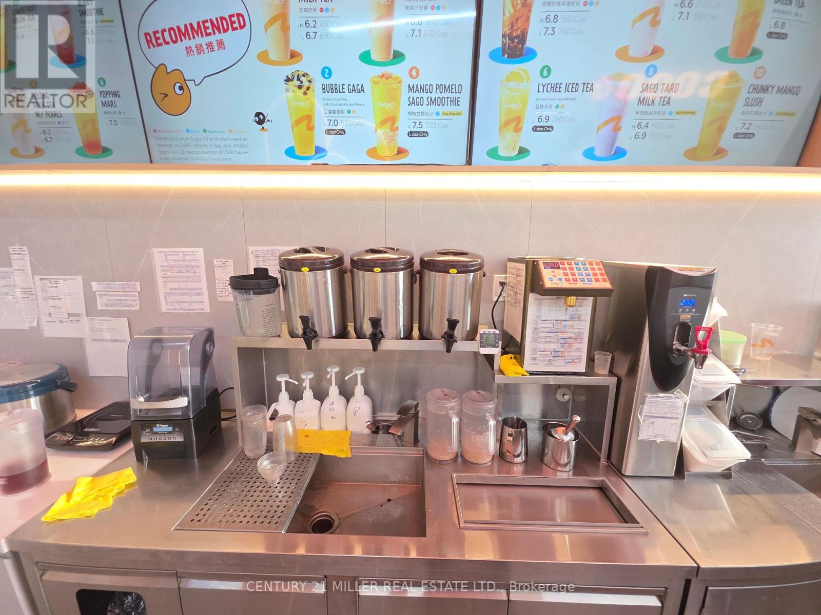 Buy a Bubble Franchise, Amazing Location!! Absolutely Profitable Business Opportunity At The Busiest Location. Turnkey Franchise Restaurant For Sale! Modern Restaurant With All New Appliances, Endless Opportunities To Grow The Business Further! CoCo Fresh Tea & Juice franchise is a massive global bubble tea brand, founded in Taiwan in 1997, with over 6,000 locations across Asia, Australia, North America (US/Canada), Europe, and Peru, offering comprehensive support for franchisees to tap into the booming beverage market with its proven system and popular drinks. Training Is Available For The New Owner! Long-Term lease available in a Busy Plaza. Fully Furnished With 20 Seats. Restaurant Re-Branded with Landlords Approval. 2 Washrooms + All Equipment Included. Rent, Tmi & Hst Is $6,212.52/ Month. *Great Signage & Exposure with front and back. (id:4555)