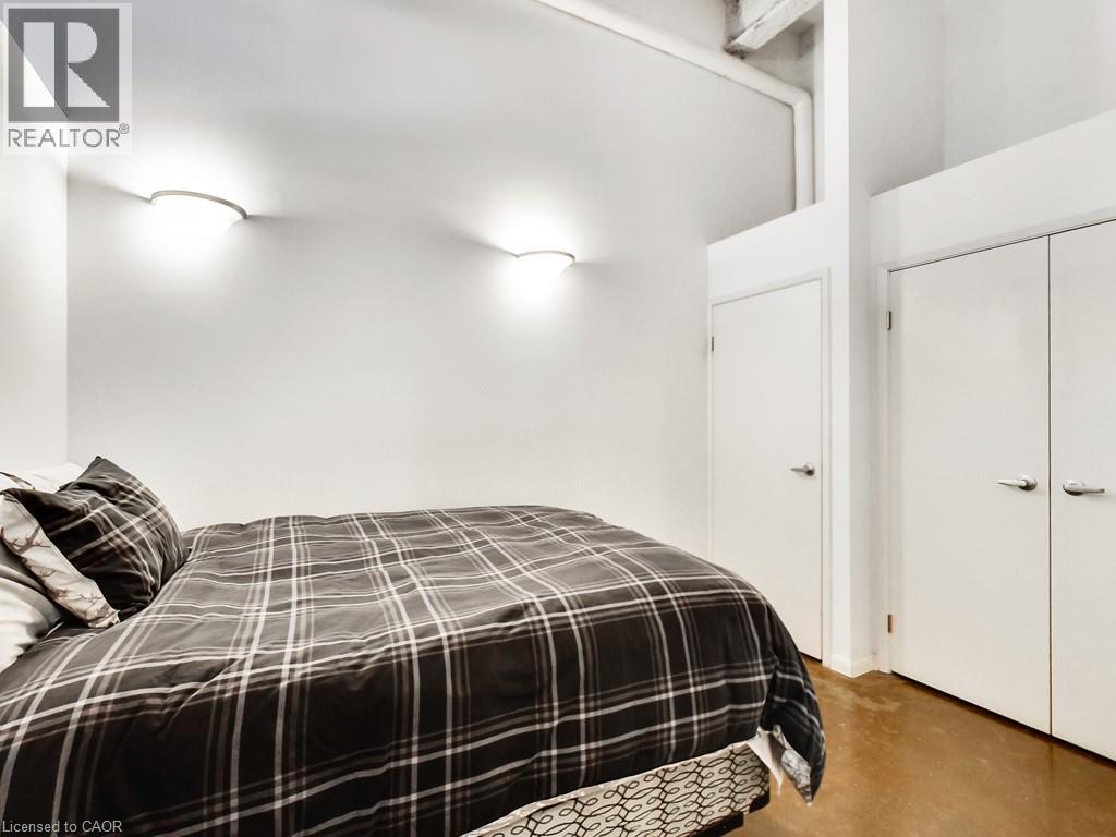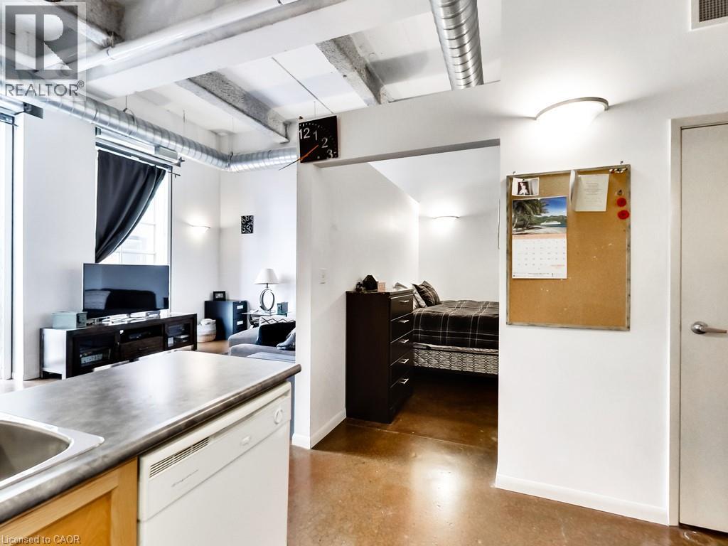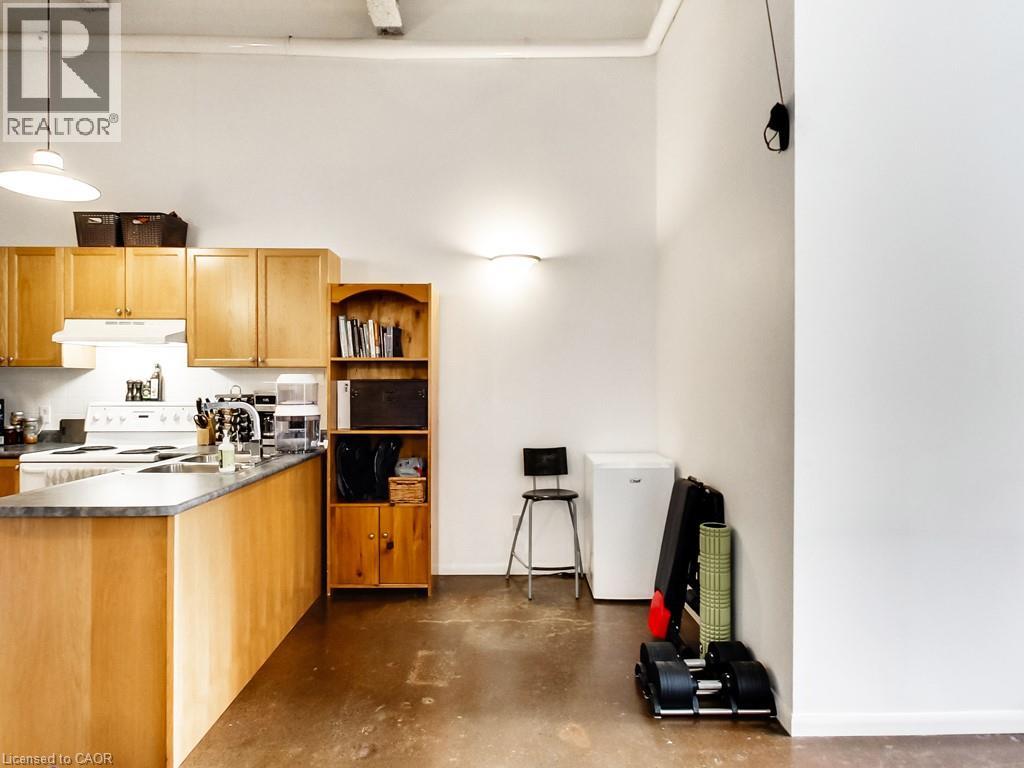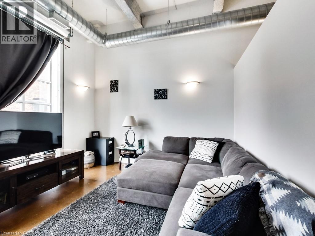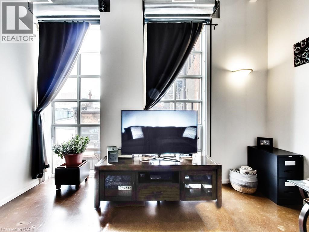 Discover executive urban living in one of Hamilton’s most sought-after boutique loft conversions. Perfectly situated in the heart of downtown, this stylish unit offers an unbeatable Walk Score of 99, placing you steps away from everything the city has to offer — HSR transit, Gore Park, Jackson Square, James St. N restaurants, cafés, and shops, plus an easy walk to both the Hunter GO Station and the new West Harbour GO Station. Augusta Street’s vibrant dining scene is also just minutes away. Inside, this impressive suite features soaring 14-foot ceilings, creating an expansive, airy atmosphere with endless possibilities — build a lofted second sitting area or even a second bedroom. Massive 10-foot windows flood the unit with natural light, highlighting the polished concrete floors, exposed ductwork, and industrial-chic finishes that define the Annex Lofts. The kitchen offers generous eat-in space with warm maple cabinetry, while the convenience of in-suite laundry, a dedicated locker, and access to an adjacent parking lot (current rented spot can be transferred) add to the ease of downtown living. The building also includes a party room. Ideal for young professionals, creatives, commuters, or investors, this unique loft-style condo combines modern character, unbeatable location, and exceptional lifestyle convenience in one dynamic package. (id:4555)