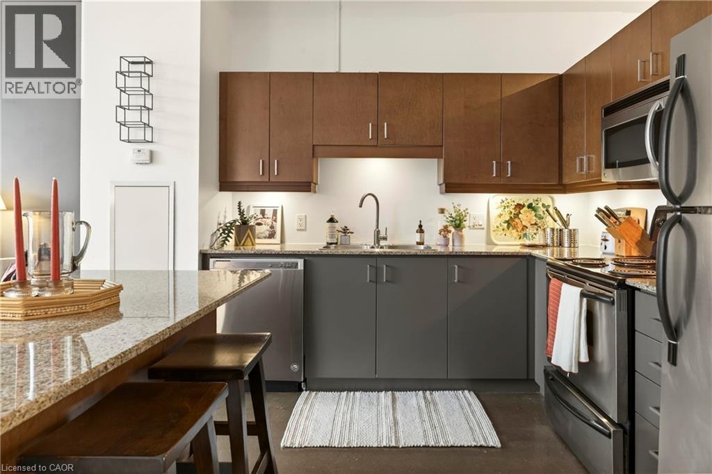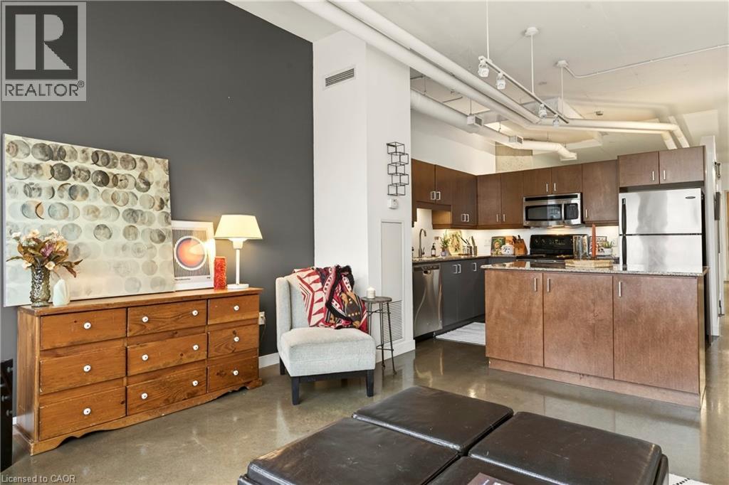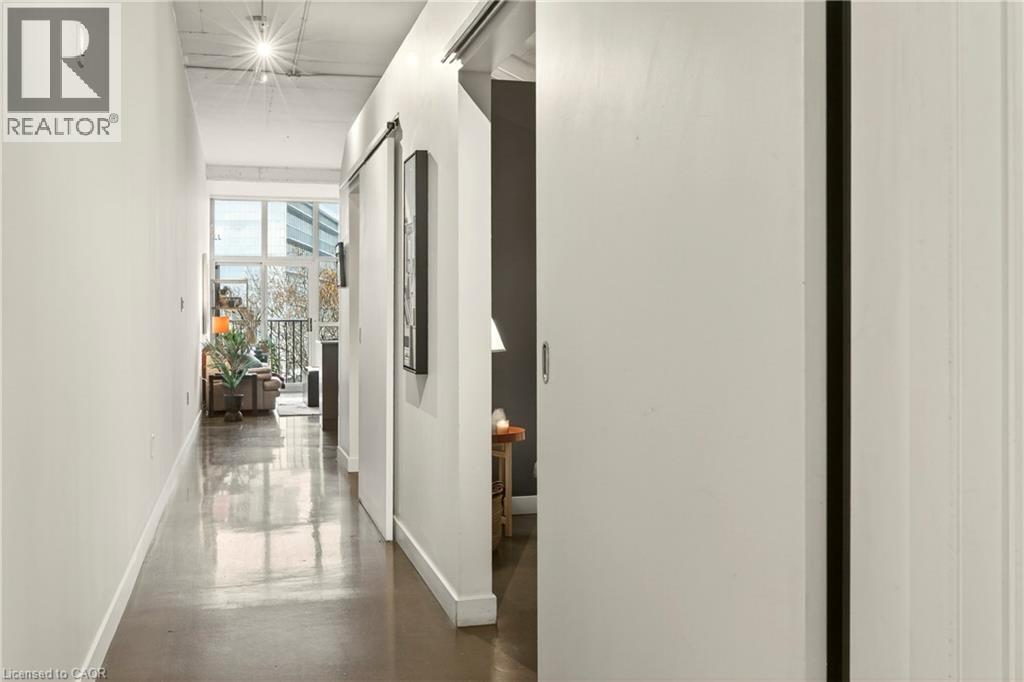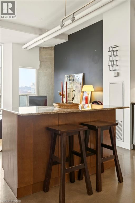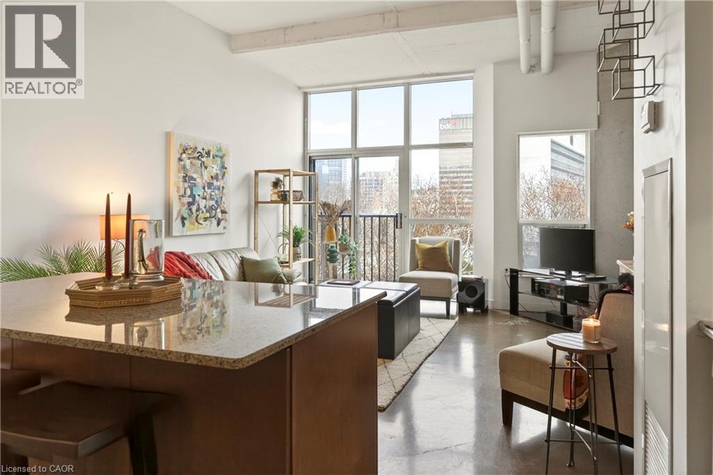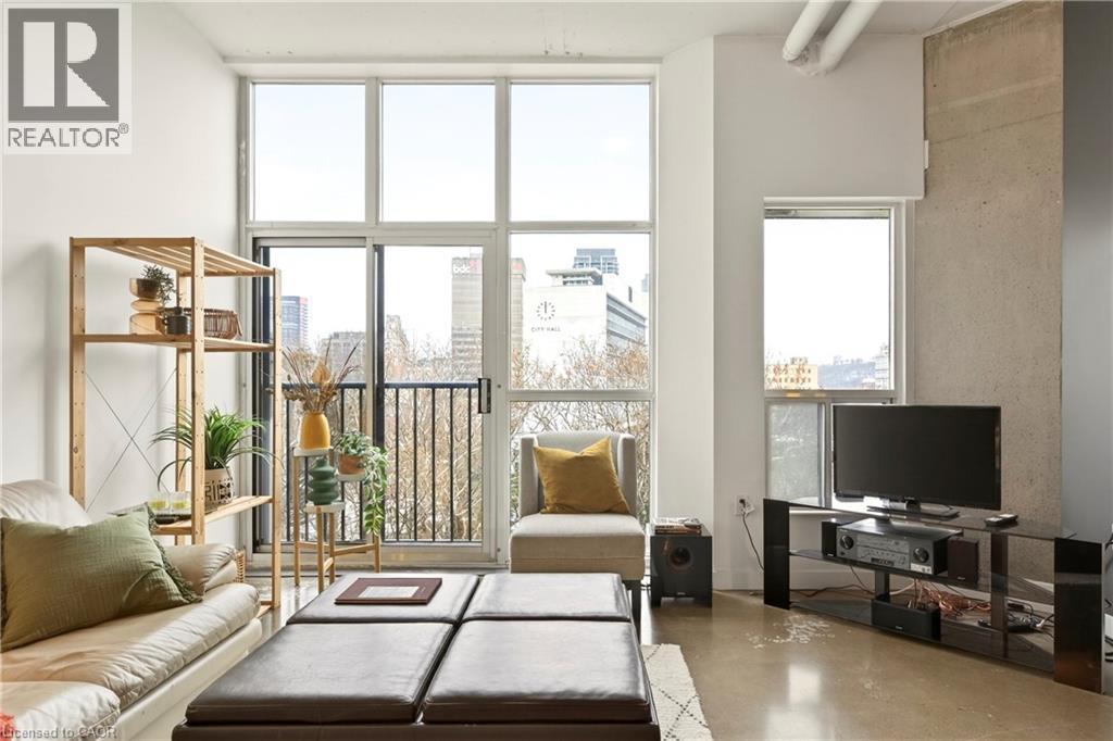 What do you want from an industrial style condo? Convenient downtown location, underground parking, concrete floors, 10'7 tall ceilings and open concept living. The Core Lofts at 66 Bay St S offer all of this and more. This 1 bedroom + den east facing unit, features a spacious main bedroom, with the option of a 2nd for guests, or feel free to use that space for your office, gaming area or library. The main living area is perfect for entertaining with granite counters, island and floor to ceiling windows looking out at some of the city's best modern architecture including the Stanley Roscoe designed City Hall, and the 70s modernist Stelco Tower by Arthur C.F. Lau. Building amenities include an exercise room, rooftop terrace and a party room. You have all the best of downtown at your fingertips, walking to the farmers market, shows at the new TD Coliseum, tons of fantastic restaurants and shops on Locke St, James N and South as well. (id:4555)