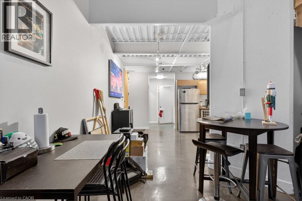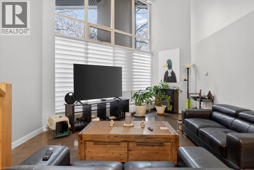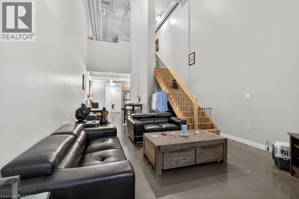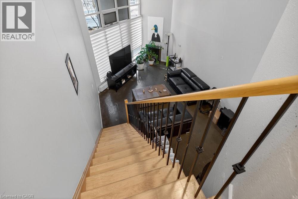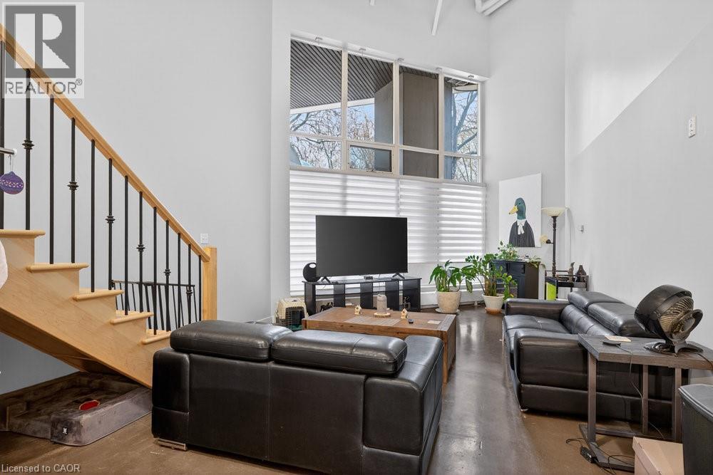 Step into this spacious two-storey loft located in the heart of downtown Hamilton. This luxury one-bedroom condo at the sought-after Core Lofts offers modern design and unbeatable convenience. Open-concept layout with soaring 20+ ft ceilings, polished concrete floors and floor-to-ceiling windows for abundant natural light. Primary bedroom on the second level with ensuite bath. In-suite laundry for added convenience. Parking (EV ready) and locker included. Building amenities include fitness centre, rooftop patio with BBQs, party room. Steps from restaurants, shopping, and transit. Close to GO train/bus station for easy commuting. Application, deposit, references, and proof of income required. Available Jan. 16, 2026. (id:4555)