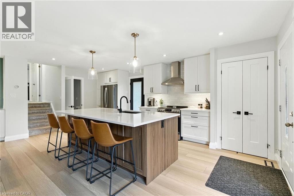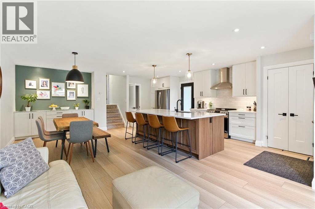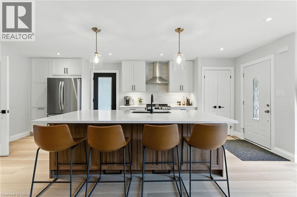 Step Inside 374 Magnolia Dr. Welcome to this stunning 4-level backsplit located on the highly desirable West Mountain in Hamilton! This beautifully upgraded home features a bright, open-concept main floor with gleaming luxury vinyl floors, a spacious living and dining area, and a custom-designed kitchen (2023) perfect for entertaining. Upstairs, you'll find three spacious, carpeted bedrooms and a tastefully updated 4-piecebathroom. The lower level offers even more space with a fourth bedroom, a second stunning bathroom, and a gorgeous rec room highlighted by exposed wood accents and a charming wood-burning fireplace. A walk-up separate entrance leads to the expansive backyard, complete with a large concrete patio and retaining wall (2022) — ideal for outdoor gatherings. The basement level includes a generous storage room and a separate laundry area with plenty of space and potential. This home checks all the boxes — comfort, style, and functionality in a fantastic family-friendly neighborhood. Don't miss your chance to make it yours! (id:4555)