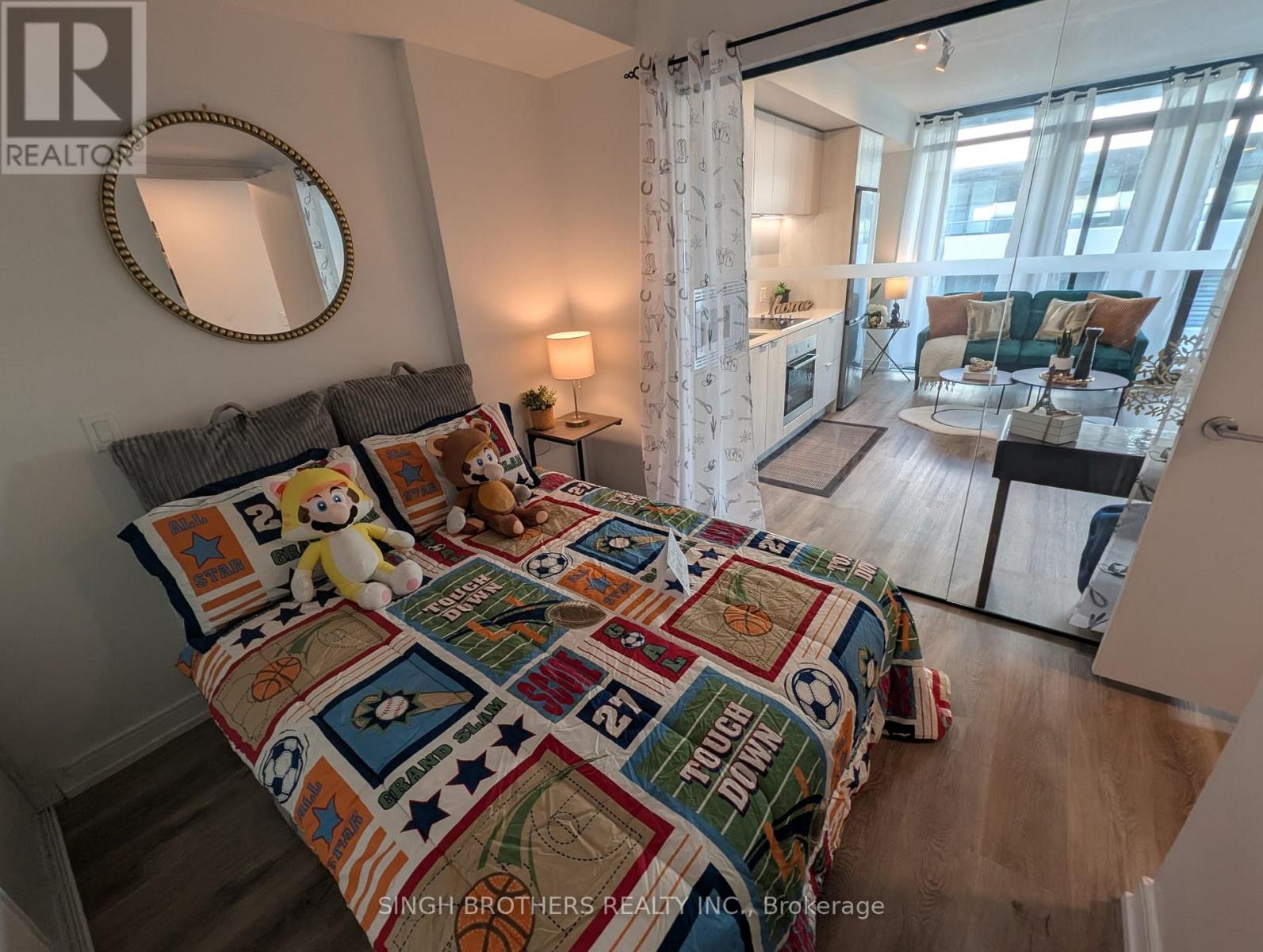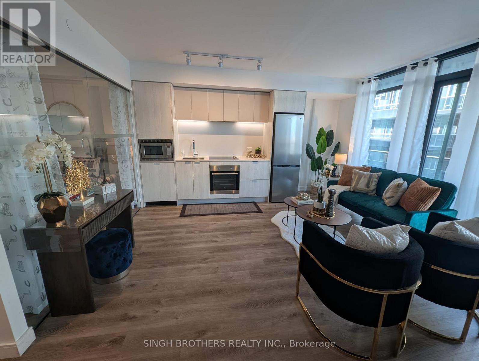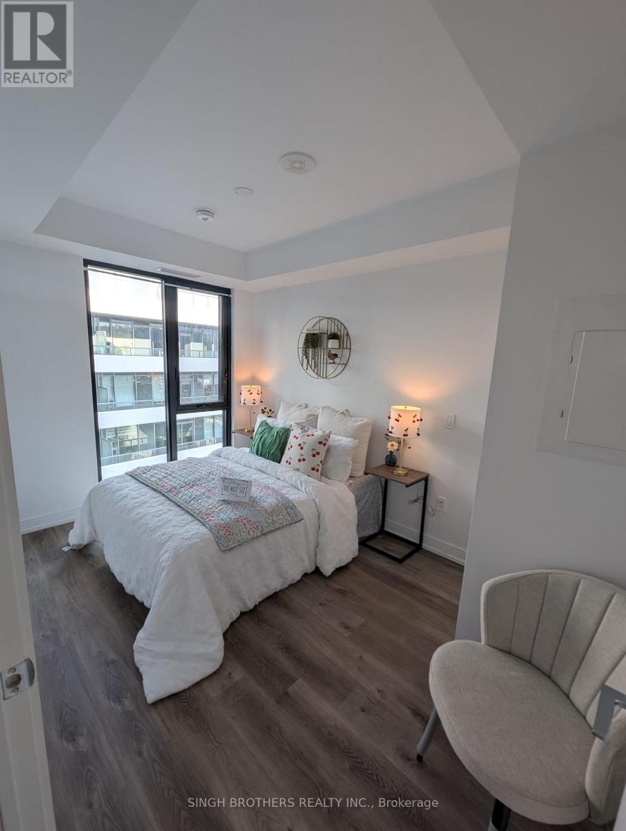 **Entertain yourself in style** with two bedrooms and one full bath. Featuring laminate flooring throughout, a contemporary kitchen boasting quartz countertops, and stainless-steel built-in appliances. The living area, bathed in natural light from floor-to-ceiling windows, seamlessly extends to the private terrace. The master bedroom is a serene retreat looking out to the terrace through the large window that invites in abundant natural light. The modern ensuite features custom cabinetry, quartz counters, and a designer vanity. The second bedroom also features a large floor-to-ceiling window. (id:4555)