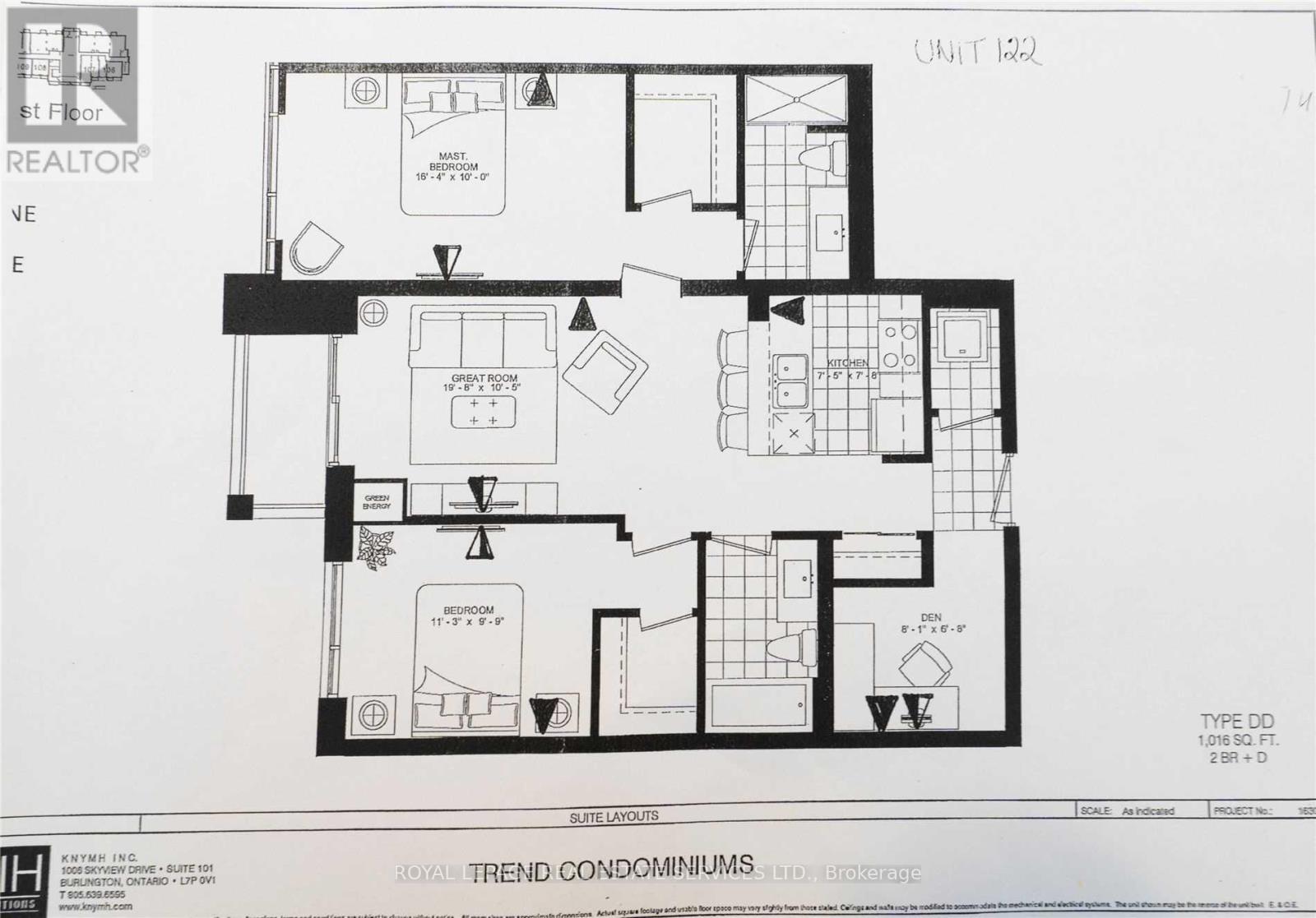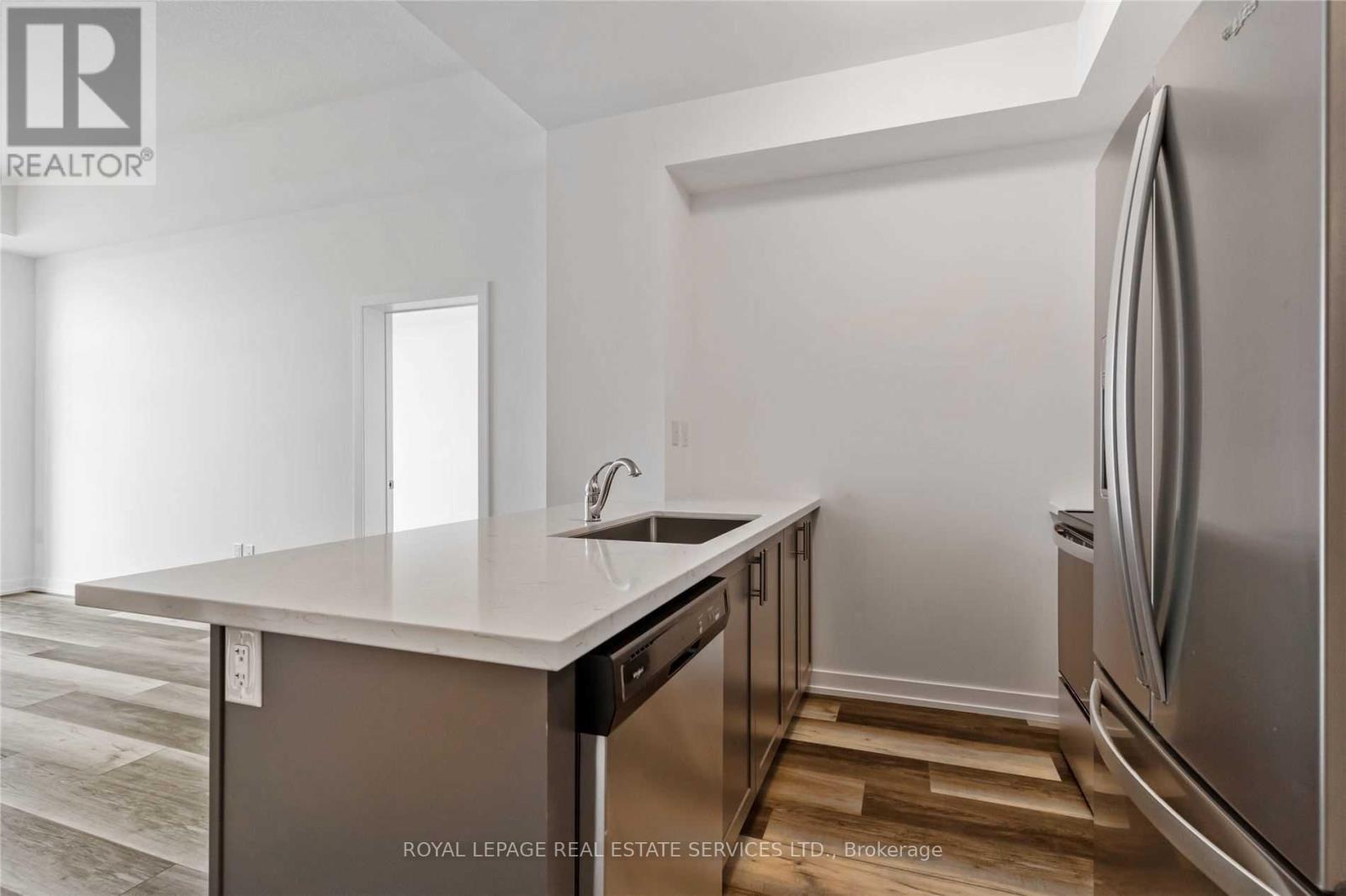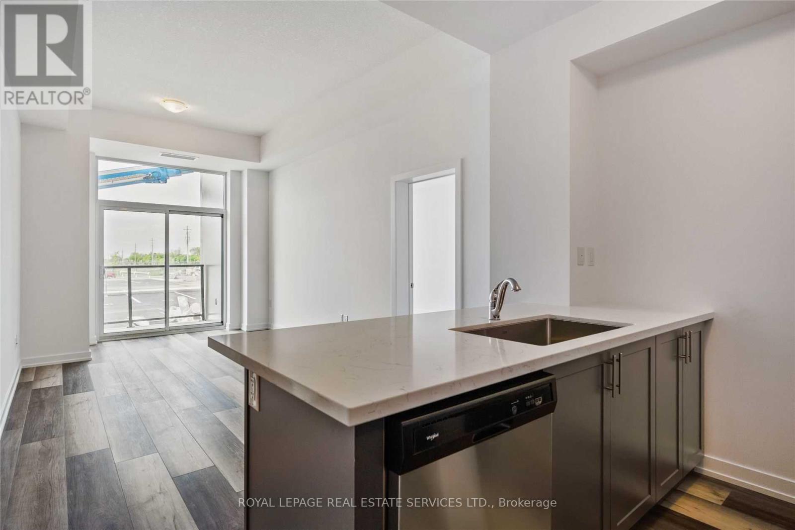 In desirable Waterdown East! This 1016 sqft, 2 beds + den, 2 baths has been tastefully upgraded. Main floor unit offers open concept living with 10 ft ceilings, hard surface flooring throughout, and in-suite laundry. Kitchen has stainless steel appliances, quartz countertops, and a large island. Spacious primary bedroom with floor-to-ceiling windows, 4-piece ensuite, and a walk-in closet. Second bedroom also has floor-to-ceiling windows with a walk-in closet. Enjoy all of the fabulous amenities that this building has to offer, including party rooms, modern fitness facilities, rooftop patios, and bike storage. Property is conveniently located minutes away from Hwy 403 & Hwy 407, Aldershot GO Station, and many other amenities. Two underground parking spots and one locker included. (id:4555)