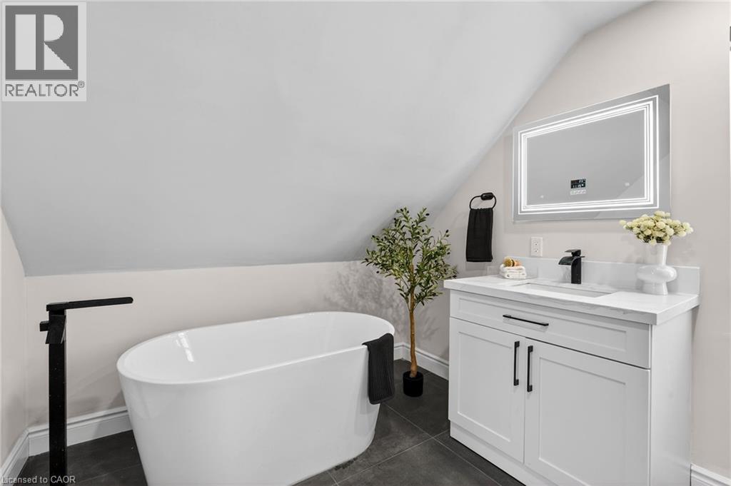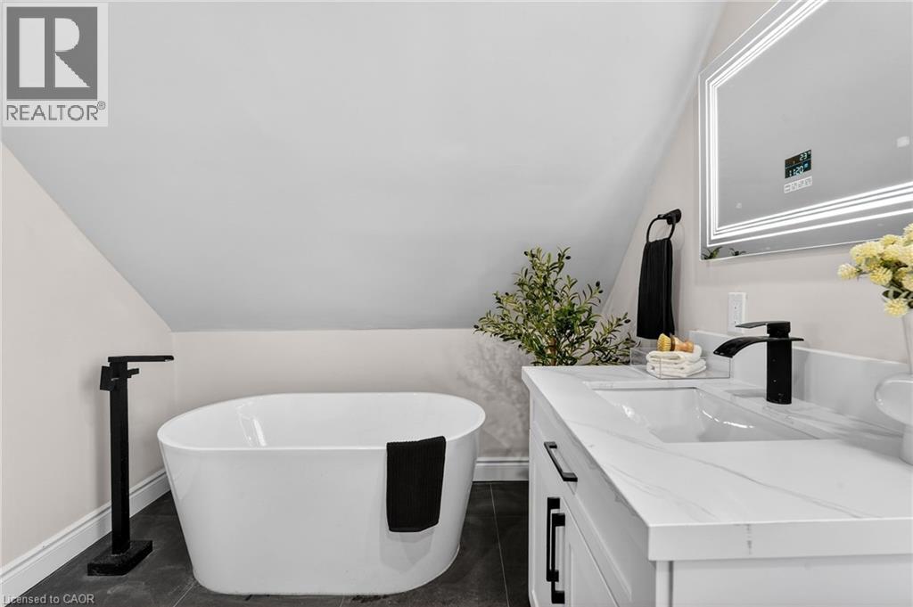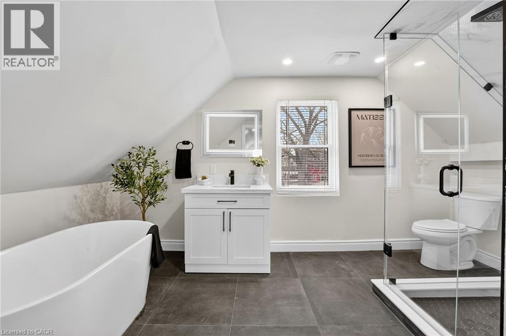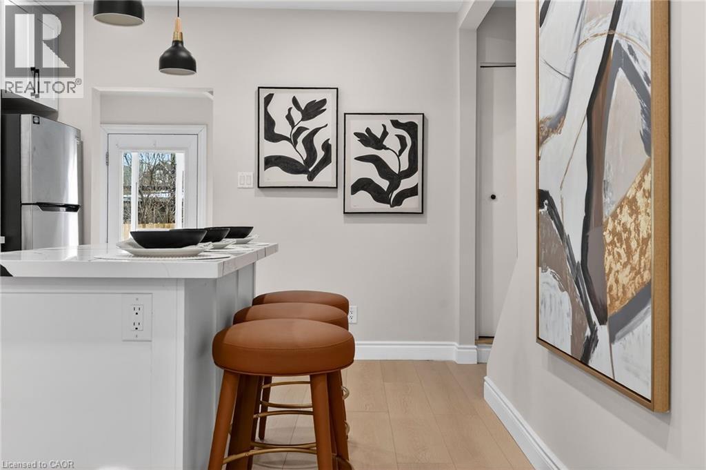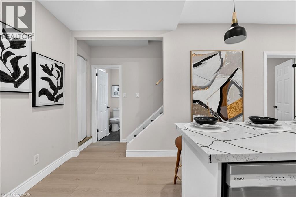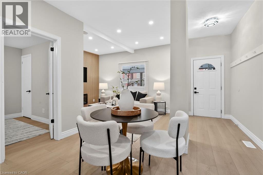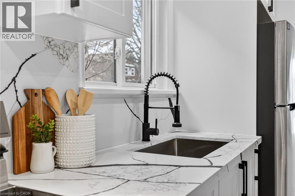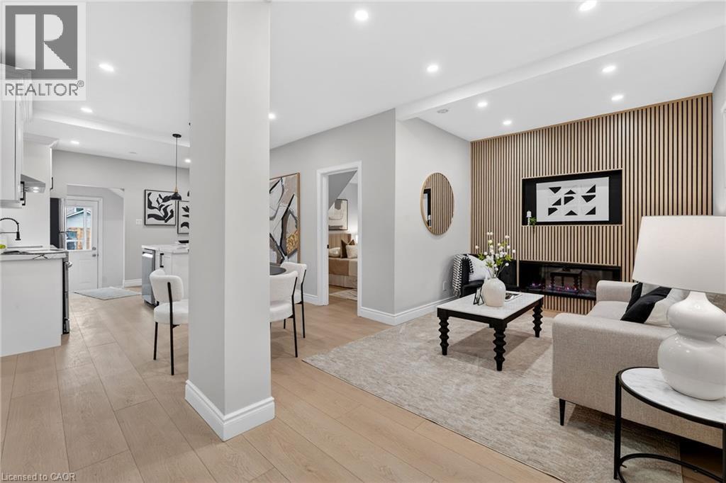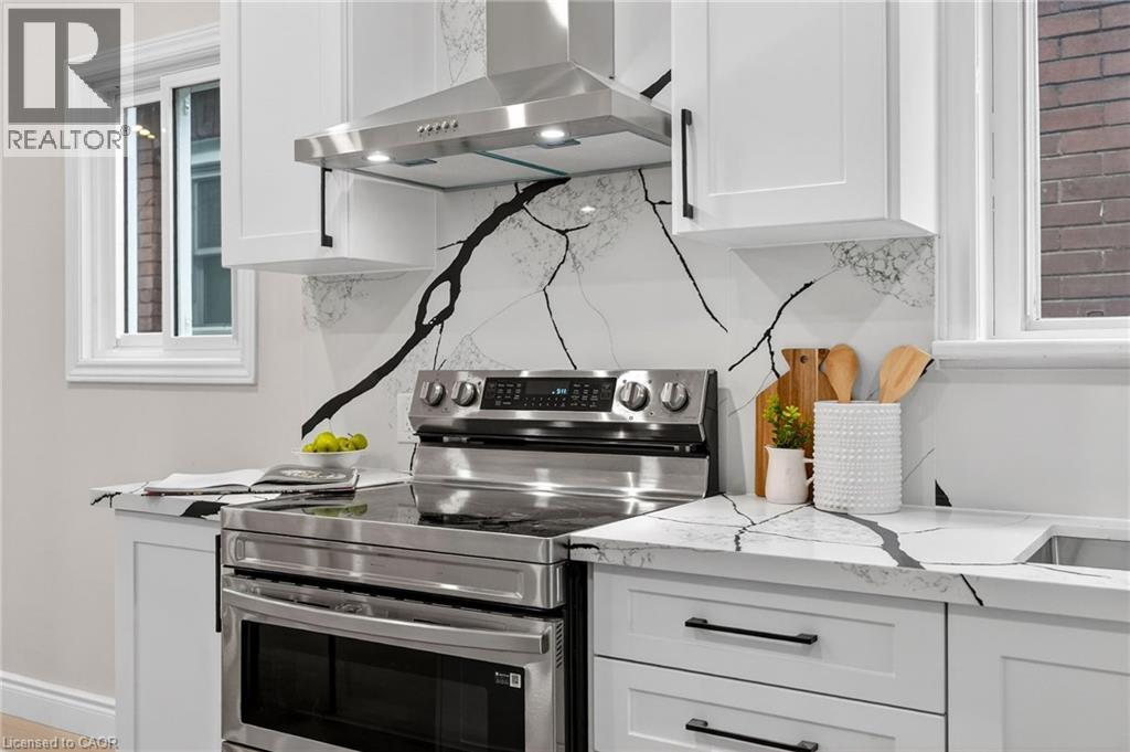 Welcome to 201 Grosvenor Avenue, where modern design meets community charm in one of Hamilton's coolest neighbourhoods-Crown Point. This beautifully updated 2+1 bedroom, 2 bathroom home is the perfect blend of style, comfort, and functionality, ready to create years of great memories.Step inside and you're immediately greeted by soaring ceilings and a bright, cozy living space featuring a statement feature wall and electric fireplace, all anchored by an oversized window that looks out onto your private deck-ideal for both relaxing evenings and lively gatherings.The open-concept designer kitchen flows seamlessly from the living area, making it perfect for entertaining and everyday family life. Finished with stainless steel appliances, modern cabinetry, and plenty of prep space, this kitchen truly sits at the heart of the home. The main level also offers a versatile bedroom-ideal as a home office or guest room-along with oversized laminate flooring and a full bathroom complete with a glass-enclosed standing shower.Upstairs, retreat to your private primary suite, featuring an oversized bedroom, a custom built-in his-and-hers closet, and a spa-inspired ensuite with a four-piece bath, standing shower, tub, and a window overlooking the backyard.Outside, the home continues to impress with an oversized poured concrete patio and a generous backyard designed for entertaining. Enjoy the built-in bar setup, TV inserts, and a shed for extra storage-perfect for hosting friends, family, and game nights.Additional highlights include two parking spaces and a prime location just minutes from Ottawa Street, known for its vibrant shops, cafés, and community atmosphere.This is modern Crown Point living at its best-move in, unpack, and enjoy. (id:4555)