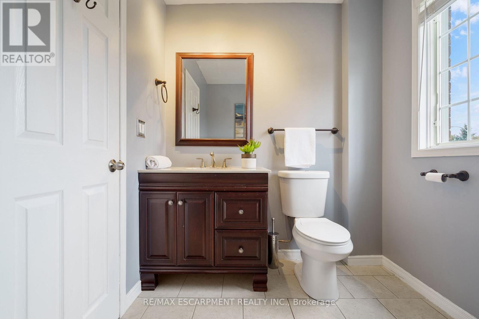 This beautifully maintained 3-bedroom, 3-bathroom freehold NO MAINTENANCE FEES townhome is located in highly sought-after Lower Stoney Creek and offers a rare double-car garage with inside entry, garage door opener, and double driveway. Inside, you'll find a bright open-concept living and dining area that flows into the updated kitchen, complete with a large breakfast bar-perfect for family time and entertaining. The main floor features newer laminate flooring, and the dining room opens through sliding doors to a lovely two-tier deck with a gas BBQ hookup and a fully fenced backyard. Upstairs, there are two bedrooms plus a full main bath, along with a private principal suite on its own level, featuring a 2-piece ensuite and two large closets. The additional bedrooms also offer generous closet space. The finished lower level provides even more living space with a spacious family room, plenty of storage, and a convenient 3-piece bathroom with a separate shower. The home has been freshly painted, and the exterior showcases well-kept landscaping-making it completely move-in ready. All of this in a quiet, family-friendly location, close to schools, parks, shopping, churches, and with easy access to the highway. Property is virtually staged. (id:4555)