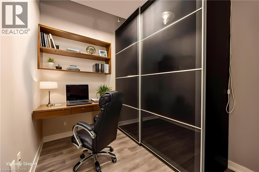 Fantastic 1 bed + den unit offering floor to ceiling windows, granite counters, LG Stainless steel appliances, pendant lighting, Laminate flooring (carpet free), neutral decor. The den offers a large wardrobe for storage and still has space for an office set up. This unit offers 1 underground parking space and 1 locker. In-suite laundry. This stylish condo offers a media room, gym and indoor bicycle parking. Condo fees include building insurance, maintenance, heat, cooling & water. This unit sits in the desirable Durand neighbourhood you'll be within walking distance of St. Joseph's Hospital, parks, trails, Locke St S, Corktown, downtown, public transit, the Go train, coffee shops. This is a very walkable neighbourhood with some of Hamilton's finest historic homes just south of the street. Perfect for a professional, first time buyer, investor or downsizer looking for easy living! Available immediately. (id:4555)