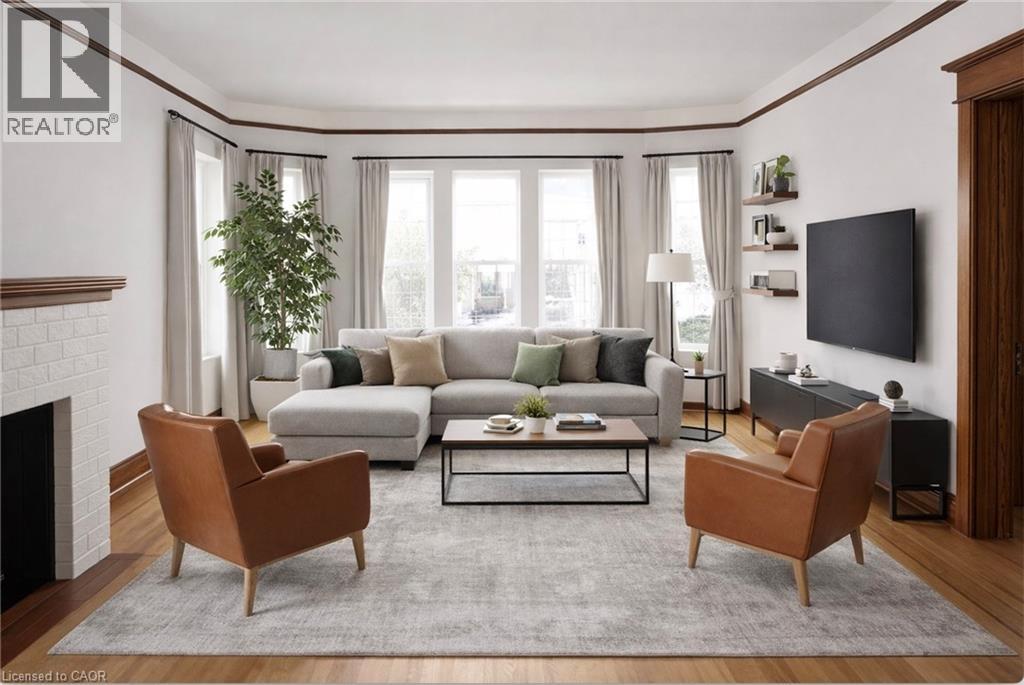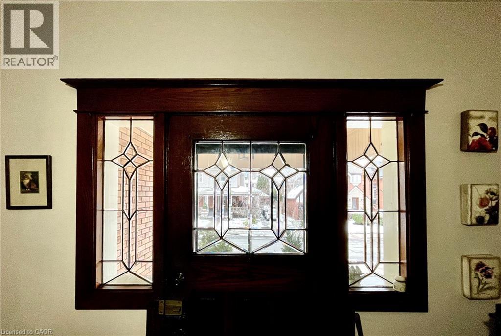 Situated in SW Hamilton’s sought-after neighbourhood, this charming 2.5-storey century home sits on one of the area’s largest lots and is rich in character. A beautiful beveled-glass entry door opens into a spacious foyer. Through a glass pocket door, the large sun-filled living room features wall-to-wall windows and original stained-glass details that preserve the home’s historic appeal. Etched glass double pocket doors lead to a bright dining room, with an additional stained-glass window (behind the cabinet). The newly renovated kitchen offers SS appliances and direct access to a back patio and yard. Upstairs, the primary bedroom includes a walkthrough to a second room with an exterior door & small balcony, ideal as a dressing room, nursery, or office. The 2nd floor bathrooms could be reconfigured to a single large bathroom. A full staircase to the high & dry unfinished attic, offering potential for additional living space. Plumbing/Electrical August 2020 & September 2024.Furnace & AC Condenser September 2018 New windows throughout, and a newly added lower-level bathroom with heated floors, a large shower, and a laundry area. Parking is plentiful with two driveways, an attached garage, and ample street parking. The fully fenced, massive backyard offers outstanding potential—whether for a pool, a secondary building, or expansive gardens—thanks to convenient access from the second driveway. Steps to parks, trails, Locke St shops & restaurants, schools, and easy highway access, the location is unbeatable! (id:4555)