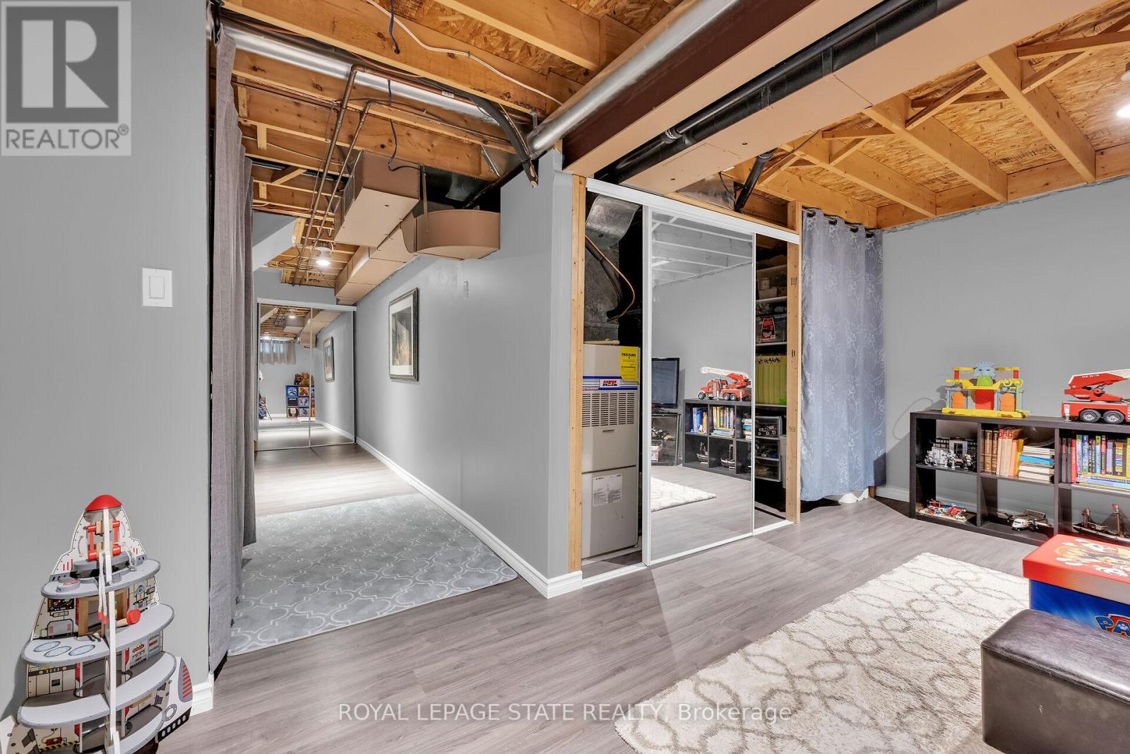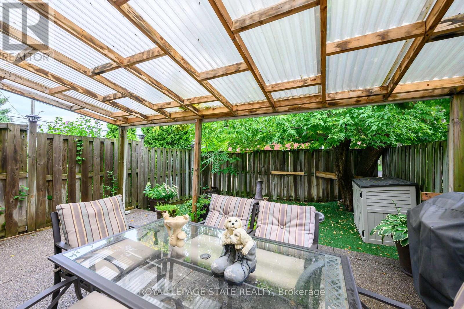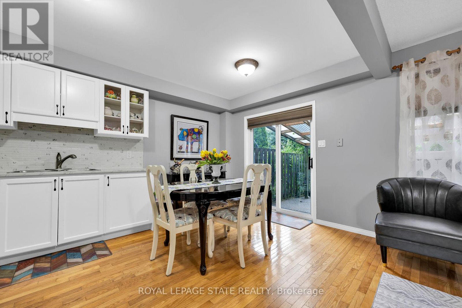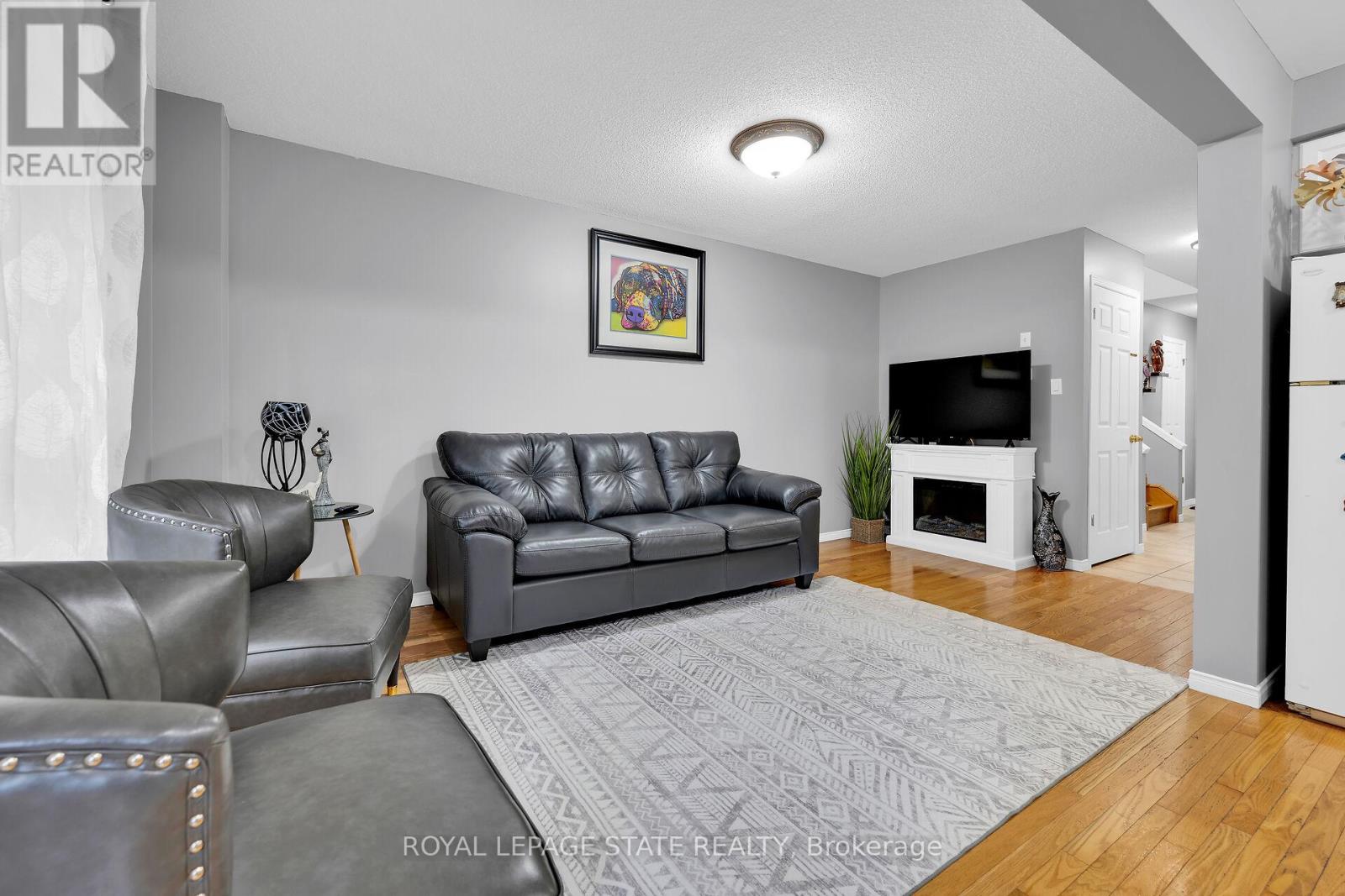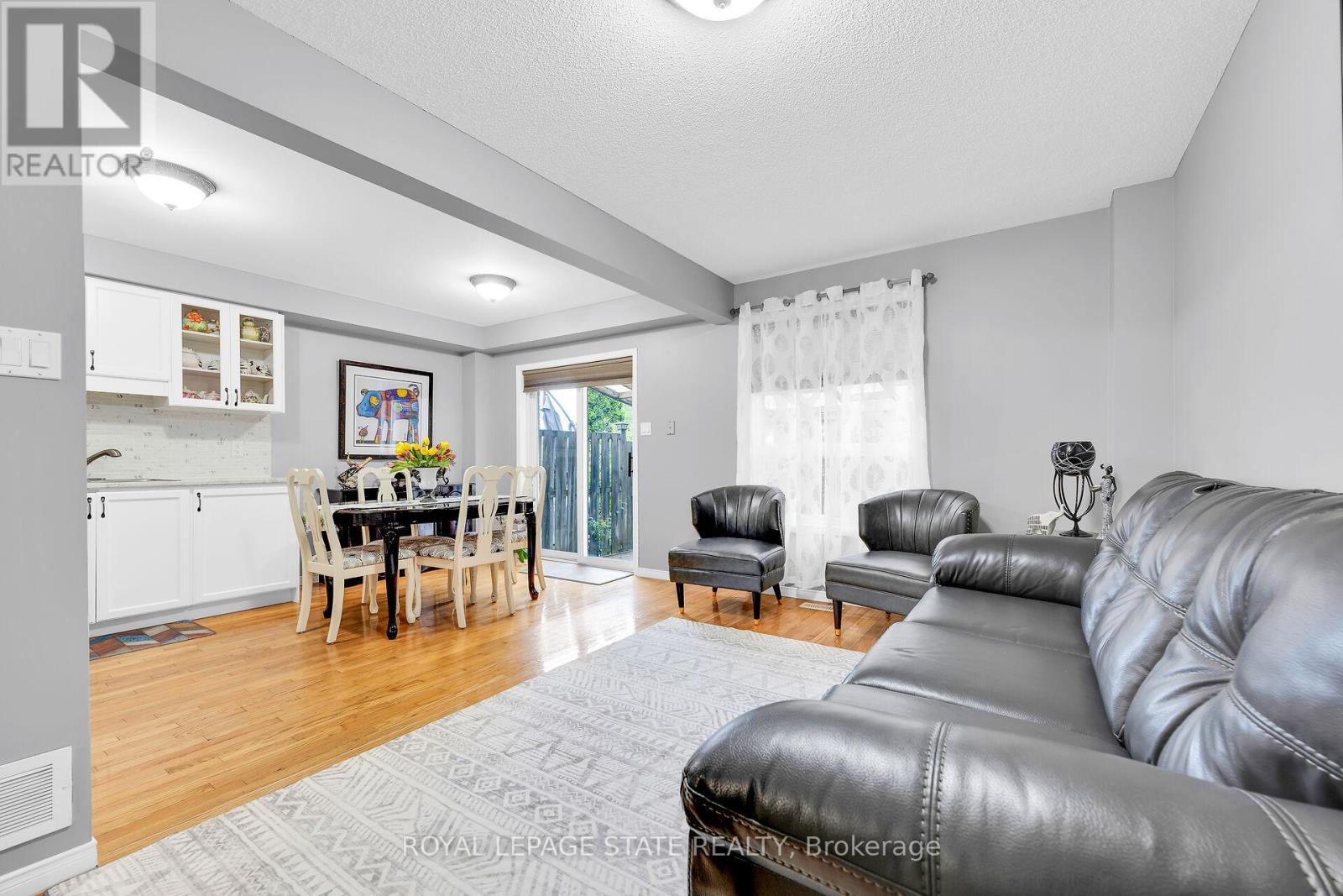 Welcome to 5 Vulcan Court, Stoney Creek, a beautifully maintained freehold townhome with NO condo fees, nestled on a quiet court in a prime location close to all amenities.This move-in ready gem offers a blend of comfort, functionality, and pride of ownership throughout. Step inside to discover a warm and inviting open-concept layout featuring a spacious living and dining area with gleaming hardwood floors and an abundance of natural light. The oak staircase and absence of carpeting throughout the home provide both elegance and ease of maintenance. The kitchen is open and functional, perfect for everyday living and entertaining. Upstairs, you'll find generously sized bedroom ideal for families, guests, or a home office setup. The finished basement offers additional living space perfect for a rec room, gym, or home theatre. Step outside to your private backyard oasis, complete with a beautiful aggregate concrete patio and driveway, creating a clean and upscale exterior. The large lot offers plenty of space for outdoor entertaining, gardening, or simply relaxing in privacy. Additional features include a single-car garage with interior access, central location just 5 minutes from the lake, and convenient access to the QEW, schools, parks, shopping, and public transit. Don't miss your opportunity to own this stunning townhome that truly shows pride of ownership. Whether you're a first-time buyer, investor, or downsizer, 5 Vulcan Crt has everything you've been looking for and more. (id:4555)