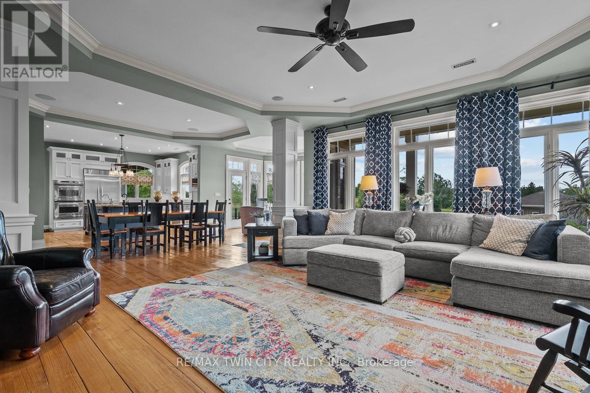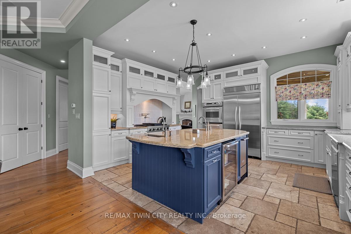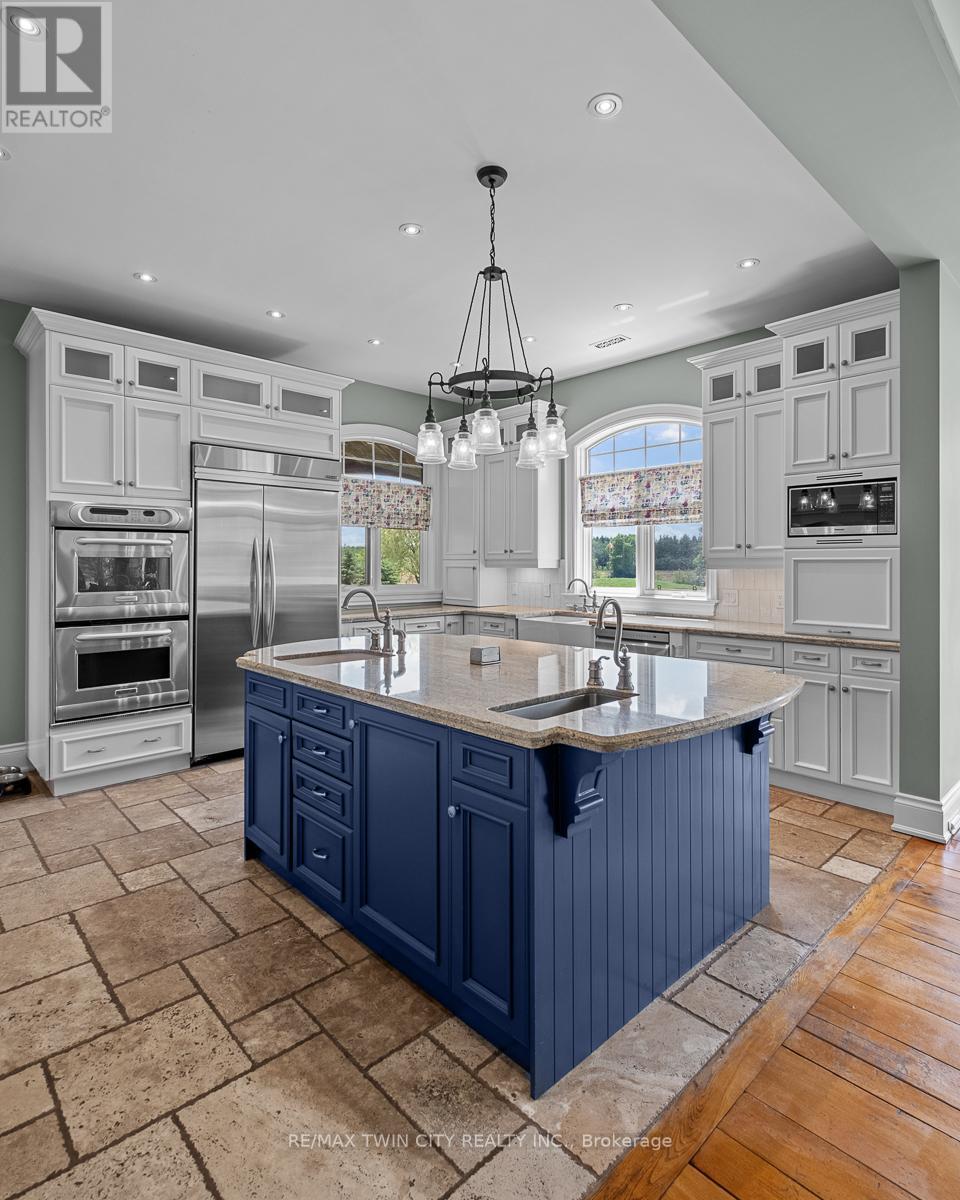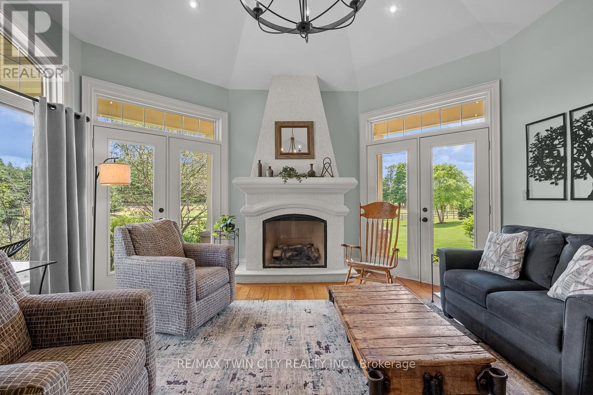 Scenic Flamborough is a part of southwestern Ontario known for farms and horse ranches. Located between Cambridge and Hamilton is this completely private, calendar book property on 90 acres. The home is set back from the main road with mature natural beauty as a buffer. A manicured tree line separates the driveway from the paddocks leading up to the home with approximately 15 acres of cultivable land, pastures, and gardens. The barn is suited for horses, complete with hydro, running water, four stalls, tack room, and massive hay loft. Attached to it is an oversized 3 bay garage providing space for utility vehicle storage and a workshop. In the centre of the property is a beautiful two story home at over 6800 square feet of finished space including the basement, with in-floor heating throughout the entire home and subdivided triple car garage. The board and batten/stone skirt exterior, wrap around porch, large windows, and soaring ceilings give the home its luxury farmhouse feel. It offers capacity for living and entertaining with 3 bedrooms plus a spa like primary suite, 6 bathrooms, beautiful living room with stunning fireplace, gourmet kitchen with butler pantry, and oversized dining room open to the nook and family room also featuring an elegant stone fireplace with timber mantel. The main floor office and laundry offer convenience. The basement was designed with recreation in mind offering a games room, wet bar and home theatre with surround sound and projection system. The basement level is also directly accessible from the garage via the second staircase. Relaxation extends to the outdoors with a backyard heated saltwater pool, 20' x 30' Muskoka room and wood burning stone fireplace and chimney. The views are gorgeous in every direction; to the south it overlooks a private acre pond complete with beach and aerating fountain, and behind it over 74 acres of forest with a 4 km network of trails for walking and riding. A truly stunning property! (id:4555)