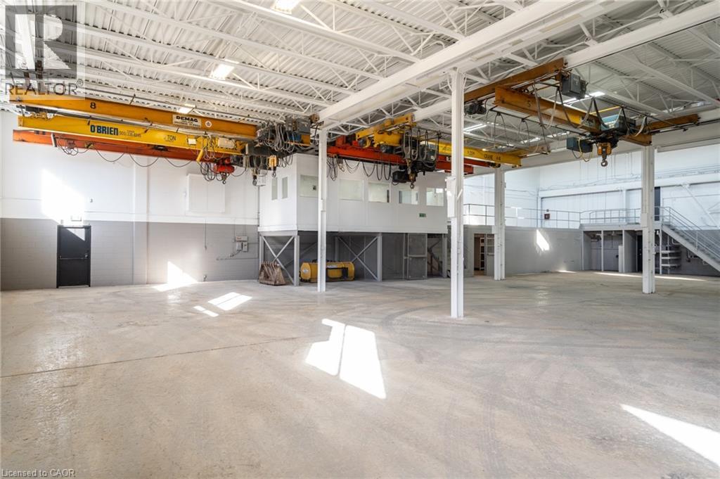 This expansive 21,600 sq ft industrial unit offers a wide range of high-functioning features to support your business needs. It includes 5 convenient drive-in level doors, 4 robust cranes, and ample power with 200 Amp & 600 Volt capacity. The impressive joist heights of up to 23' 5 provide flexibility for large-scale operations. The space also boasts functional office space, a secure fenced-in yard, and abundant parking. Zoned M5 - General Industrial, this property is ideally suited for a variety of uses, including manufacturing, production, warehousing, and industrial services. It is situated just 4 minutes from the QEW & Red Hill Valley Parkway, 8 minutes to Burlington, and perfectly positioned midway between the United States border and Toronto. Whether you're expanding or starting up, this site offers unmatched accessibility and versatility. (id:4555)