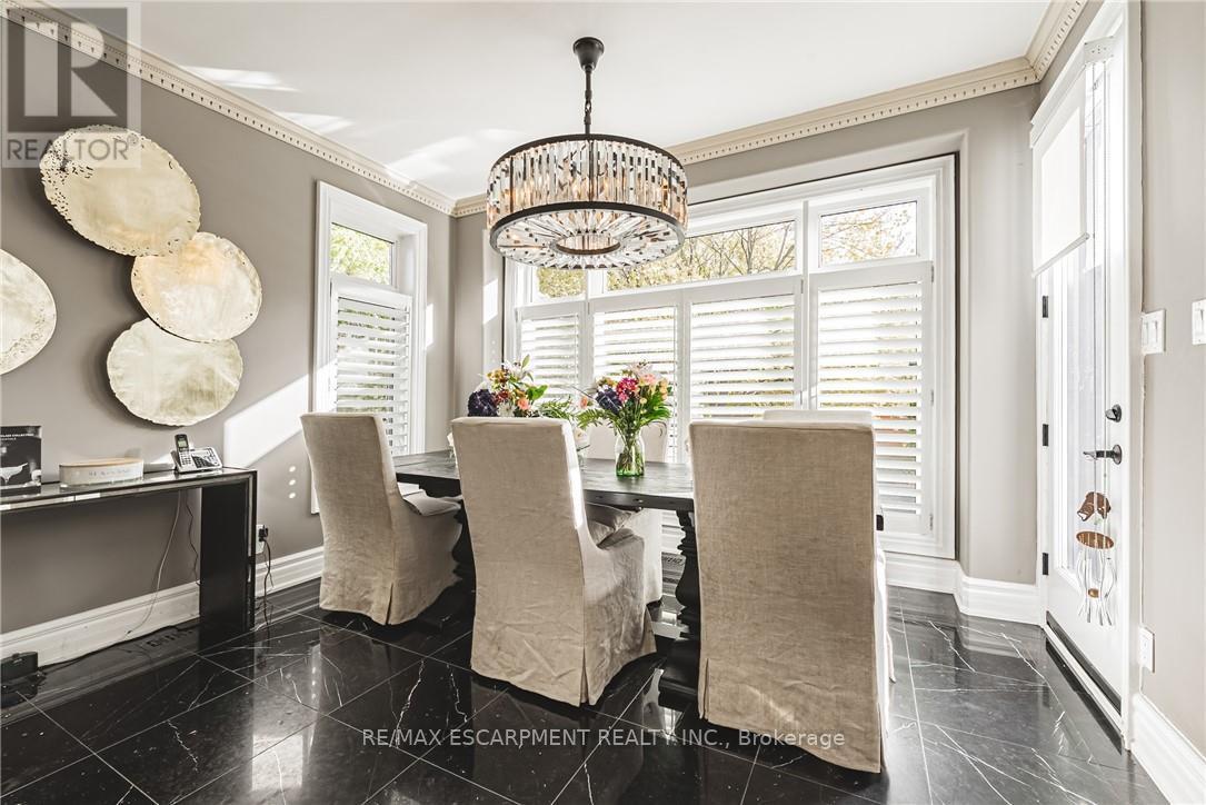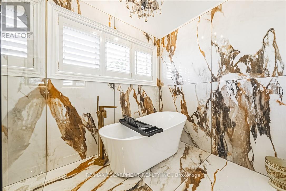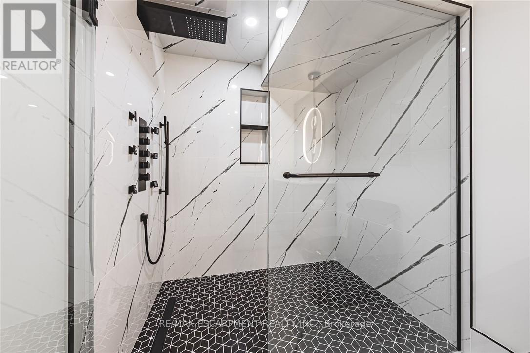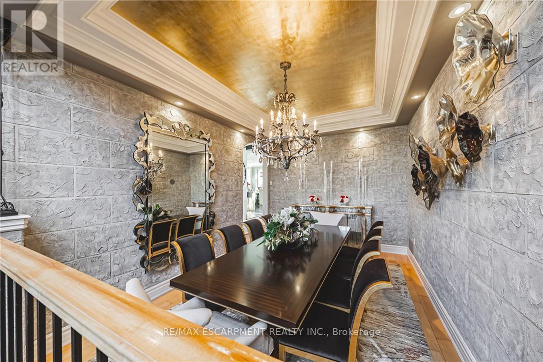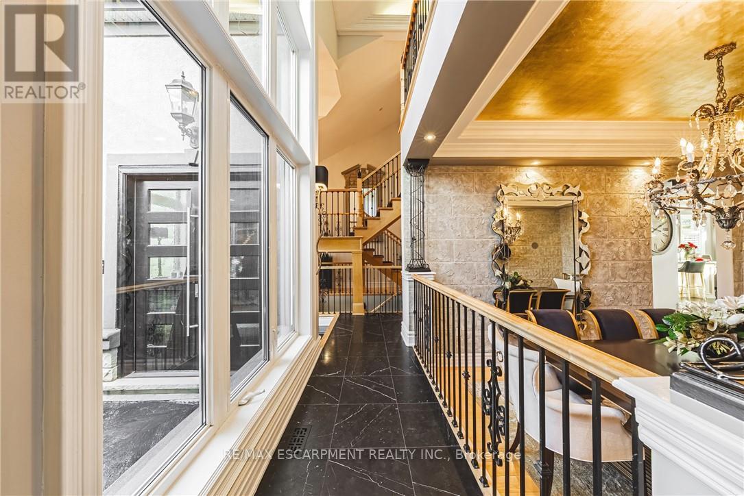 Unique, custom-built luxury home offering just over 5000 sq ft of Finished Living Space. Attention to detail & fine construction throughout, this home offers elegance, comfort, & functionality. Step into the grand sitting area, featuring soaring ceilings, stunning windows, & an impressive open staircase that connects all levels of the home. Sunken dining room boasts coffered gold leafing ceilings for refined entertaining. Custom Built Downsview kitchen offers abundant cabinetry, granite countertops, & top-of-the-line stainless steel appliances, including a Sub-Zero refrigerator, Wolf gas range, Gaggenau built-in oven, Miele dishwasher, & microwave storage. Relax or entertain in the expansive great room, featuring dramatic ceiling heights & a backlit onyx walls for your tv. An open-concept office with natural light, perfect workspace. Main-floor laundry room includes garage access. Upstairs, the spacious primary suite offers a large walk-in closet & a renovated 5-piece ensuite (2025). Two generous bedrooms share a beautifully appointed 4-piece bathroom, & a bright loft area overlooks both the front & rear of the home. The lower level features large windows & offers in-law suite potential with separate walk-ups to both the rear yard & garage. Cozy recreation room with fireplace, a fully equipped gym, a sauna for relaxation, 3 pc bath (2025), workshop, cold room, & plenty of storage space. The outdoor oasis includes a composite deck with built-in BBQ, hot tub, & an oversized waterfall feature with fireplace, artificial turf & a storage shed. Additional highlights include an oversized 2-car garage with abundant storage & a long interlock driveway accommodating up to 8 vehicles & irrigation system. Trillium award several years for landscaping. Ideally located near Tiffany Falls, Tamahaac Club, Highway 403, the Linc, Costco, schools, parks, & trails, luxury living with convenience & lifestyle. (id:4555)