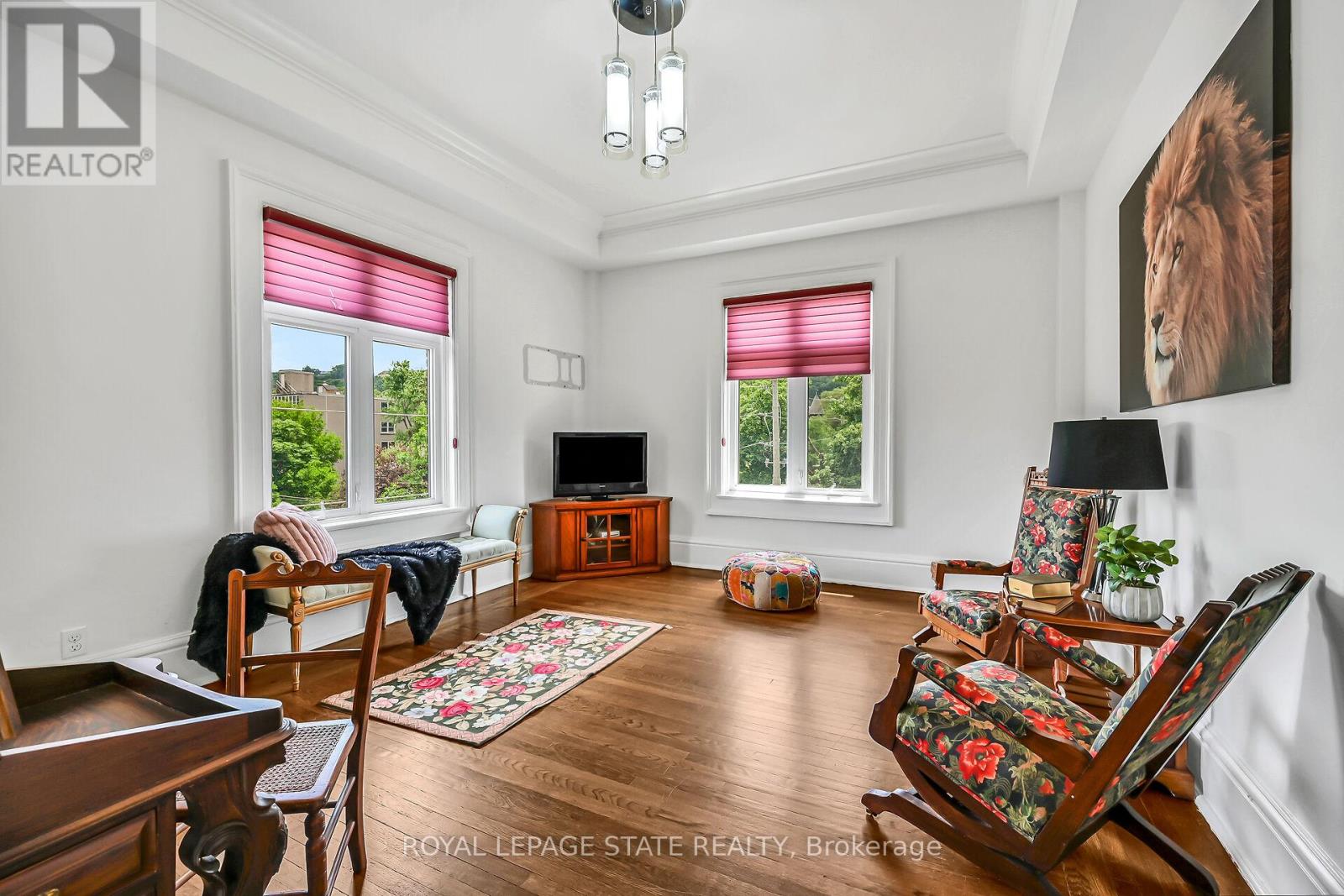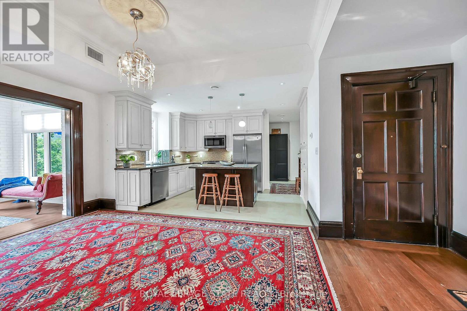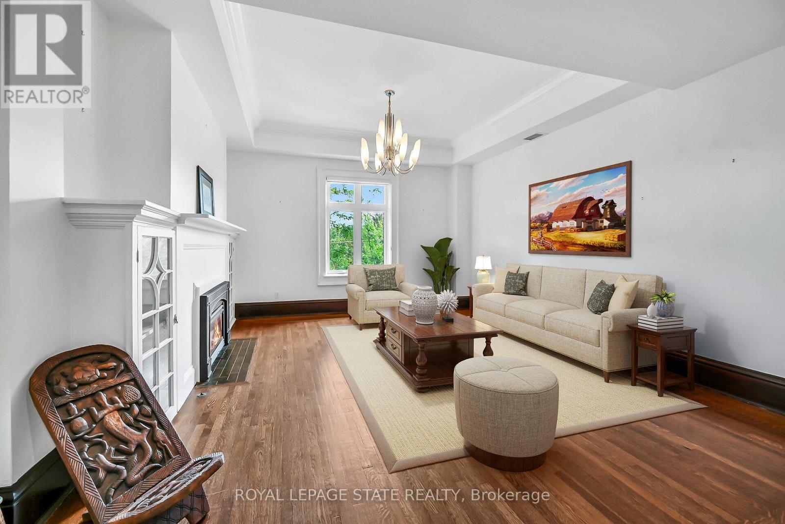 Rare Find! Welcome to this timeless penthouse in the Historic Herkimer Apartments! Located in the heart of Hamilton's prestigious Durand neighbourhood, this spectacular 2-bedroom, 1.5-bathroom condo blends historic elegance with modern convenience. This penthouse unit features inlaid hardwood floors, coffered 10' ceilings, crown mouldings, pot lights, and a gas fireplace in the living room with built-in cabinetry. The open-concept kitchen boasts granite counters, an island with breakfast bar, and abundant cabinetry. Enjoy the 3 piece jacuzzi shower, in-suite laundry, and two separate entrances for added flexibility. Relax in the sunroom with breathtaking views of the Niagara Escarpment, through oversized windows, or entertain on the rooftop deck and terrace available to residents. Including in the terrace breathtaking city views, are sitting areas, gas bbq and gas fire table under a large gazebo. For added peace of mind, the in unit Furnace and Air-conditioning has been replaced in November 2025. Includes garage parking, locker, and all the charm of a historic building with the modern lifestyle of today. Don't miss this rare opportunity to own a piece of architectural history in one of Hamilton's finest neighborhood's! RSA (id:4555)