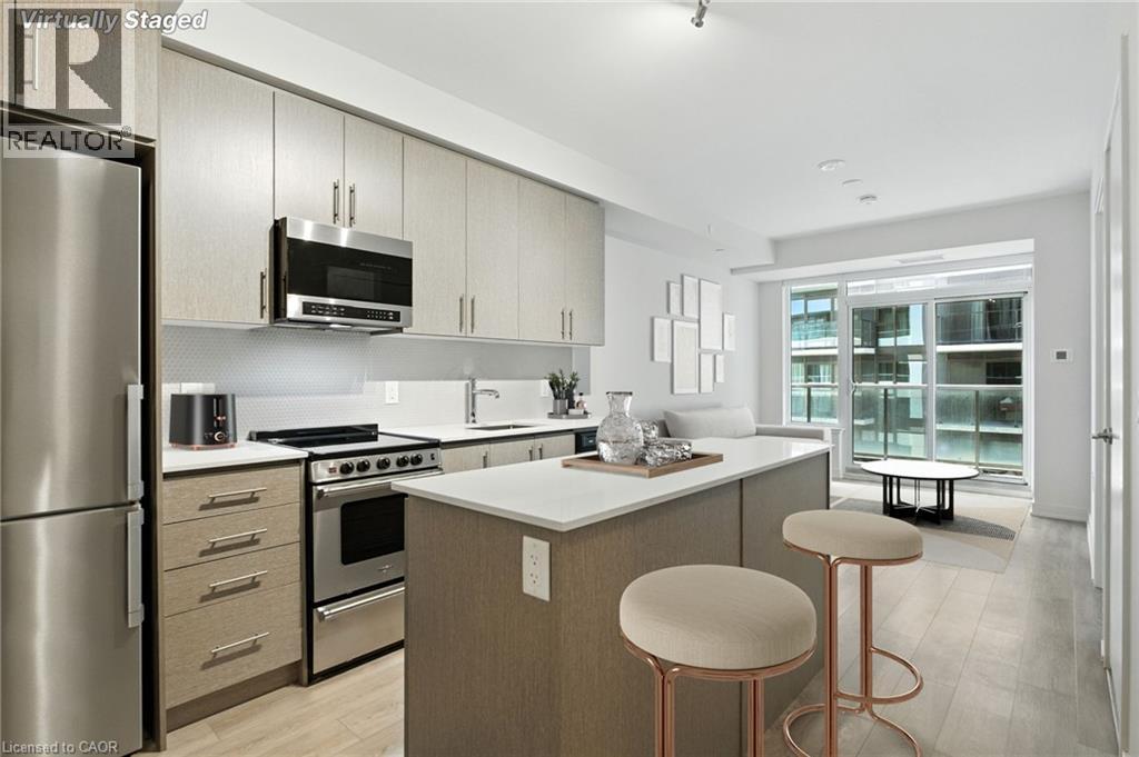 Experience stylish urban living at its finest in this beautiful Kiwi Condo, ideally located in the heart of downtown Hamilton. This vibrant community puts you just steps from shops, restaurants, entertainment, transit, and everything the city has to offer. The building is packed with upscale amenities, including a state-of-the-art gym and yoga studio, a welcoming concierge, a rooftop terrace with BBQs and sweeping city views, a dog wash station, mail room, and a spacious party room with fireplace and full kitchen—perfect for entertaining. Inside the unit, you’ll find a thoughtfully designed 1-bedroom, 1-bathroom layout with an airy open-concept kitchen and living area. The sleek, modern kitchen features stainless steel appliances, an island, and ample storage, while the living room flows effortlessly to a large private balcony through sliding glass doors. Convenience is key, with in-suite laundry and controlled entry for peace of mind. Parking is available at nearby municipal lots, making this property as practical as it is stylish. This condo is the perfect opportunity to secure a slice of Hamilton’s thriving downtown lifestyle. (id:4555)