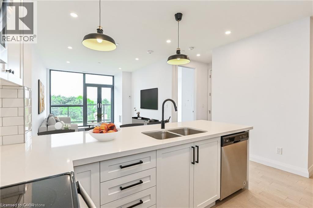 Stunning 1 bedroom PLUS DEN, 1 bathroom, 719 square foot unit in Hamilton's premier condominium at 101 Locke Street South. This unit is loaded with features including upgraded engineered oak flooring throughout, a gorgeous kitchen with quartz countertops/stainless steel appliances/breakfast bar, pot lighting, upgraded light fixtures, a 62 square foot west-facing balcony with picturesque views toward the Locke Street shopping village, the escarpment, Dundas & West Hamilton (spectacular sunsets), a 4 piece bathroom with quartz countertops, & in-suite laundry. 1 underground parking spot (Level B #5) and 1 storage locker (Level B #5). Access to some exceptional common elements on the rooftop, including a full gym, steam room/sauna, outdoor seating, barbecues, a gas fireplace, table tennis, a bar, and a meeting area. Excellent craftsmanship overall - you will definitely be impressed. This property is located in one of the city's most coveted neighbourhoods, just a short walk to the shops and restaurants along Locke Street S, parks, schools, public transportation and major transportation routes. (id:4555)